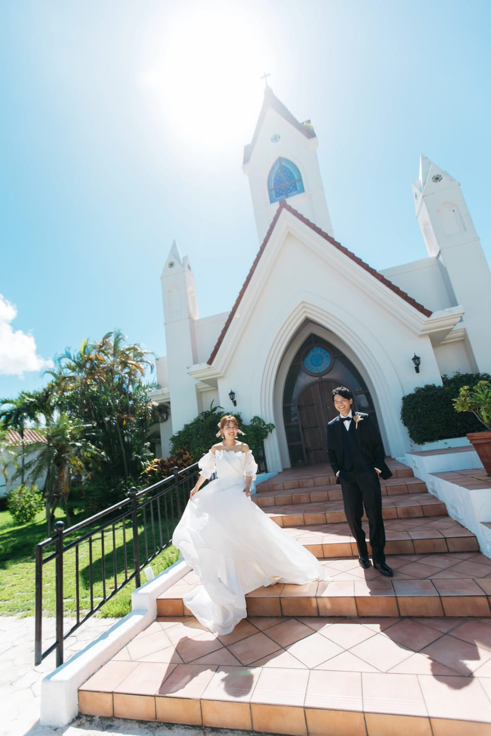 Sesoko Beach features calm, transparent waters and pristine white sand, making it perfect for natural and relaxed pre-wedding portraits. Gentle waves and soft light reflections add a tender impression to the photos.