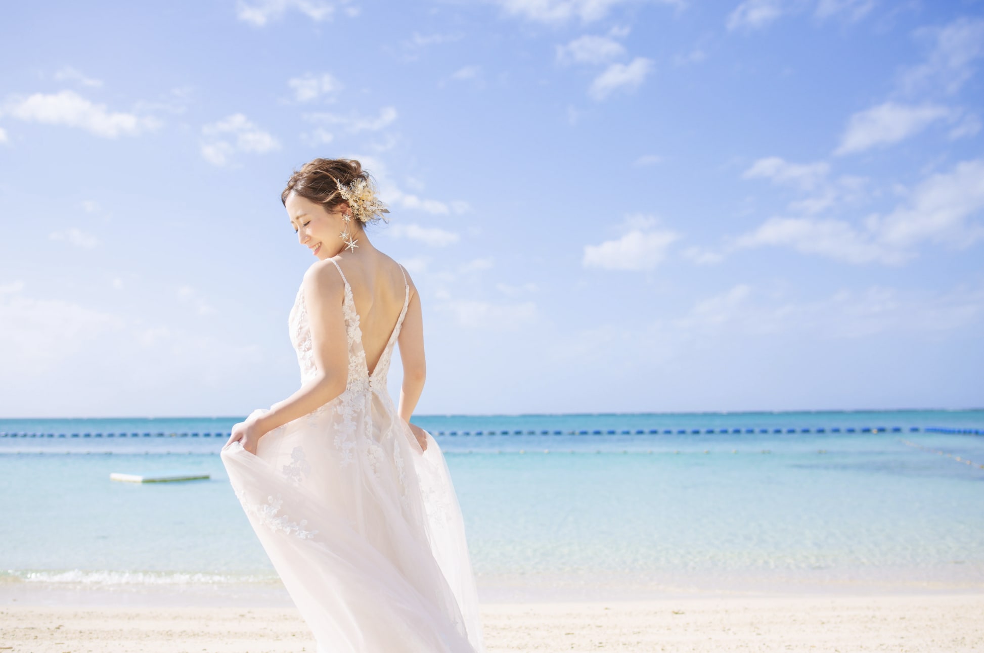 Sesoko Beach features calm, transparent waters and pristine white sand, making it perfect for natural and relaxed pre-wedding portraits. Gentle waves and soft light reflections add a tender impression to the photos.