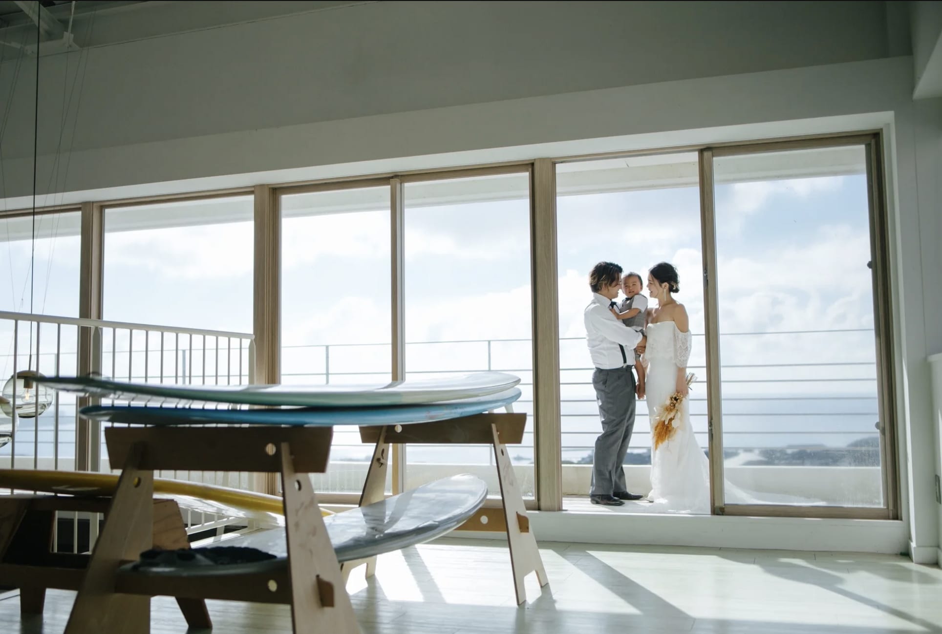 SUNS HOUSE offers a private outdoor setting where natural light and ocean views can be used effectively. The relaxed and home-like atmosphere is ideal for intimate pre-wedding photography.