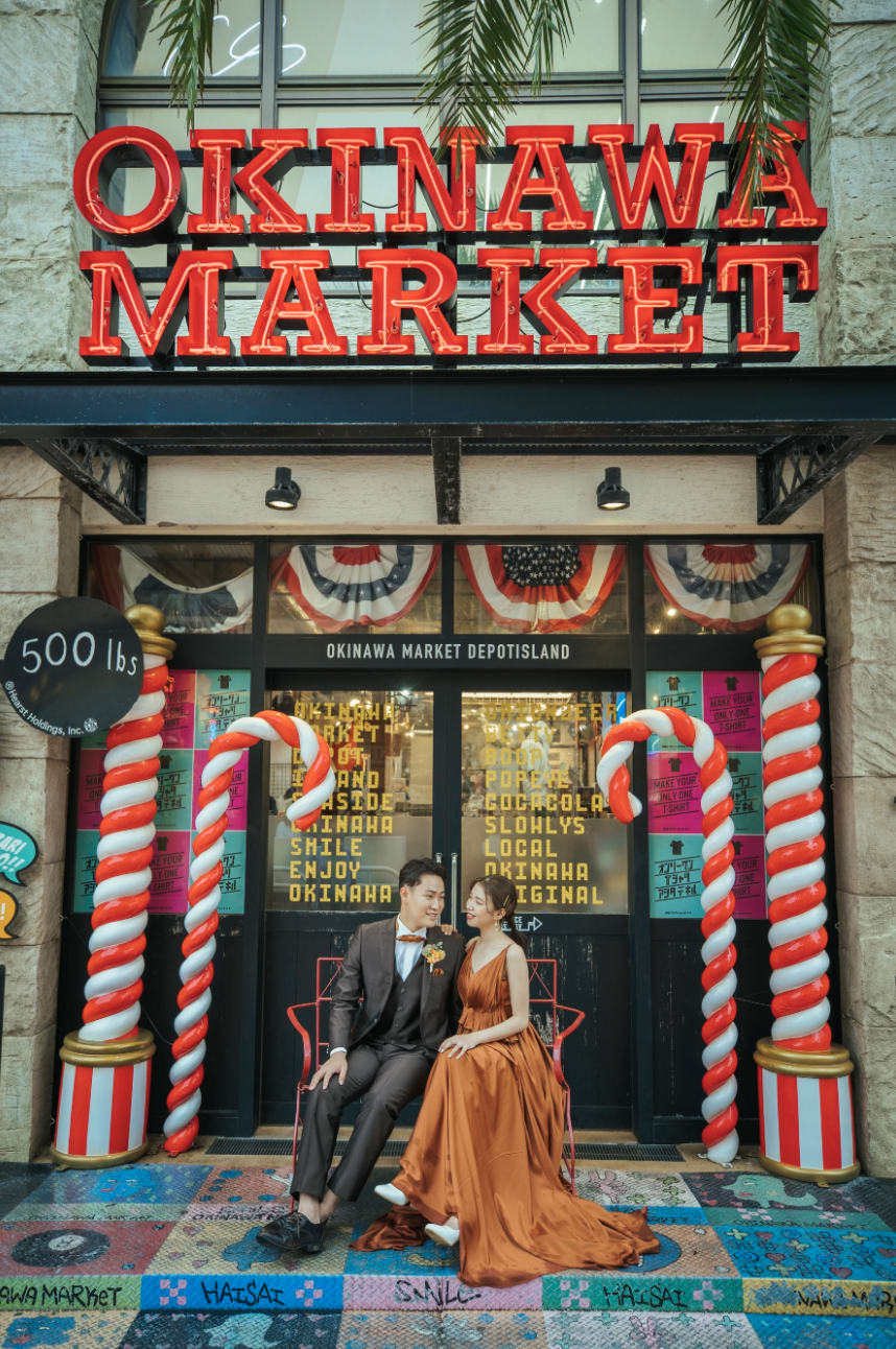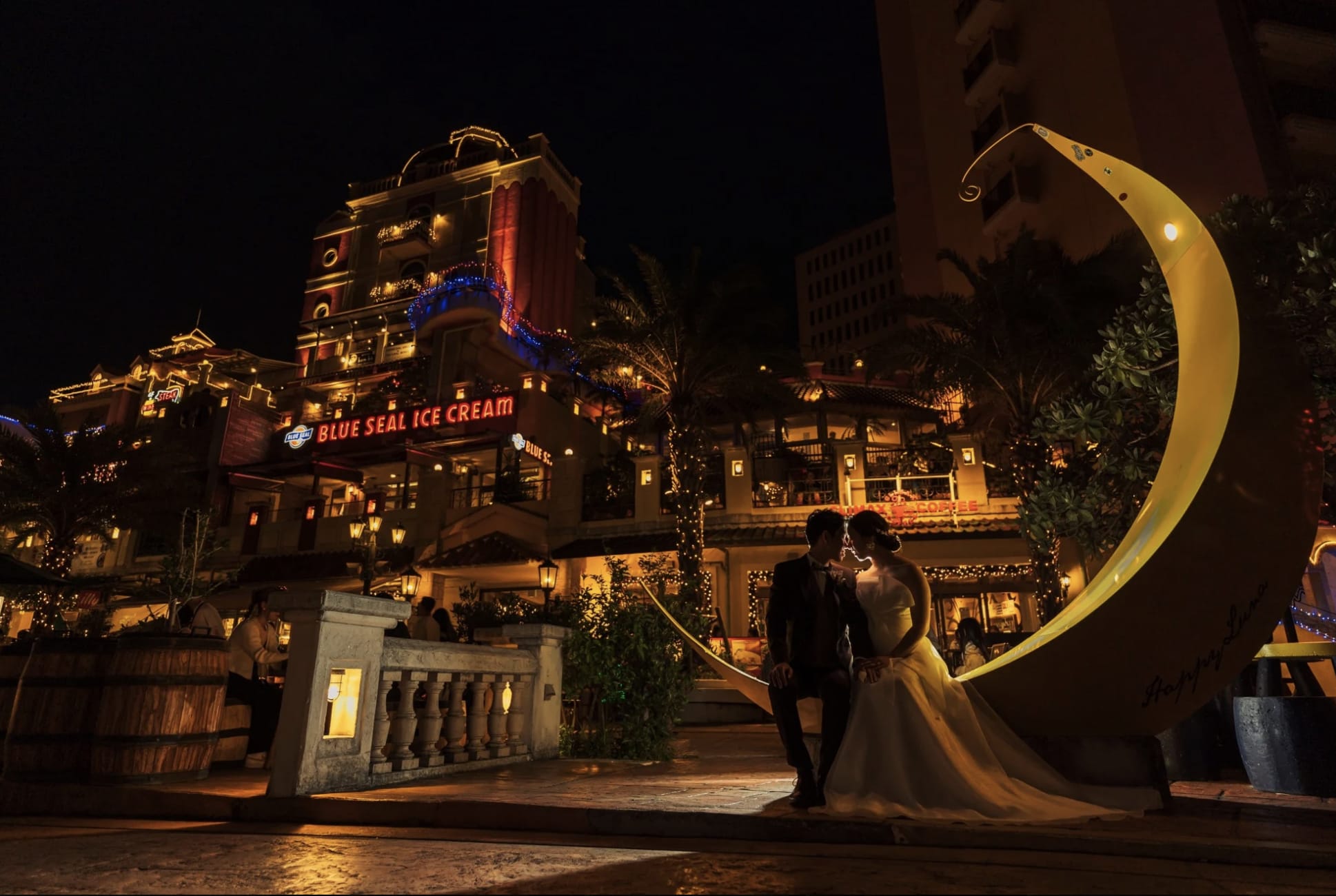 American Village is characterized by its colorful, international atmosphere. Pop-style backdrops and coastal promenades are ideal for stylish and casual pre-wedding portraits.