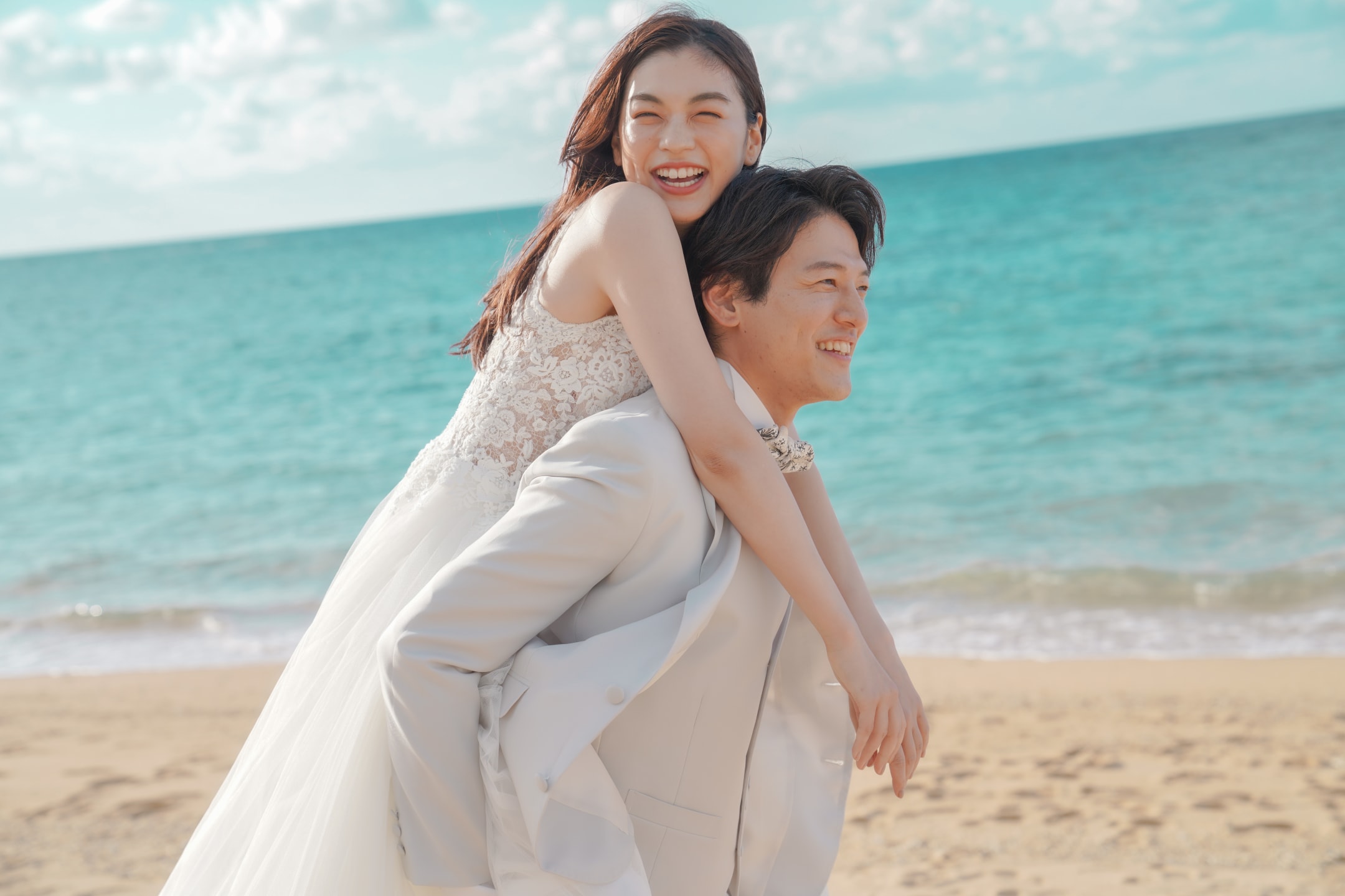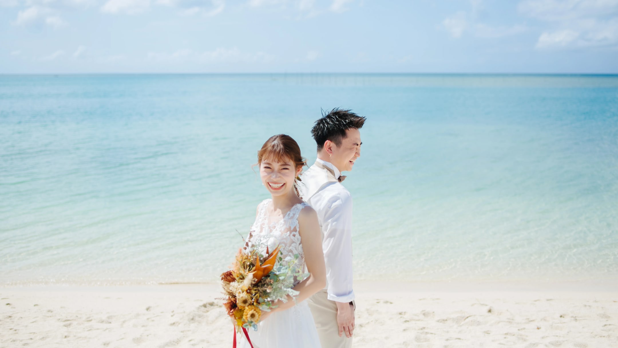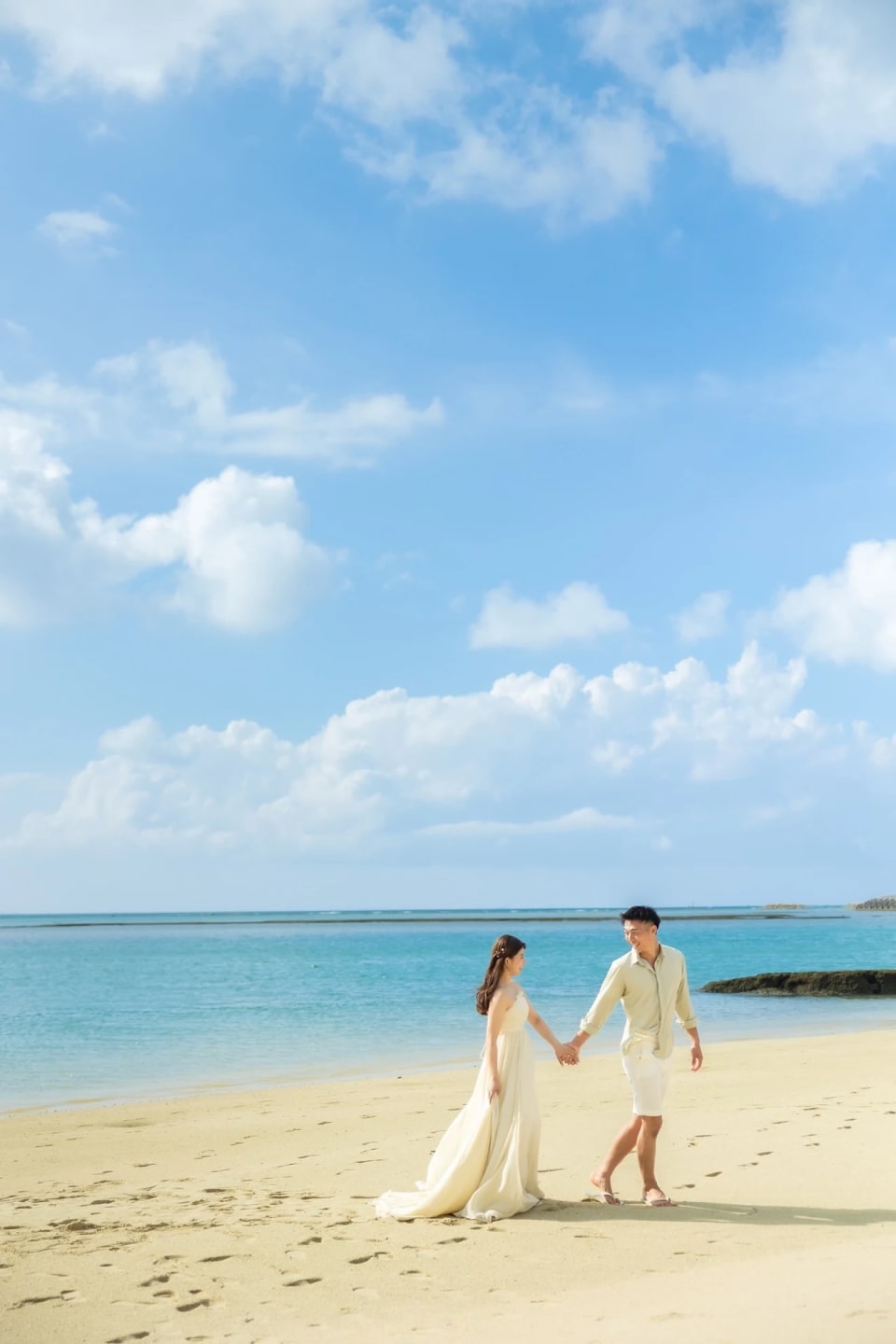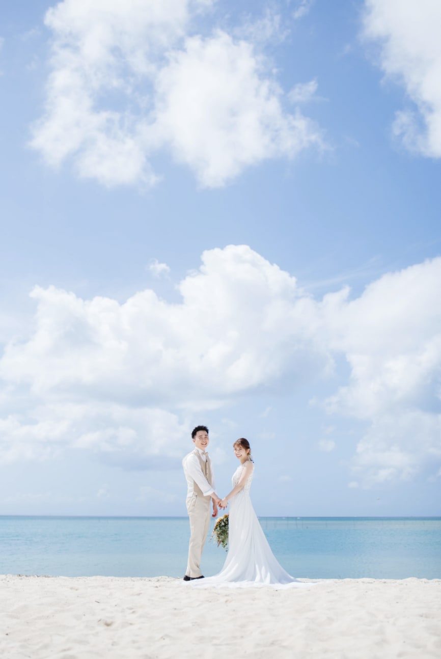 Araha Beach, with its stretches of white sand, clear waters, and bright skies, is an ideal location for pre-wedding photography. Natural daylight enhances the couple beautifully during the day, while warm sunset tones create a romantic atmosphere in the evening.