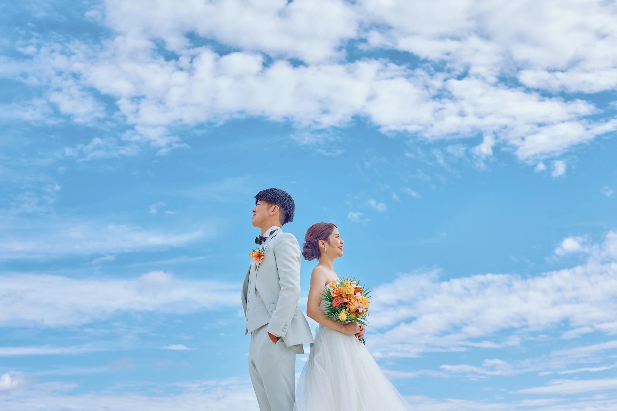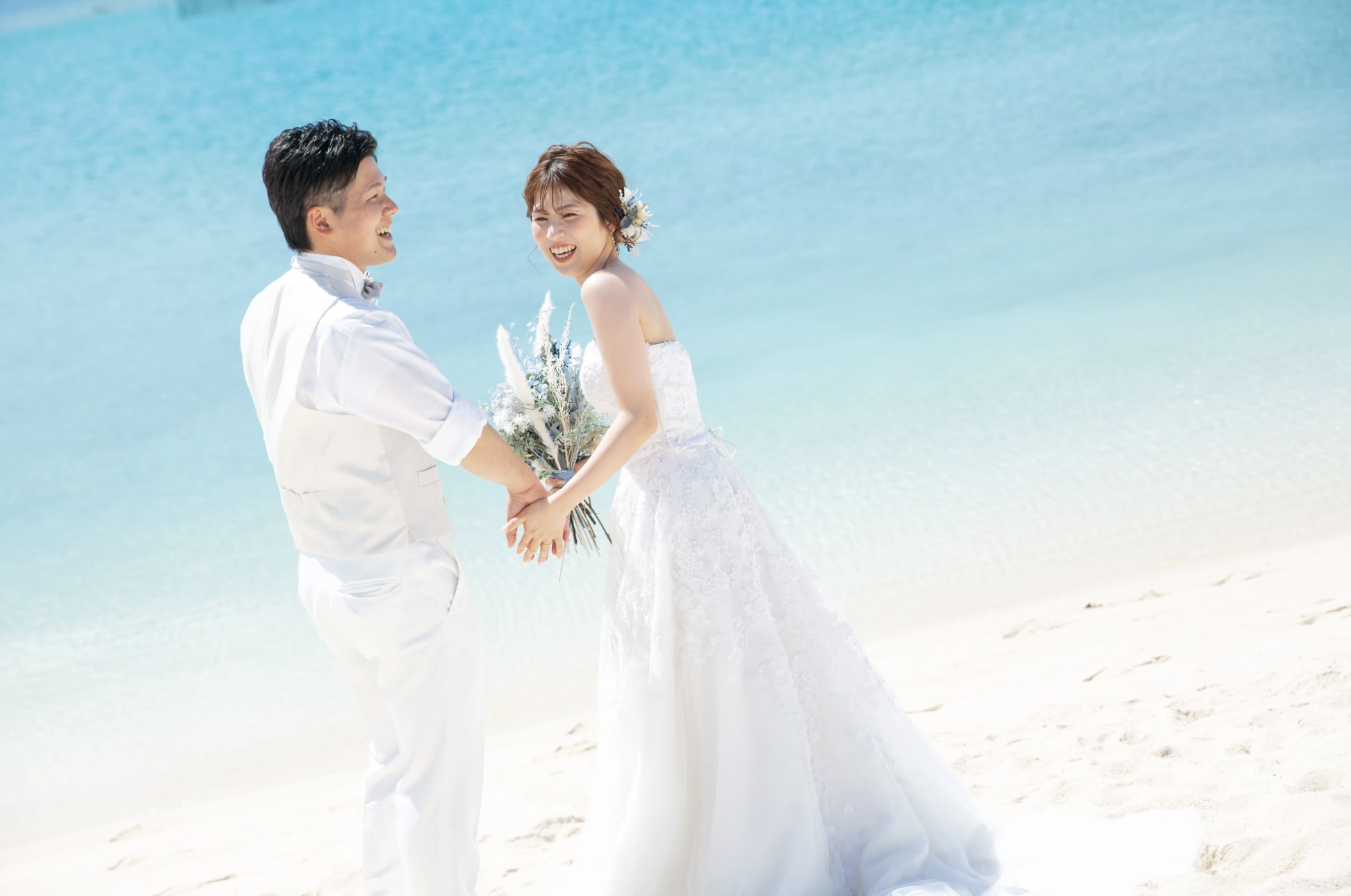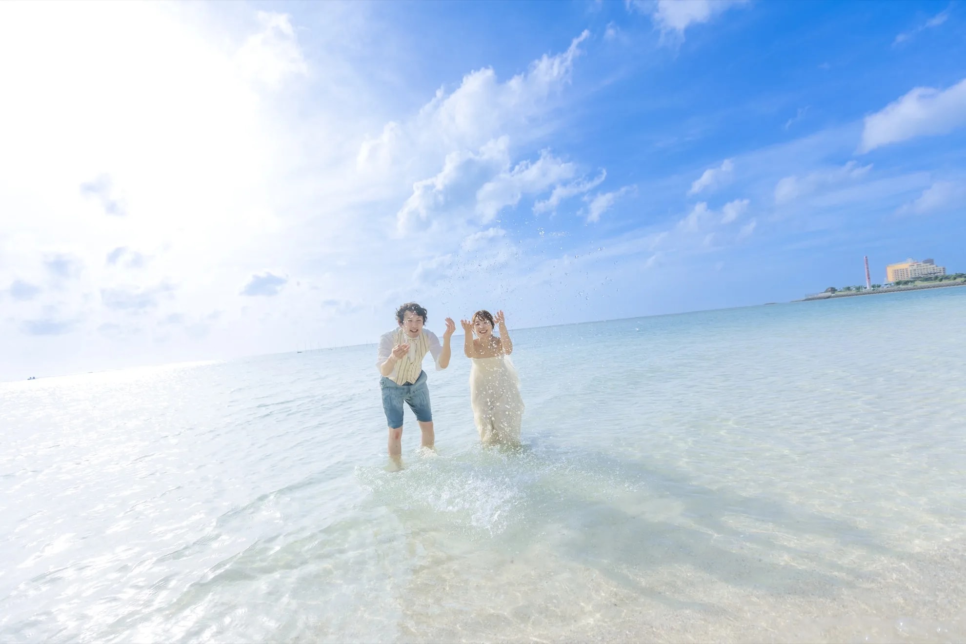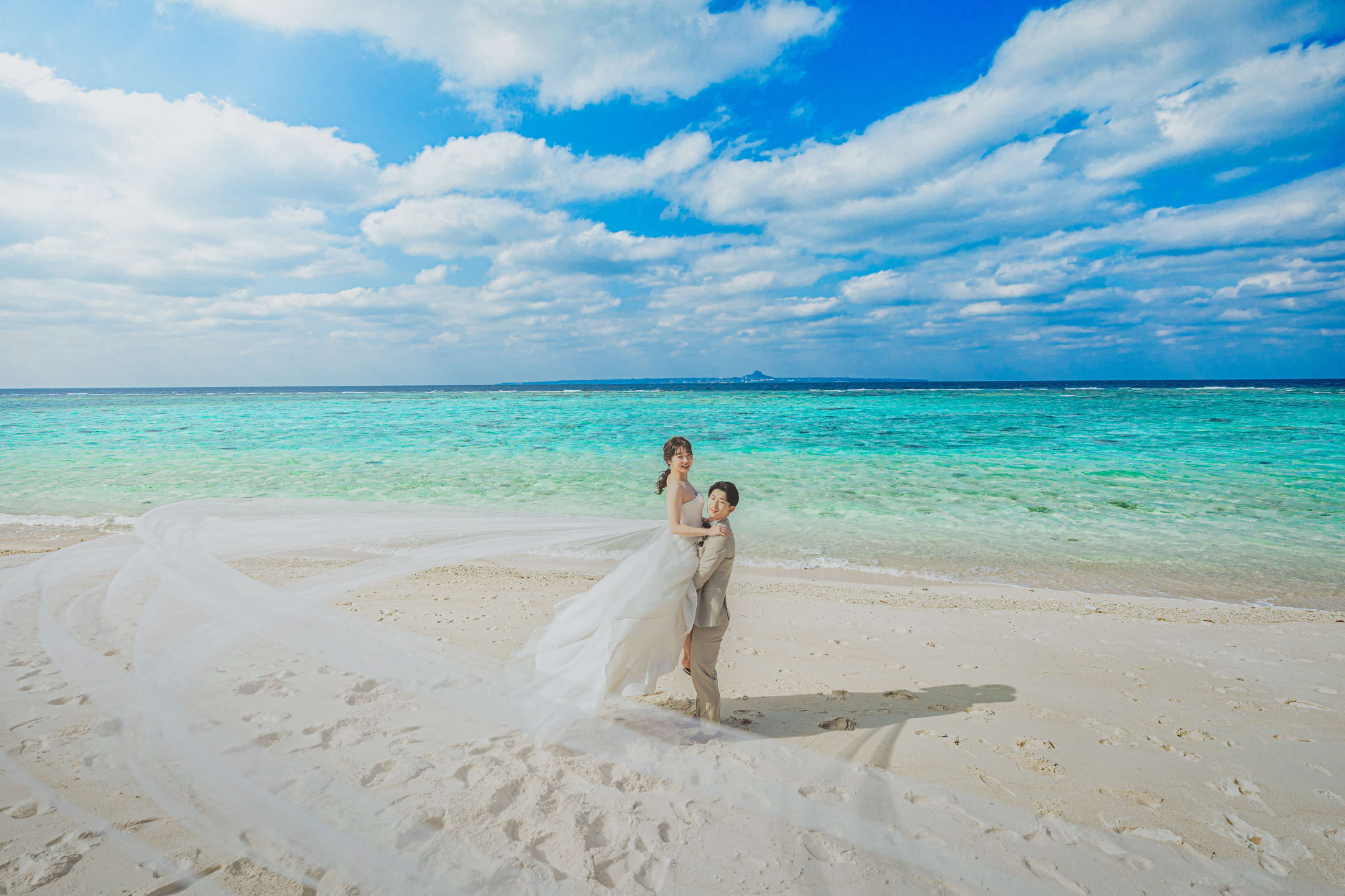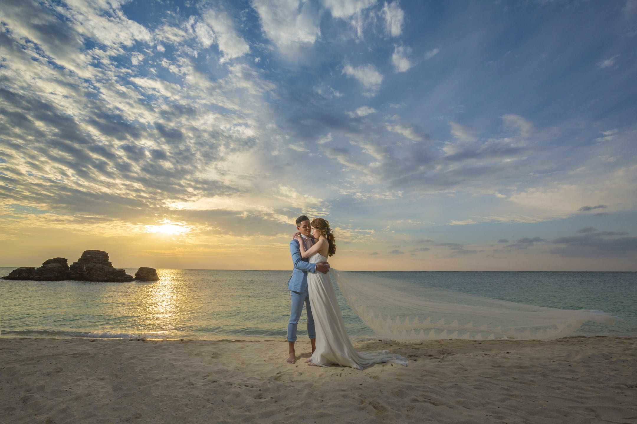 Araha Beach, with its stretches of white sand, clear waters, and bright skies, is an ideal location for pre-wedding photography. Natural daylight enhances the couple beautifully during the day, while warm sunset tones create a romantic atmosphere in the evening.