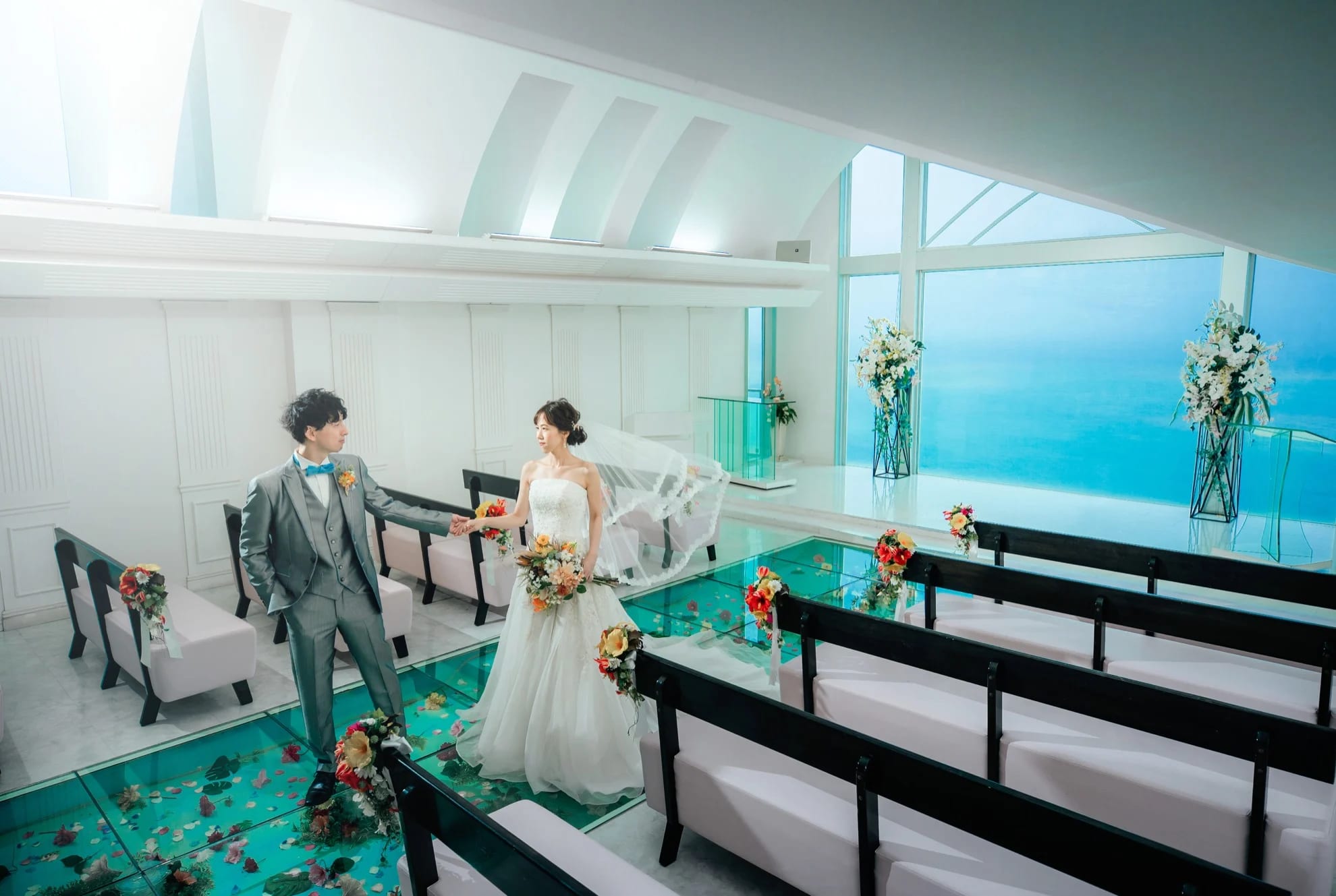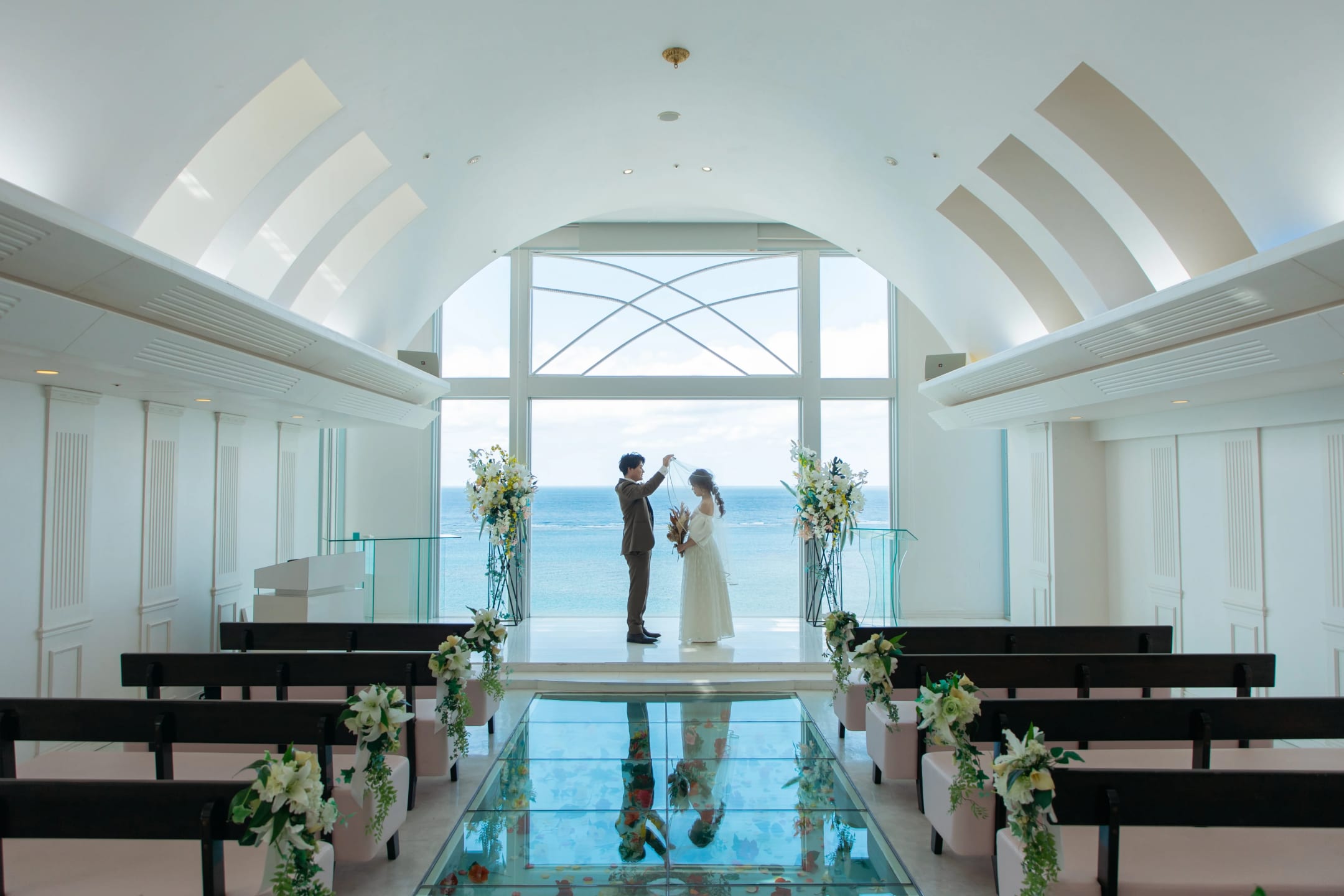 Sunny’s Chapel, overlooking the blue ocean and sky, is ideal for resort-style ceremony and pre-wedding scenes. The contrast between the white chapel and natural light creates clean and refined imagery.