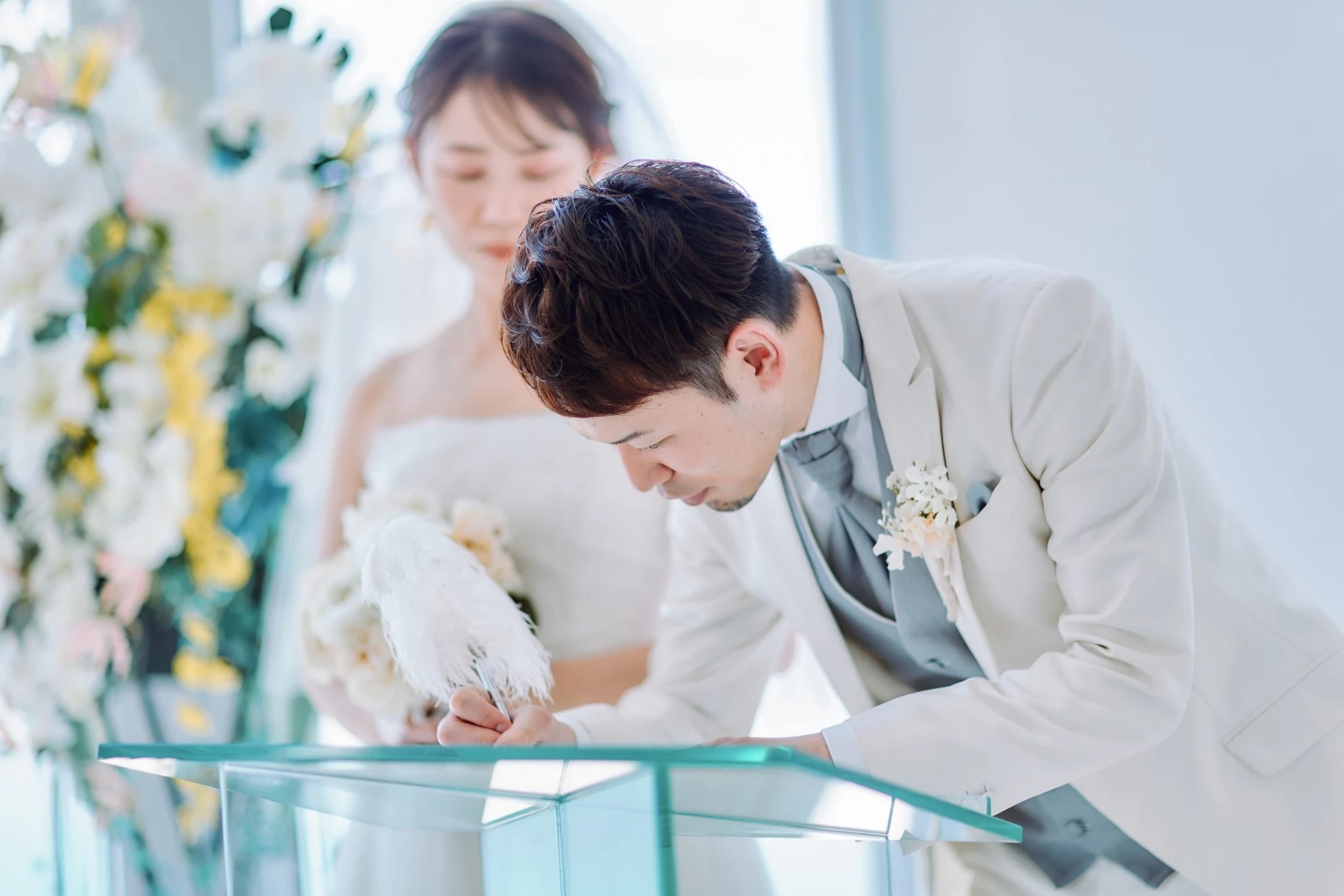 Sesoko Beach features calm, transparent waters and pristine white sand, making it perfect for natural and relaxed pre-wedding portraits. Gentle waves and soft light reflections add a tender impression to the photos.
