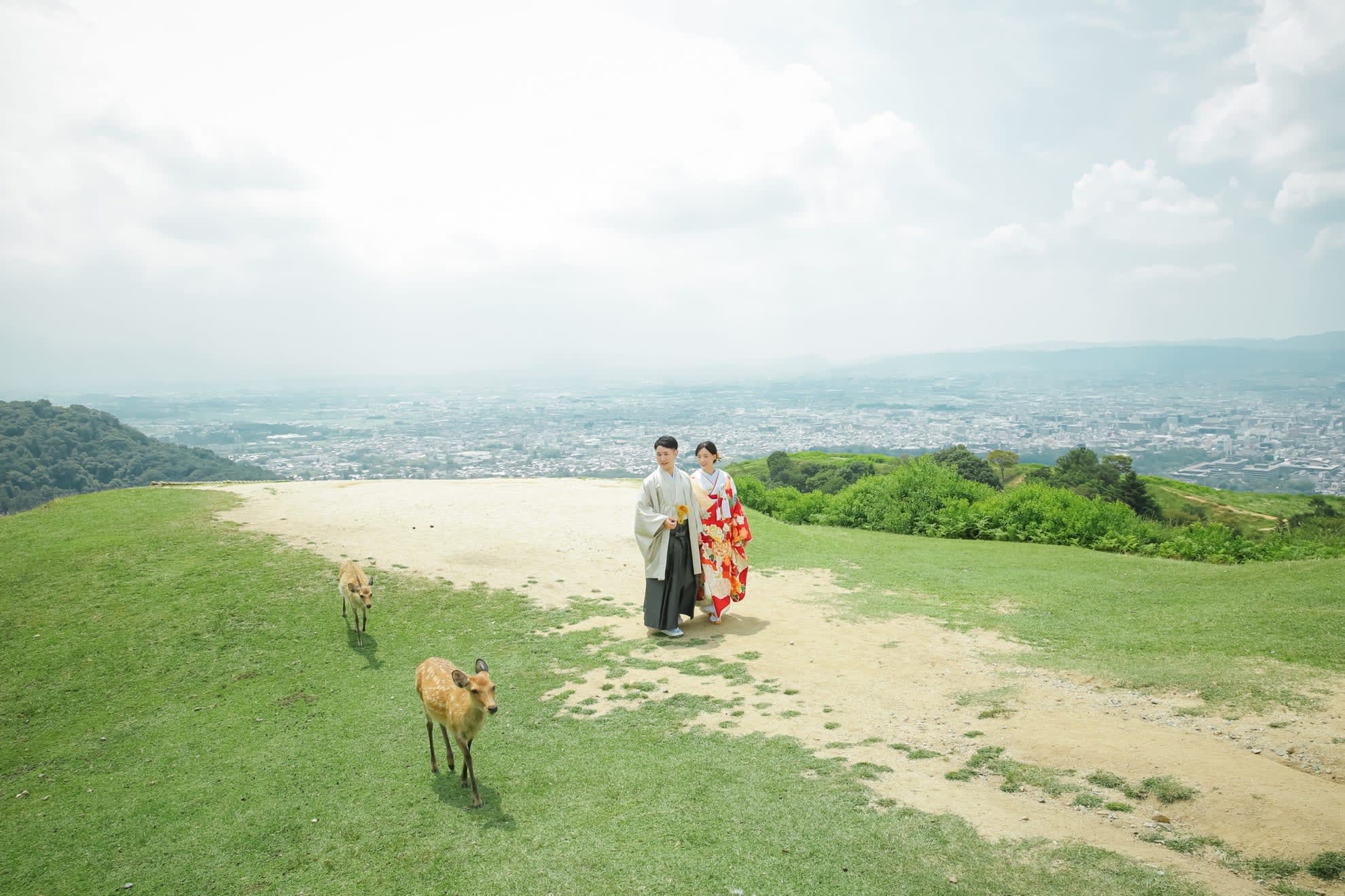 Wakakusa Mountain provides panoramic views of Nara City. Its wide grasslands and distant cityscape enable dynamic, airy photographs, suitable for natural and romantic compositions influenced by seasonal light.