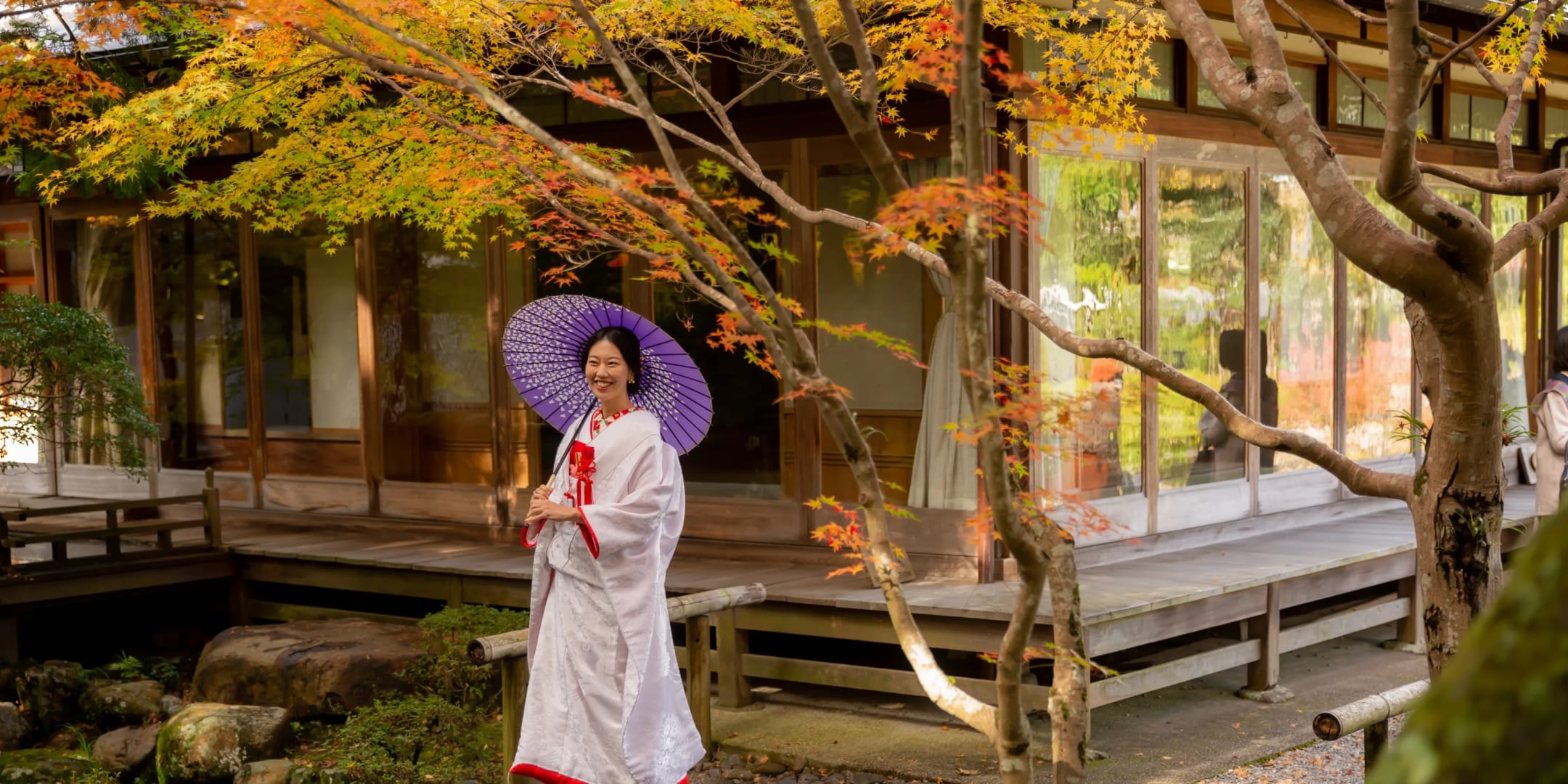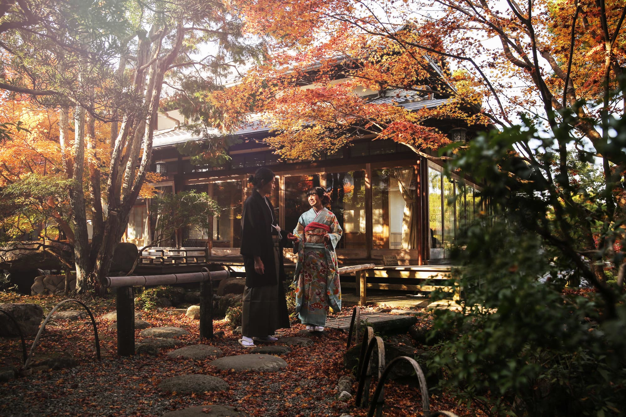 Yugayama-enchi and Yoshikien feature harmonized traditional Japanese gardens with teahouses and lush pathways. Both Japanese and Western attire work beautifully, enabling elegant photography that captures seasonal transitions.