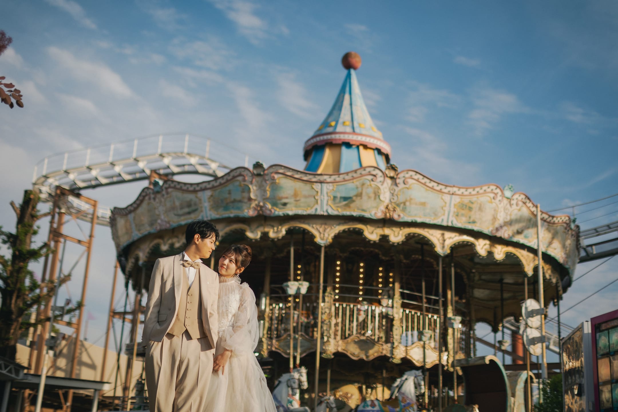 Summer Amusement Park features colorful rides and bright blue skies, enabling playful and pop-inspired portraits. The lively environment helps capture dynamic compositions and natural, joyful expressions.