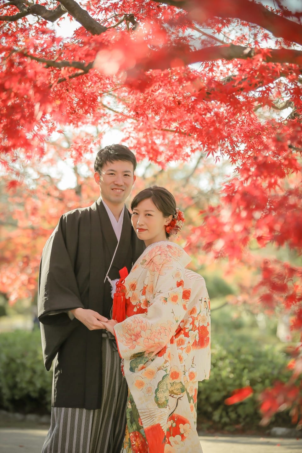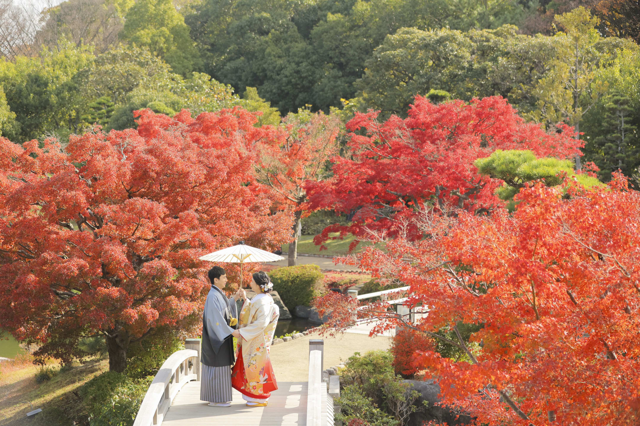Daisen Japanese Garden is distinguished by the refined scenery of a traditional Japanese garden, beautifully shaped by seasonal nature. Its pond-strolling design, along with moss, autumn foliage, and other plantings, creates a serene atmosphere. It is ideal for traditional kimono portraits, yet also offers a classic and elegant setting for Western-style attire.