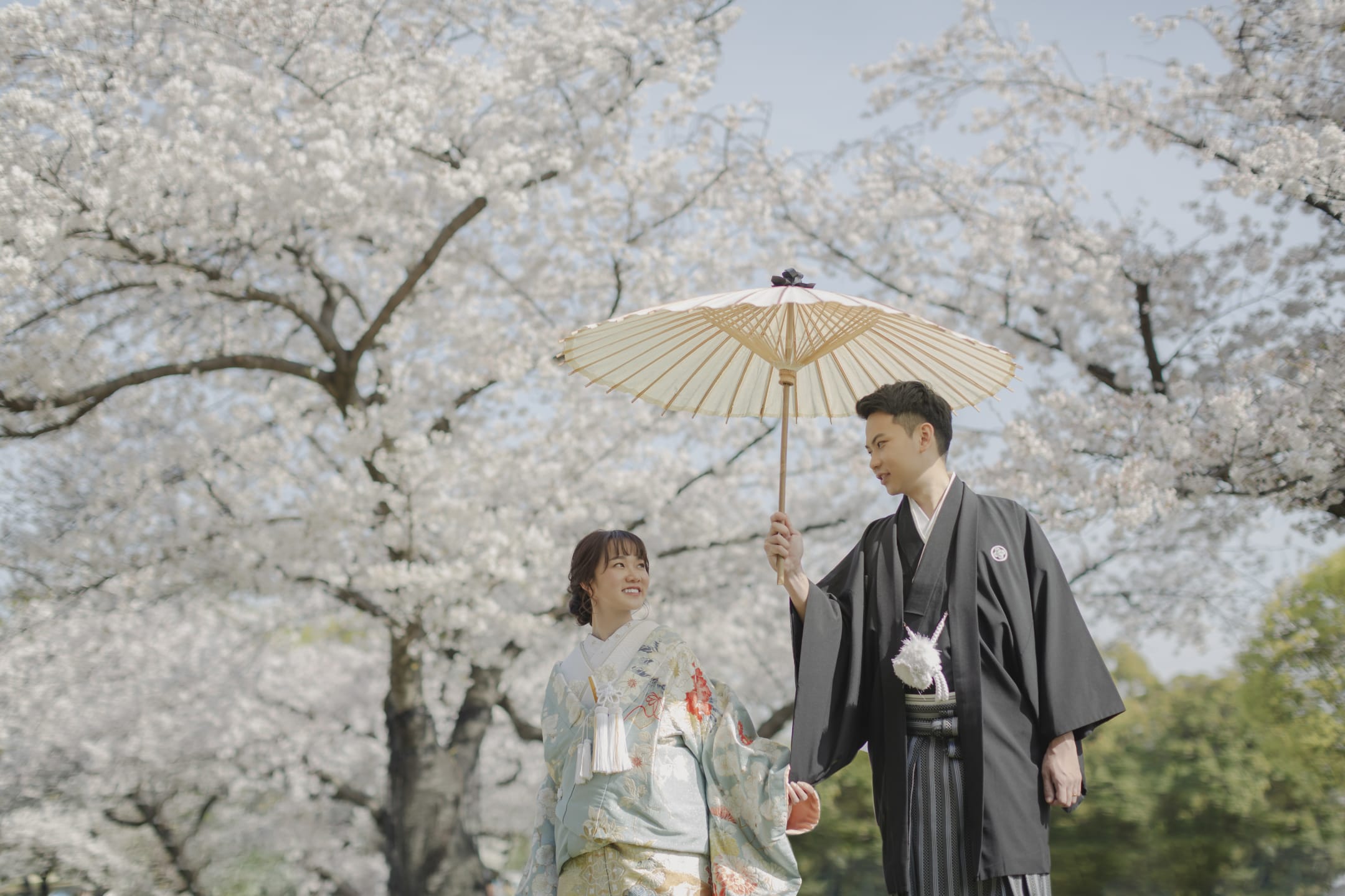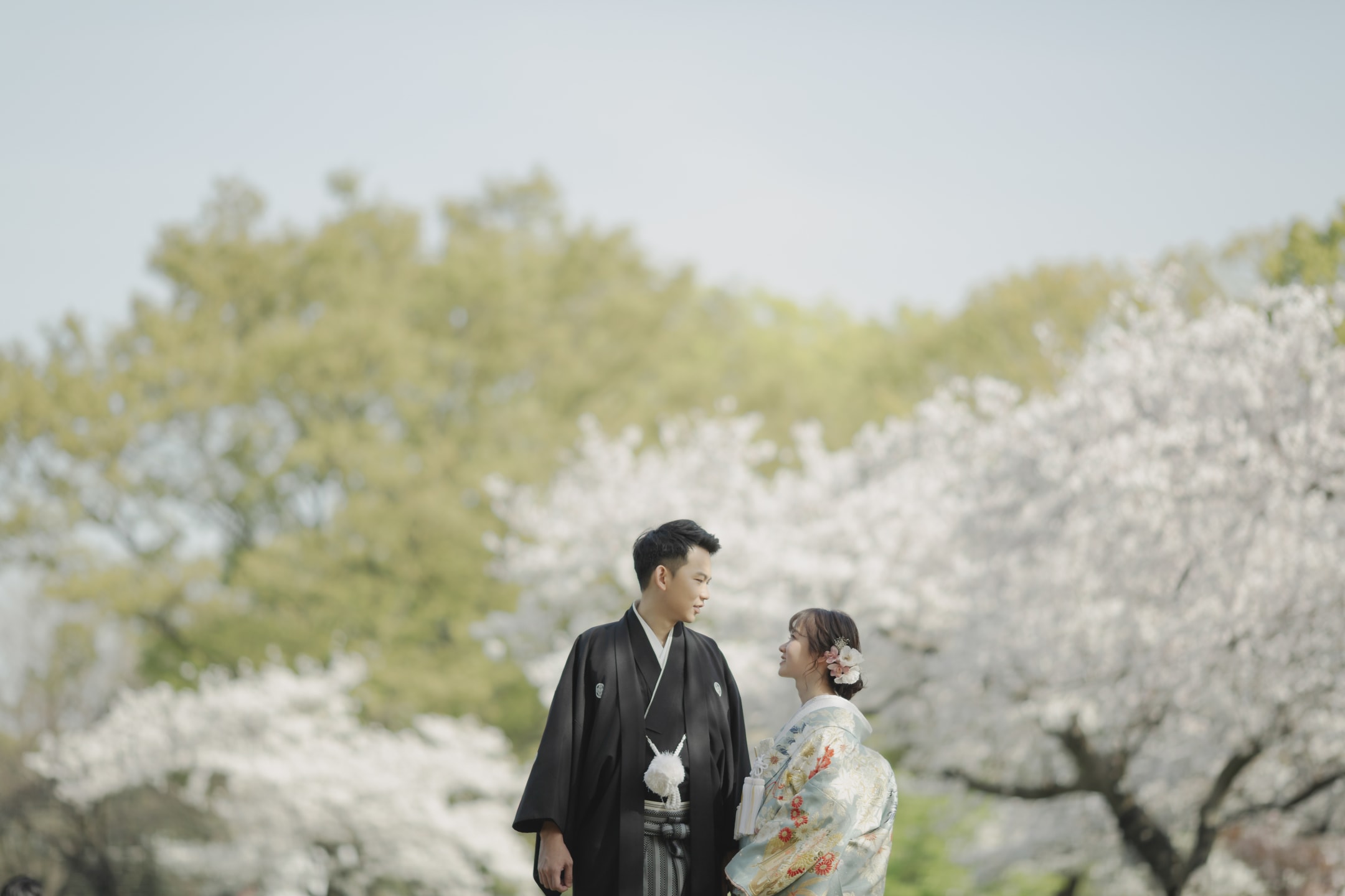 Osaka Castle, an iconic landmark of Osaka, provides a powerful backdrop with its imposing stone walls and majestic main keep. The historic grandeur combined with the expansive greenery of the surrounding park enables dynamic and visually striking pre-wedding photography.