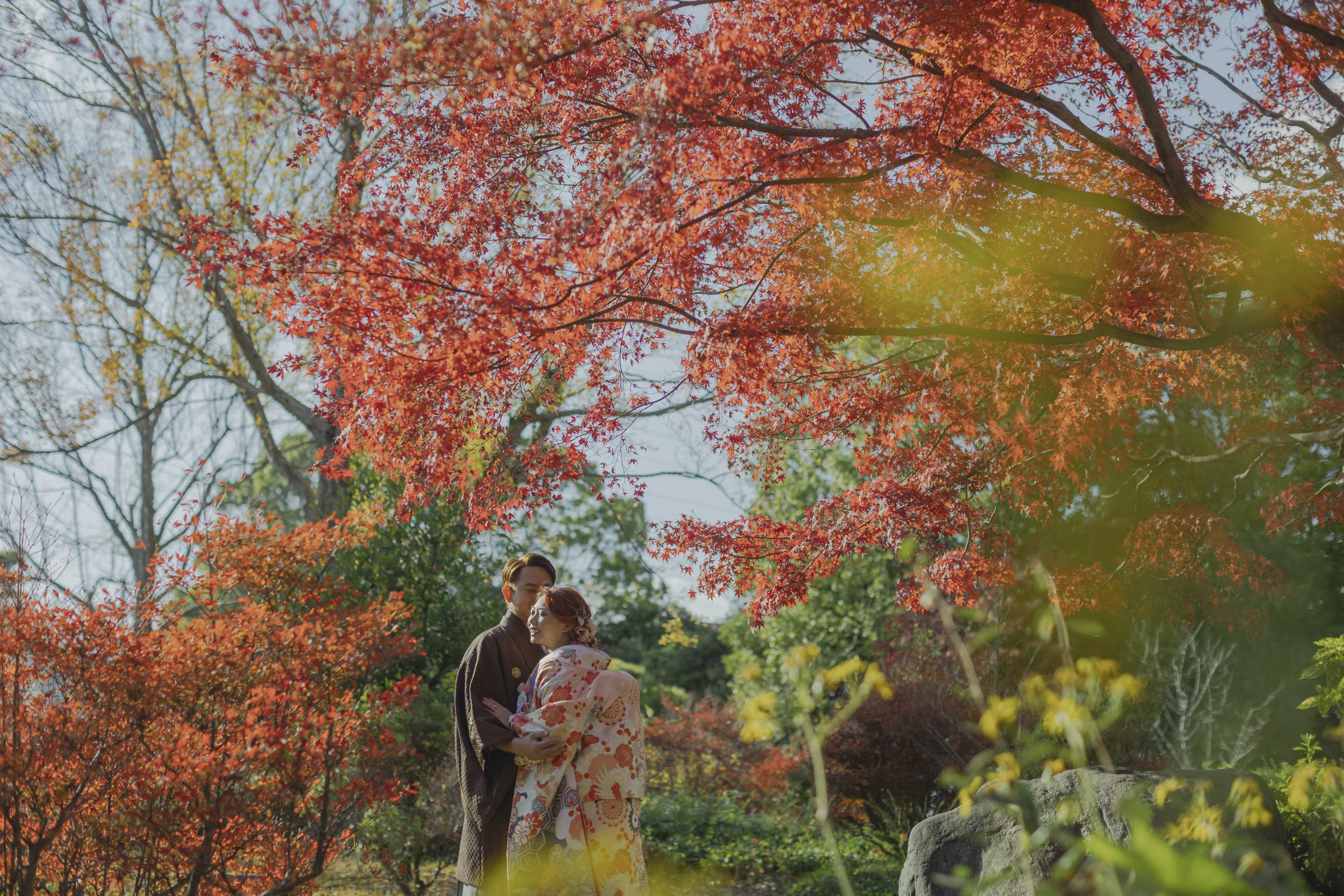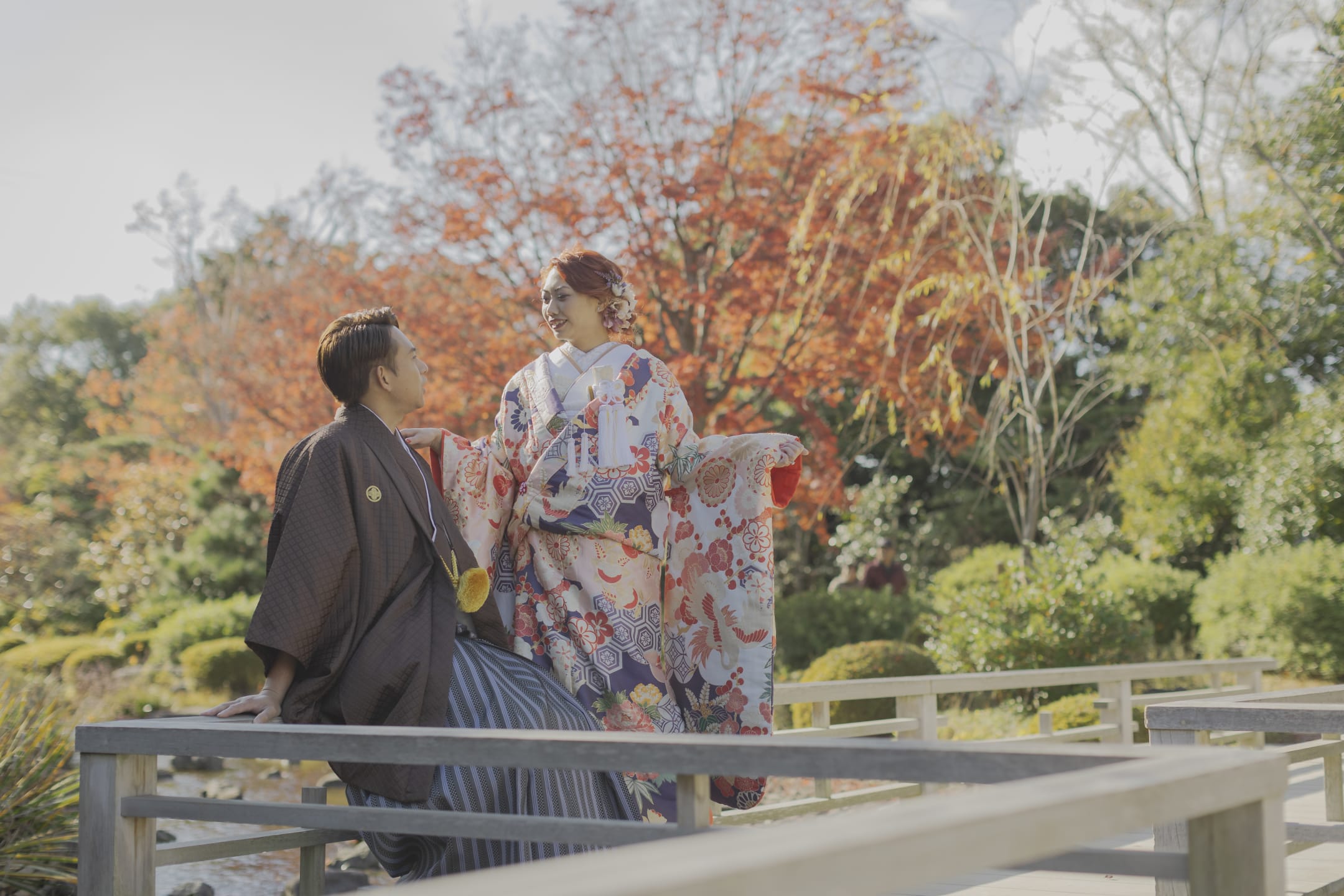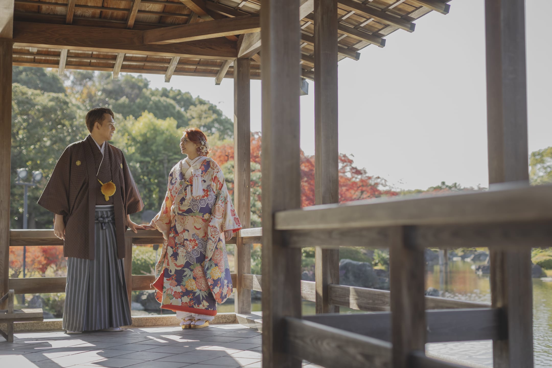 Daisen Japanese Garden is distinguished by the refined scenery of a traditional Japanese garden, beautifully shaped by seasonal nature. Its pond-strolling design, along with moss, autumn foliage, and other plantings, creates a serene atmosphere. It is ideal for traditional kimono portraits, yet also offers a classic and elegant setting for Western-style attire.