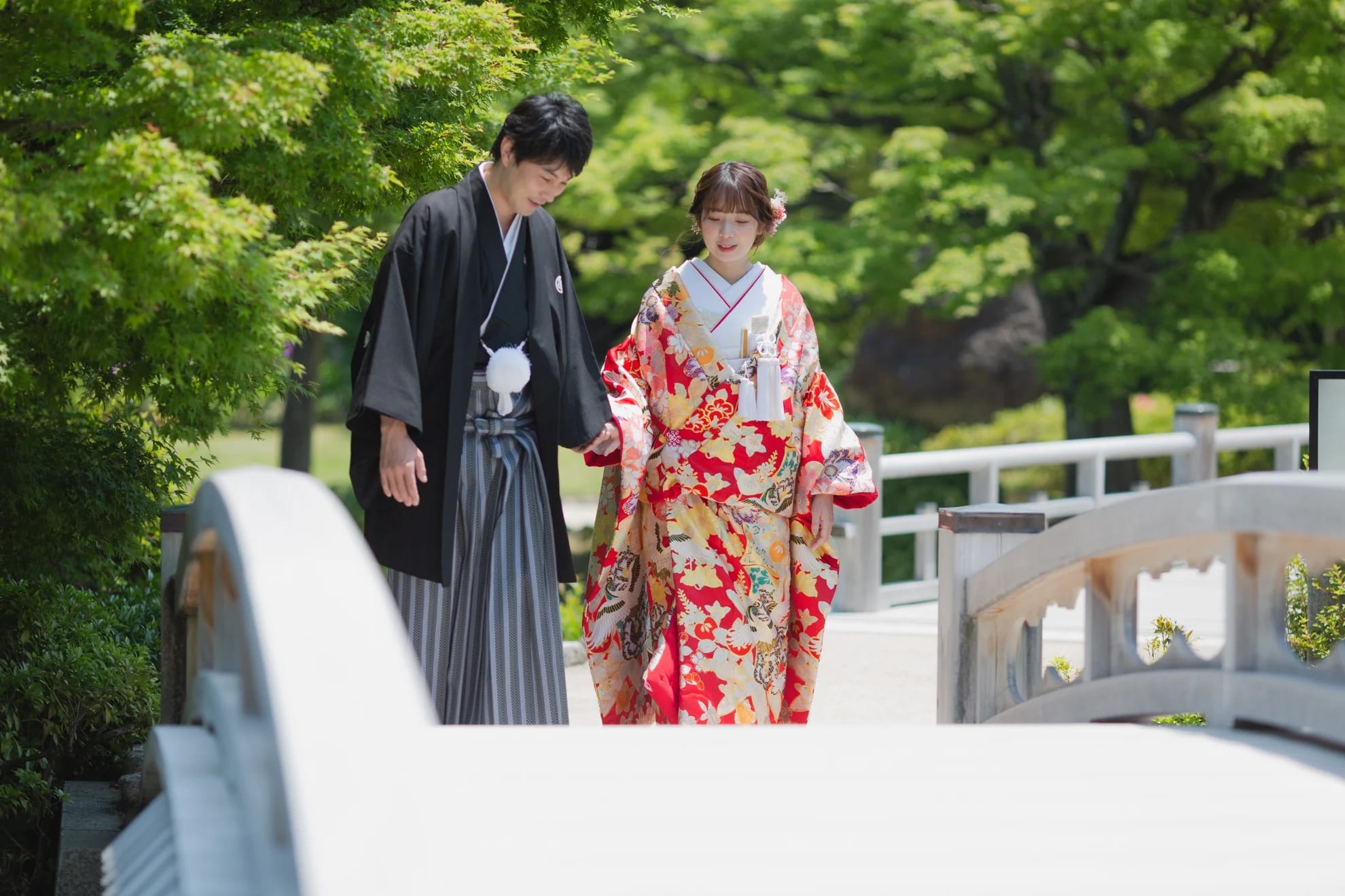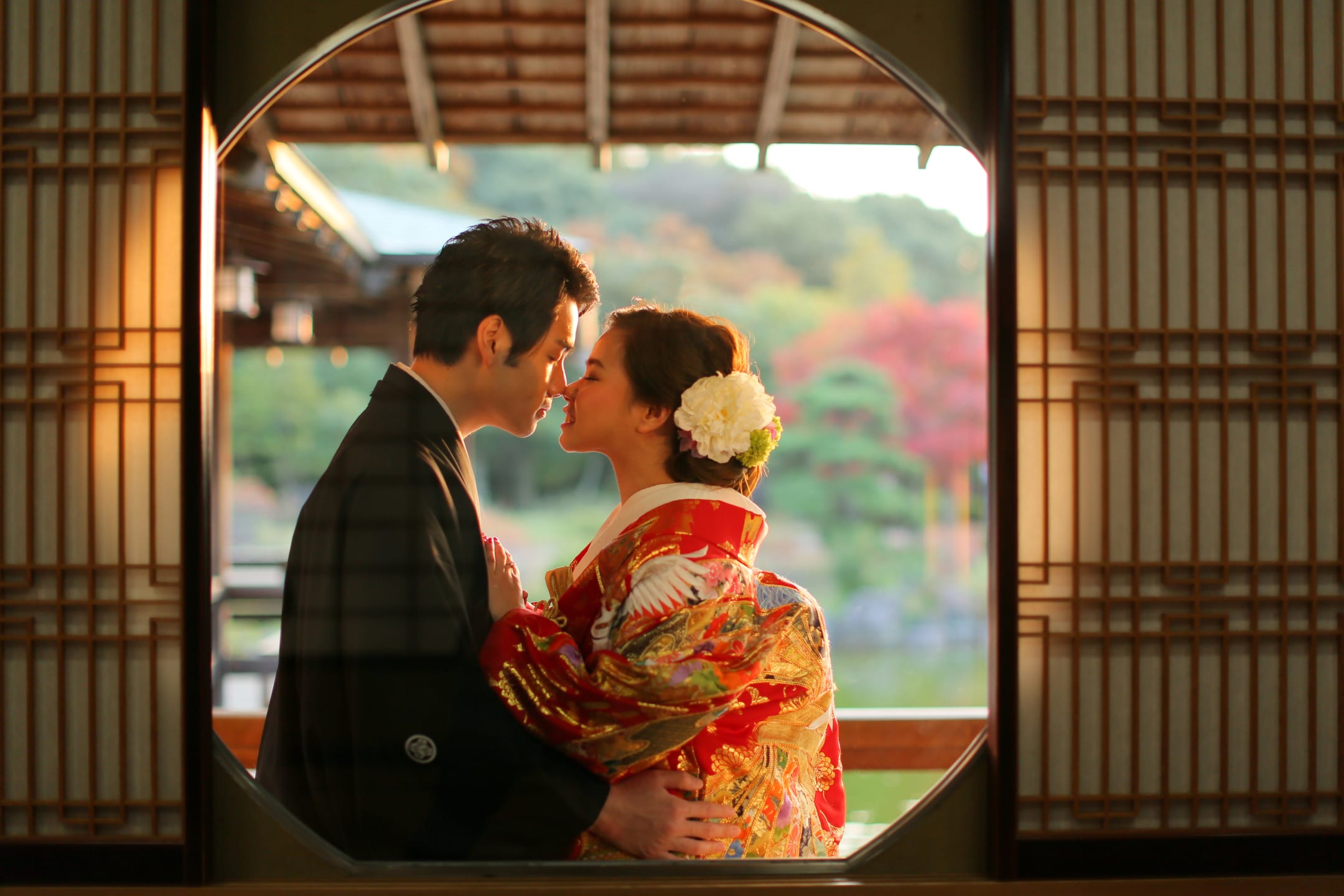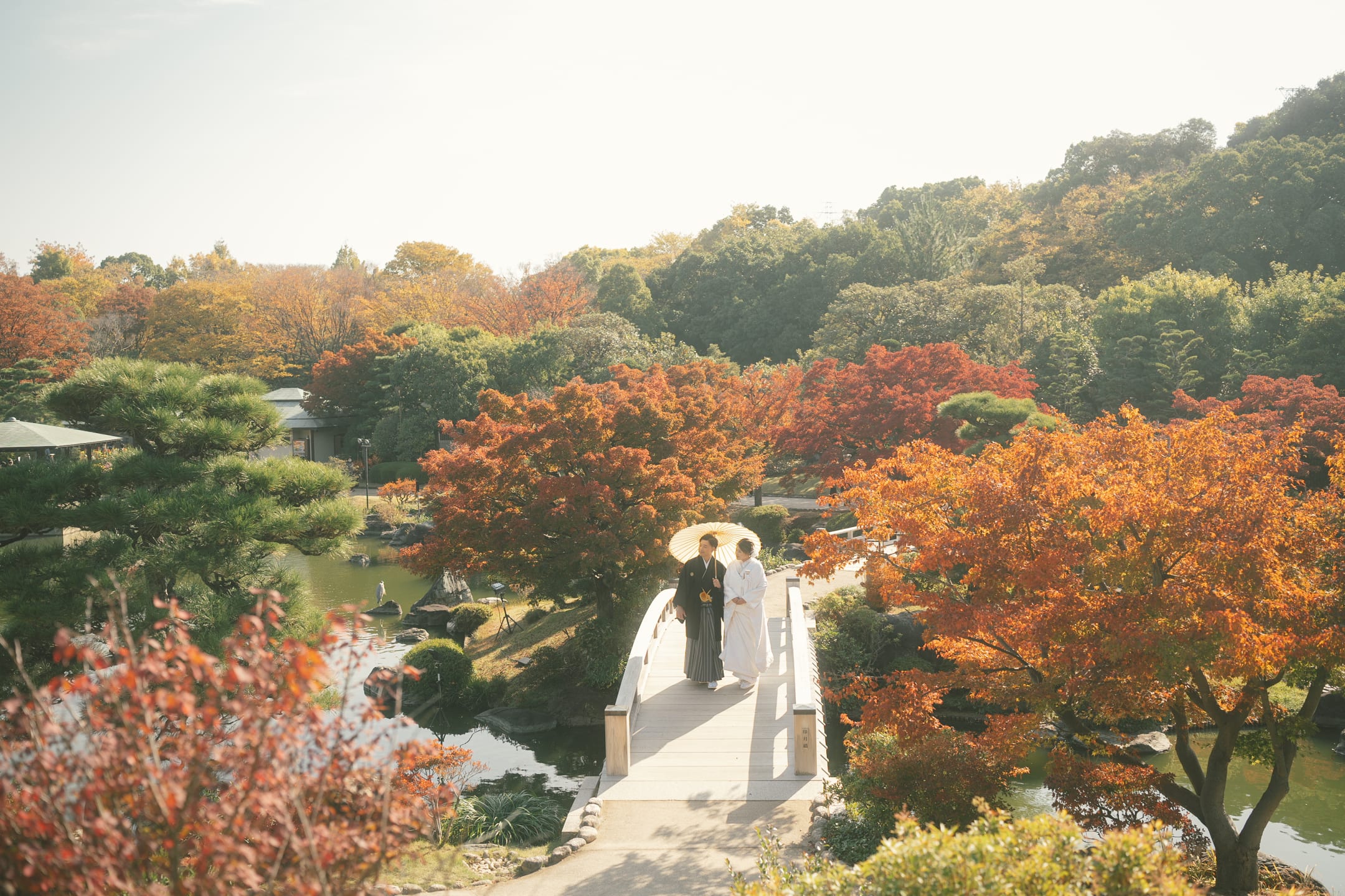 Daisen Japanese Garden is distinguished by the refined scenery of a traditional Japanese garden, beautifully shaped by seasonal nature. Its pond-strolling design, along with moss, autumn foliage, and other plantings, creates a serene atmosphere. It is ideal for traditional kimono portraits, yet also offers a classic and elegant setting for Western-style attire.