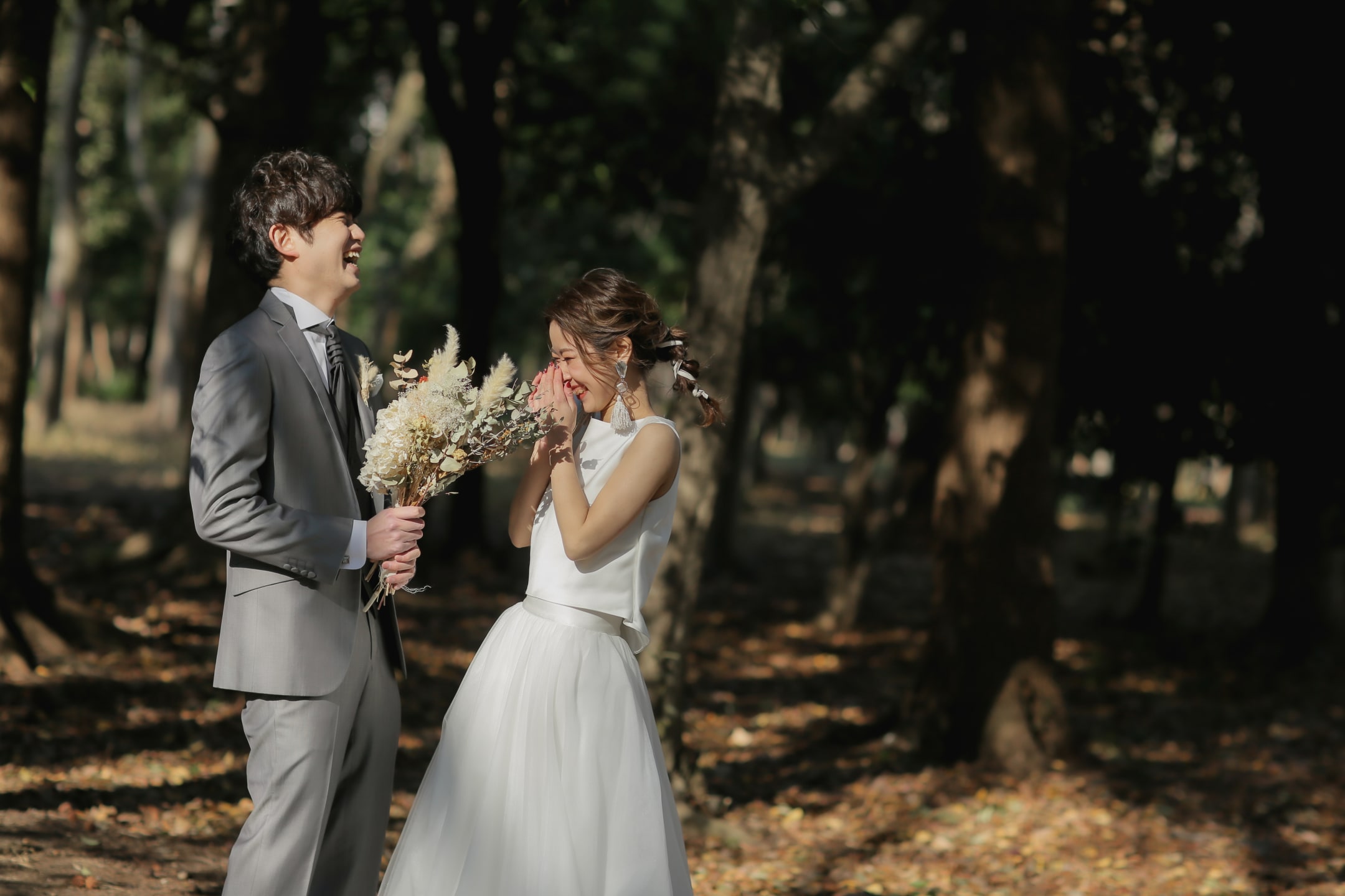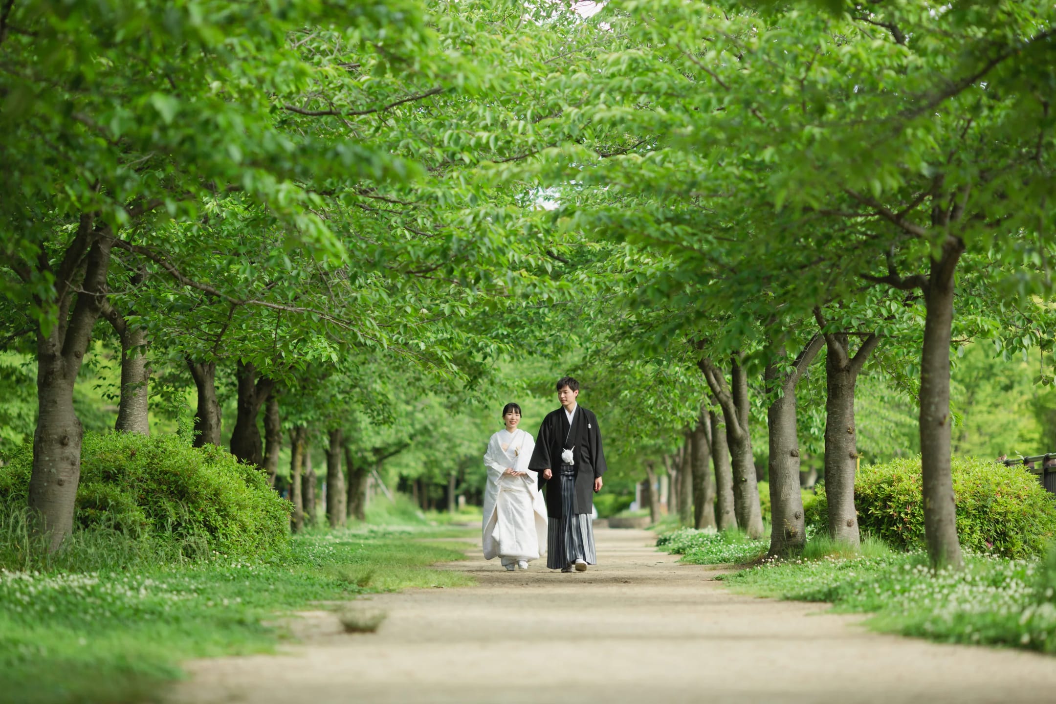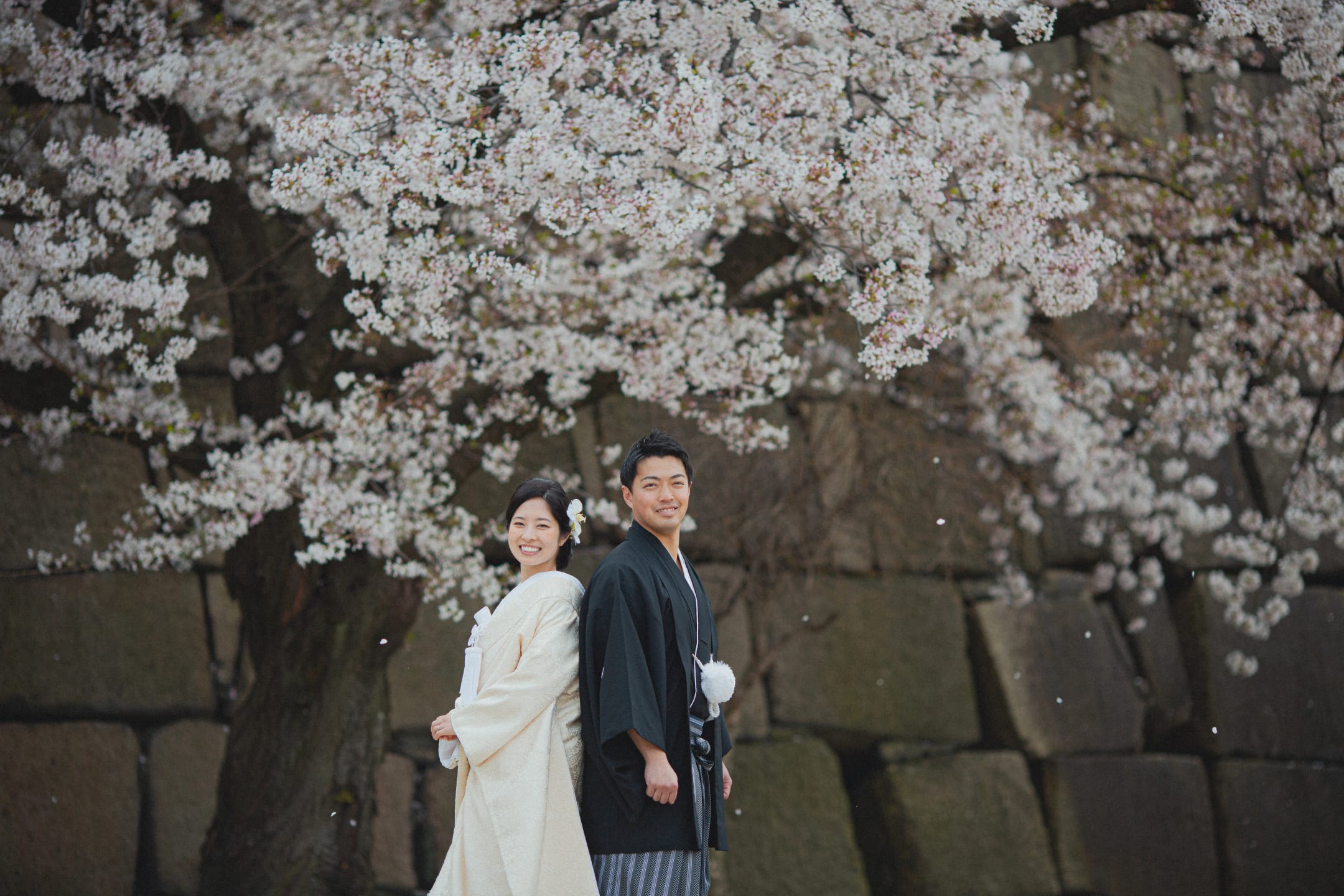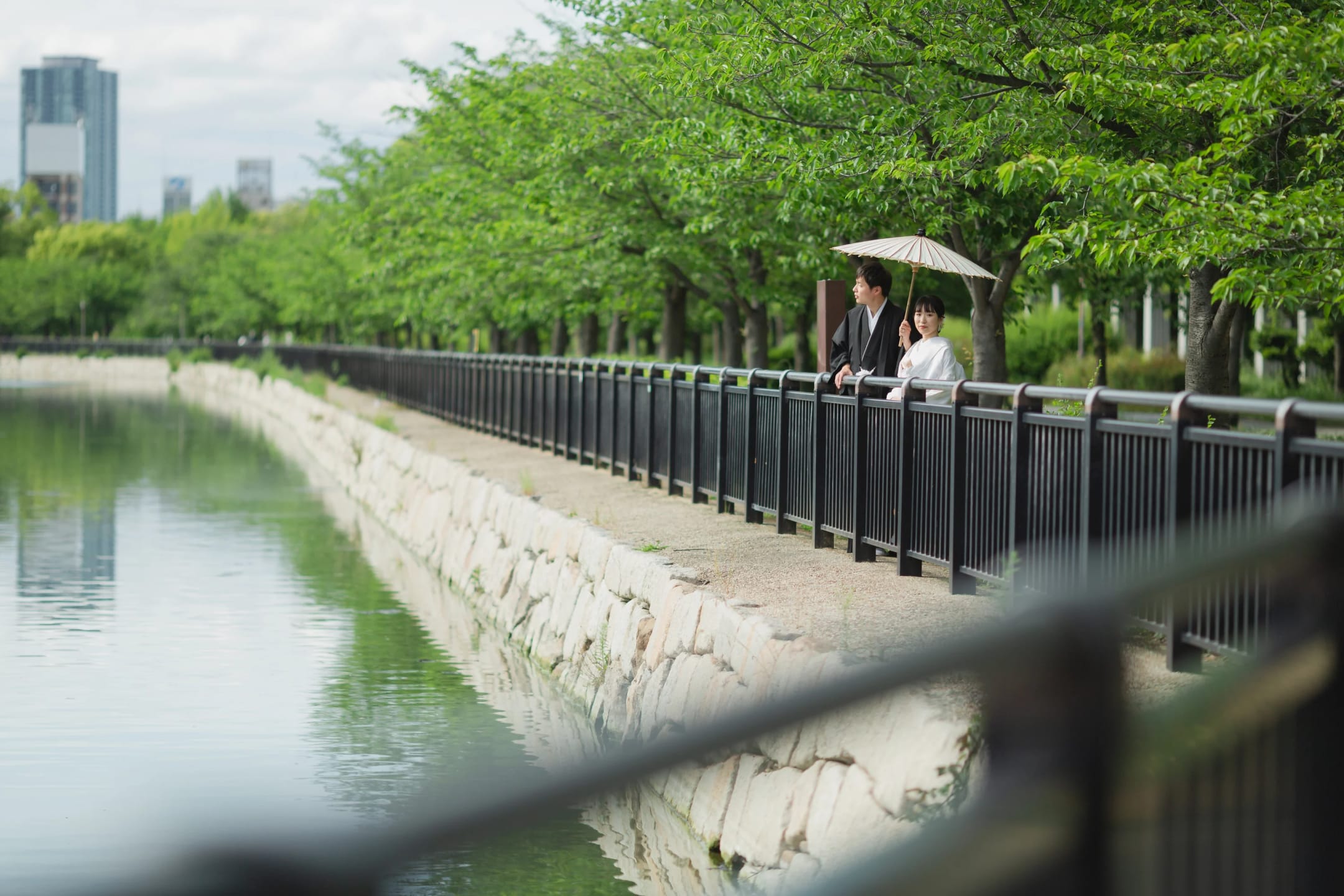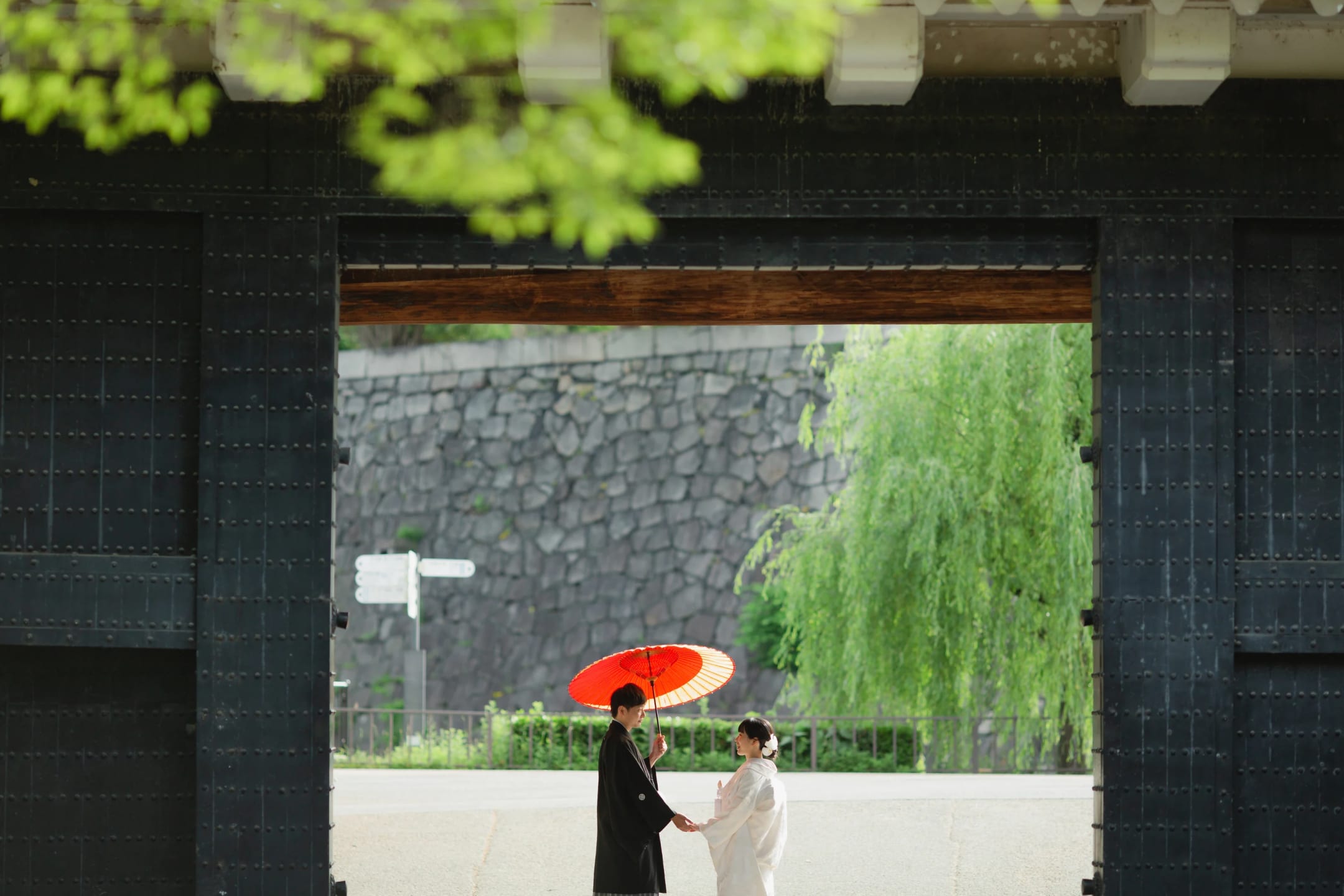 Osaka Castle, an iconic landmark of Osaka, provides a powerful backdrop with its imposing stone walls and majestic main keep. The historic grandeur combined with the expansive greenery of the surrounding park enables dynamic and visually striking pre-wedding photography.