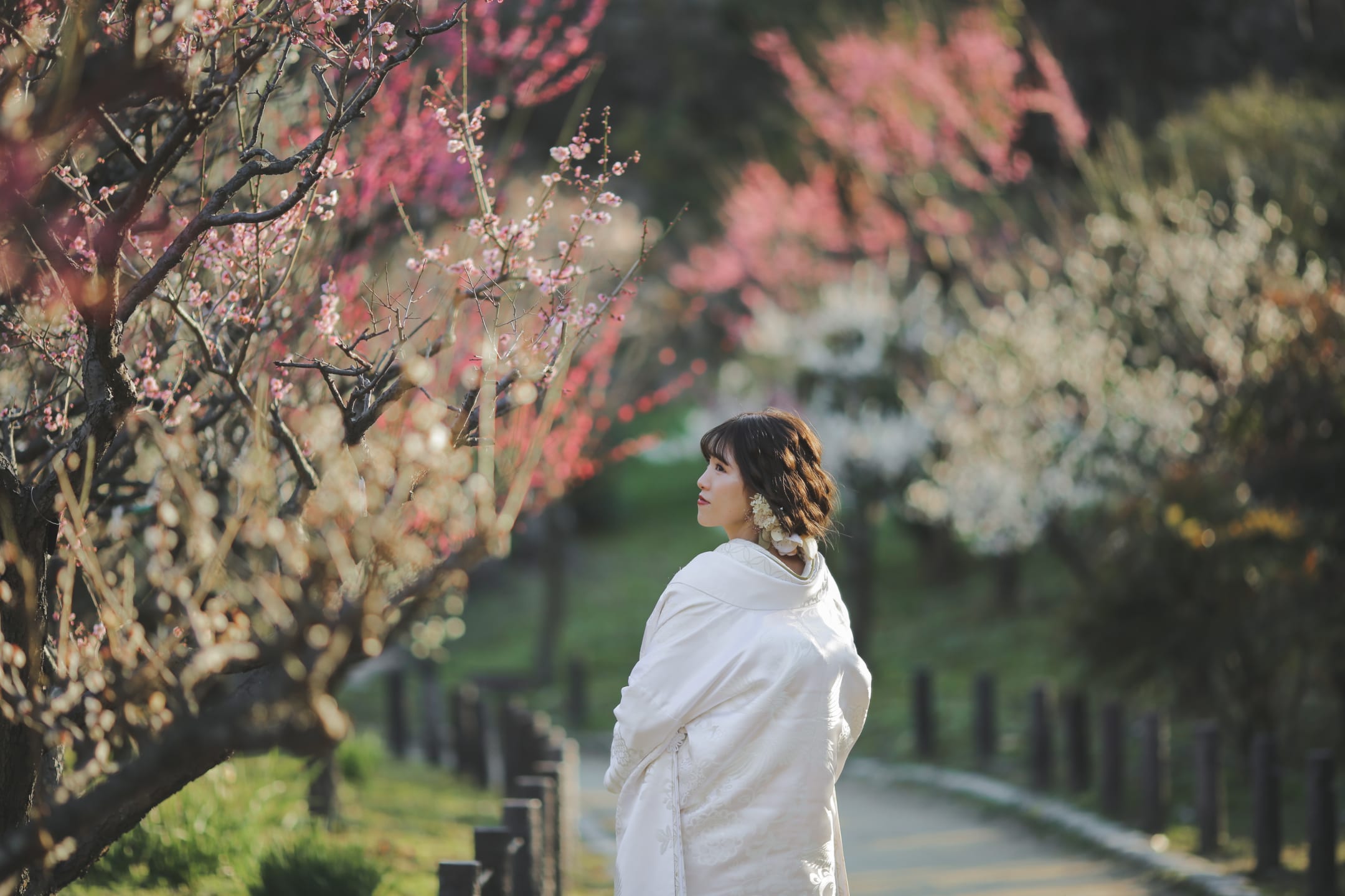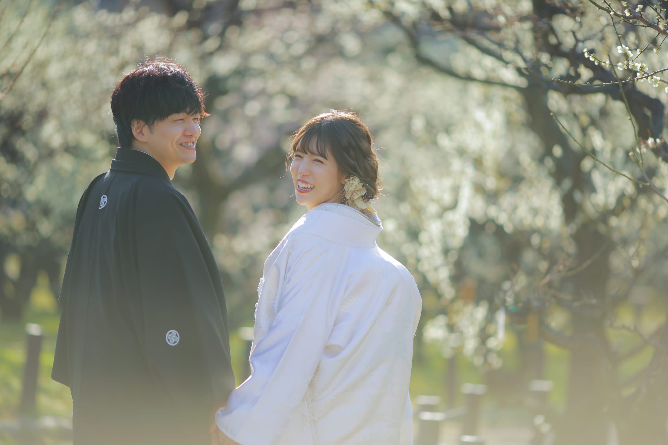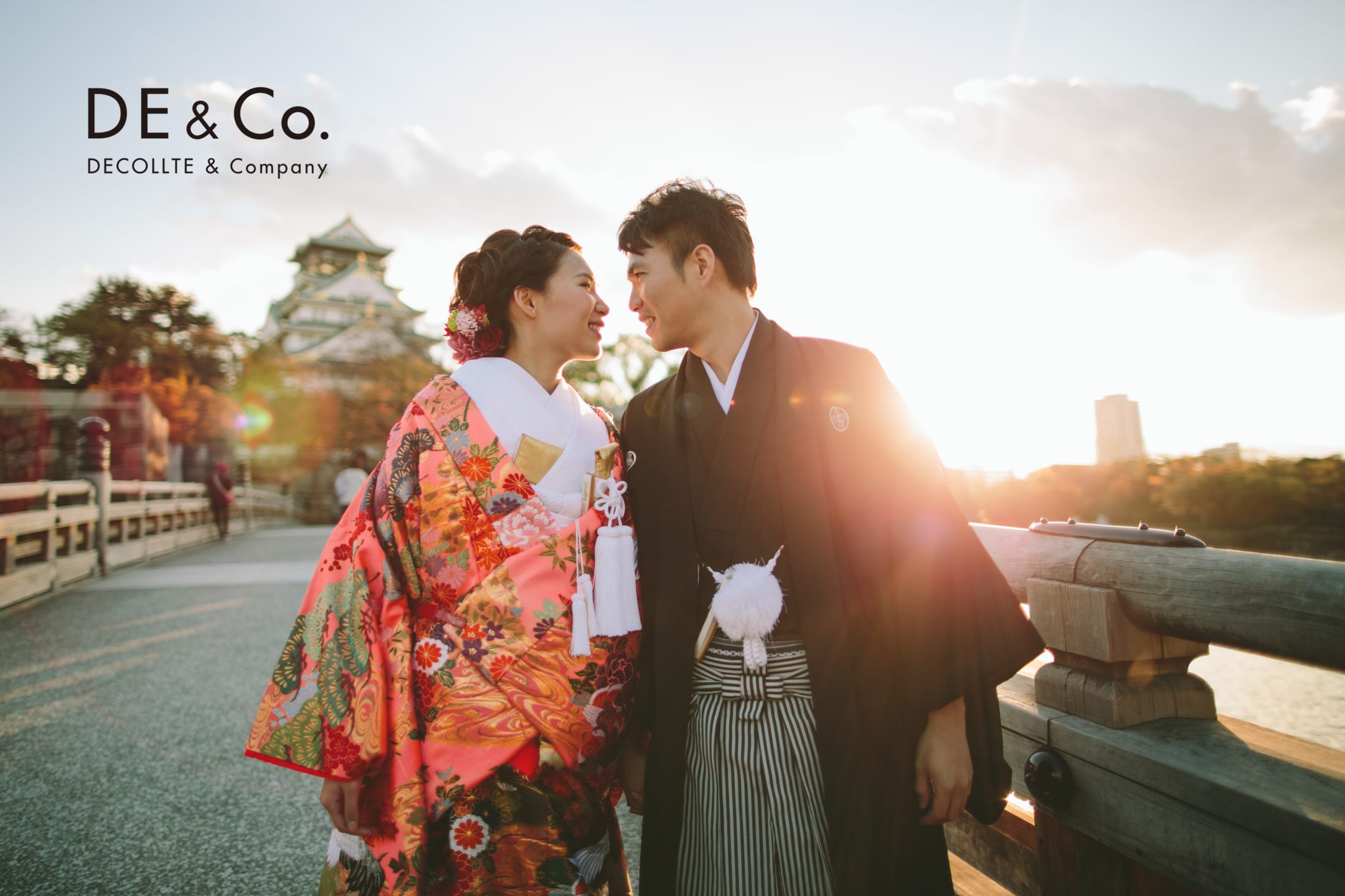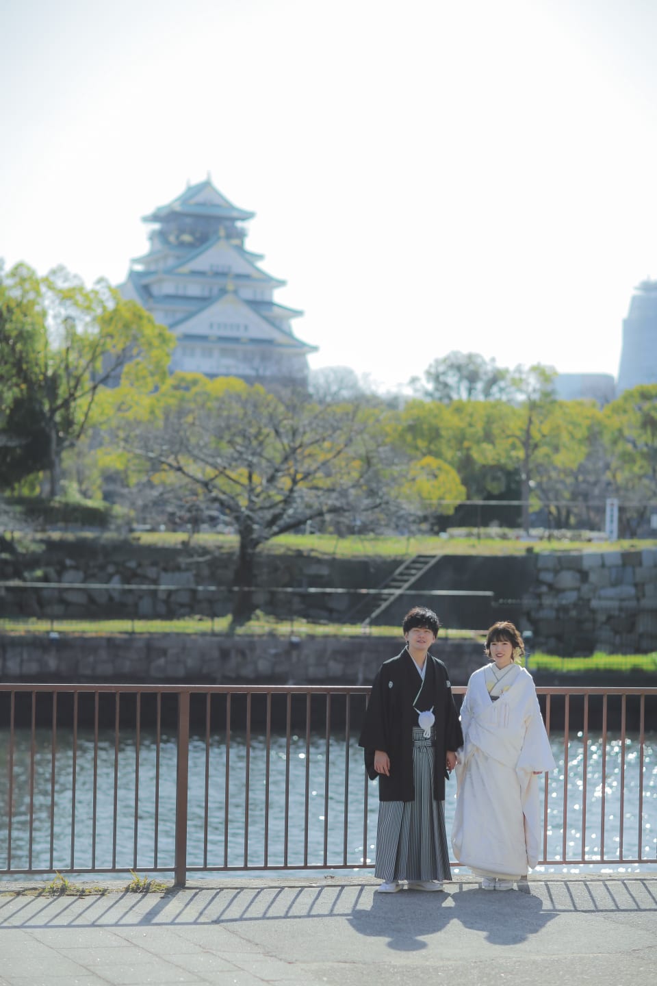 Osaka Castle, an iconic landmark of Osaka, provides a powerful backdrop with its imposing stone walls and majestic main keep. The historic grandeur combined with the expansive greenery of the surrounding park enables dynamic and visually striking pre-wedding photography.