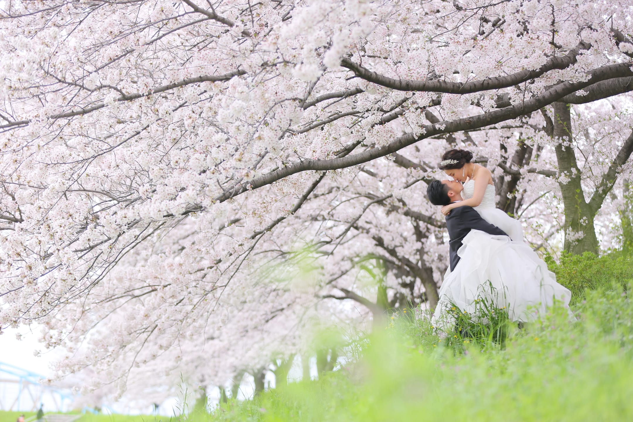 Osaka Castle, an iconic landmark of Osaka, provides a powerful backdrop with its imposing stone walls and majestic main keep. The historic grandeur combined with the expansive greenery of the surrounding park enables dynamic and visually striking pre-wedding photography.
