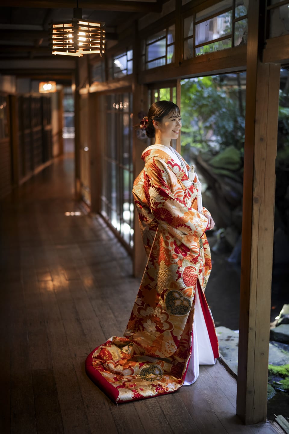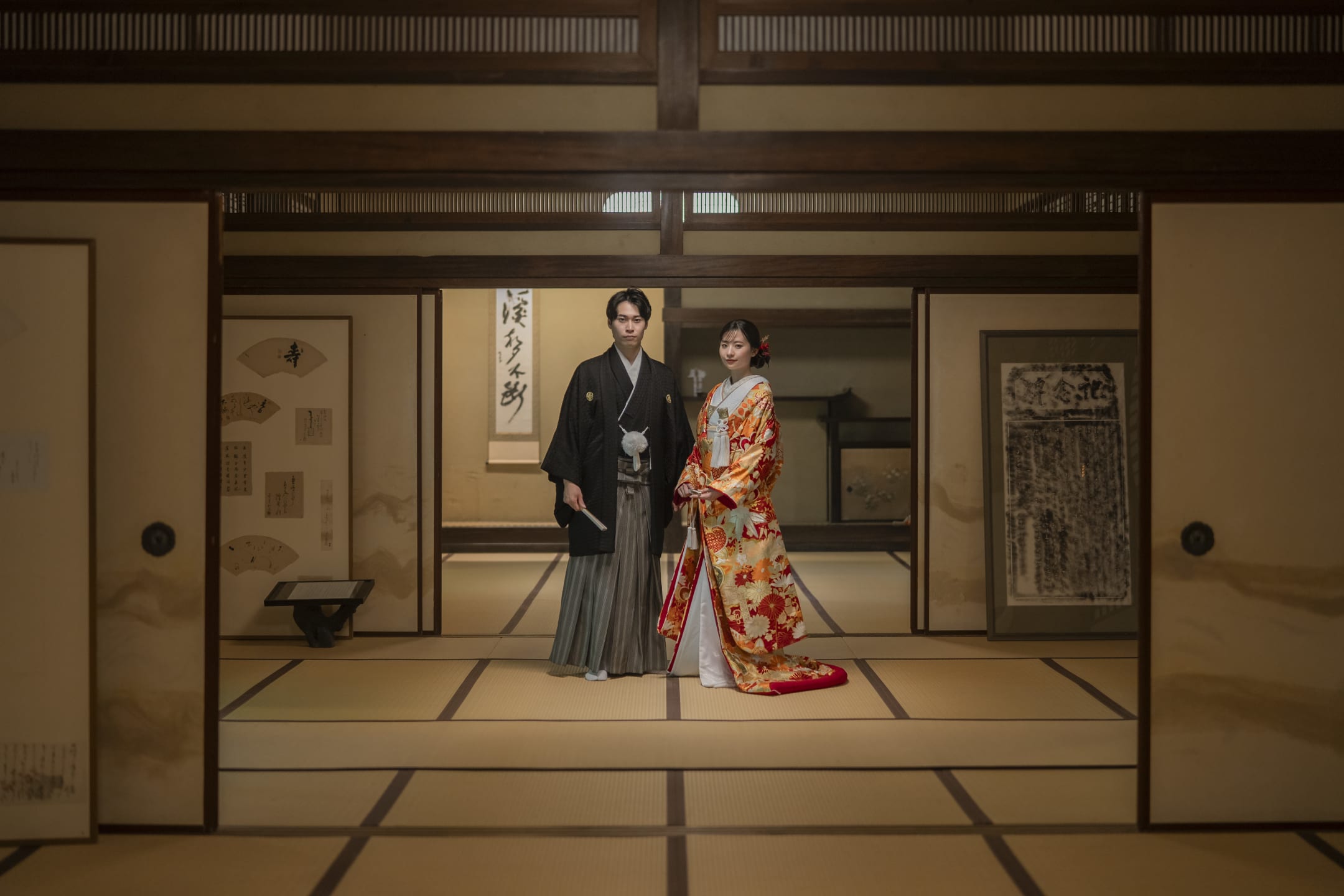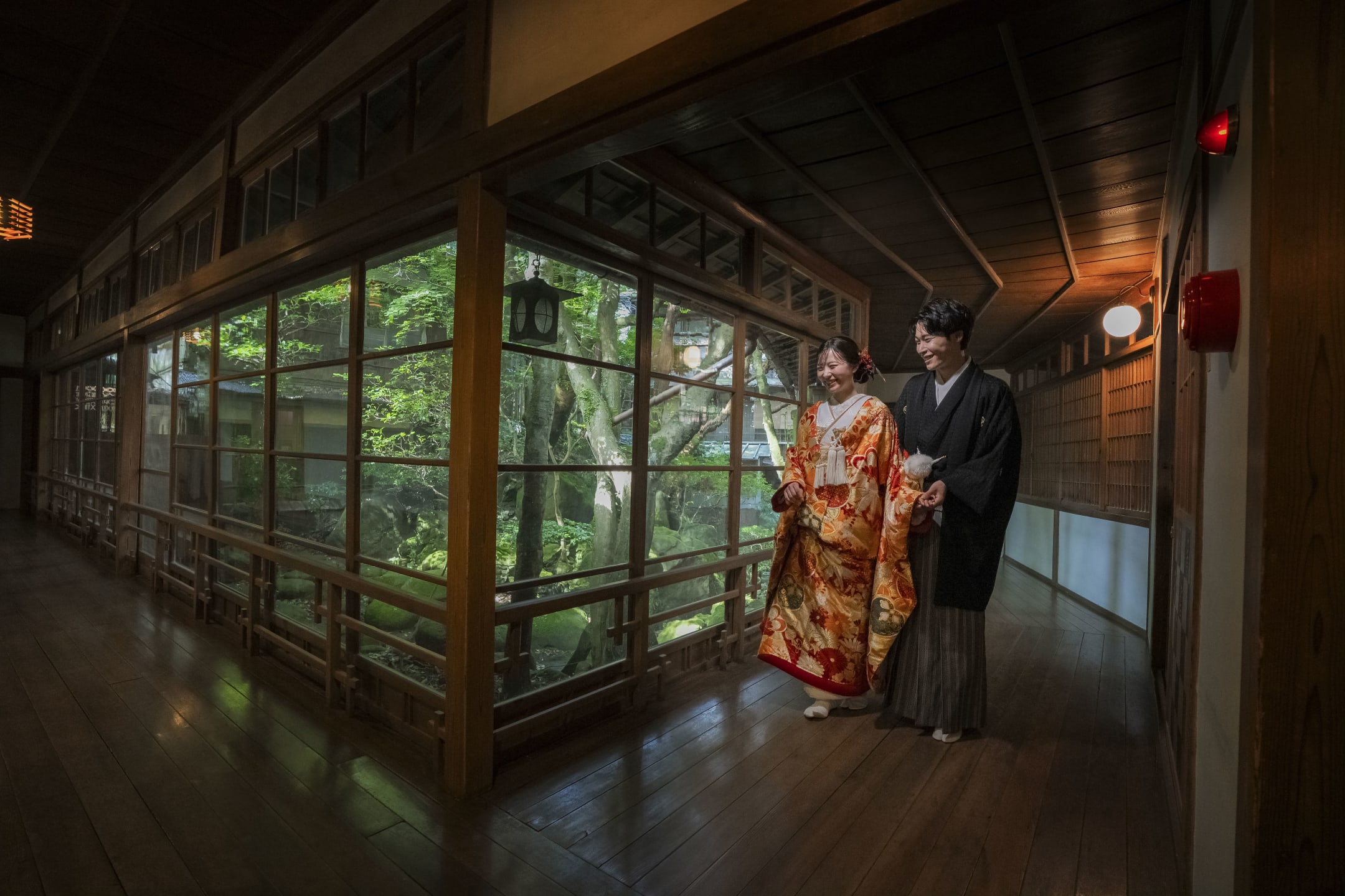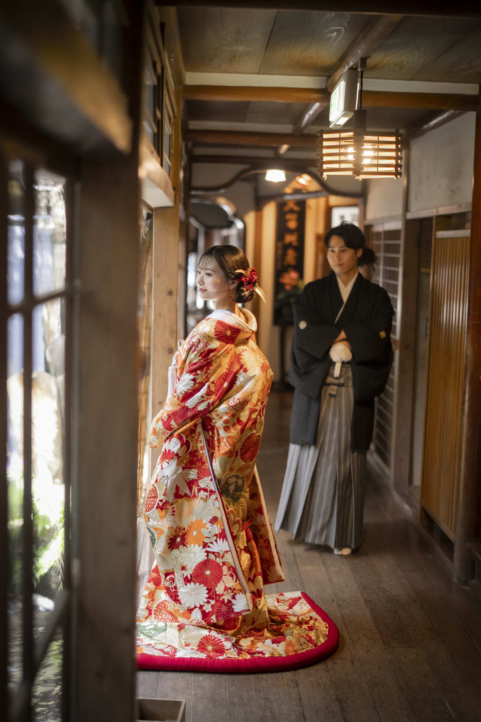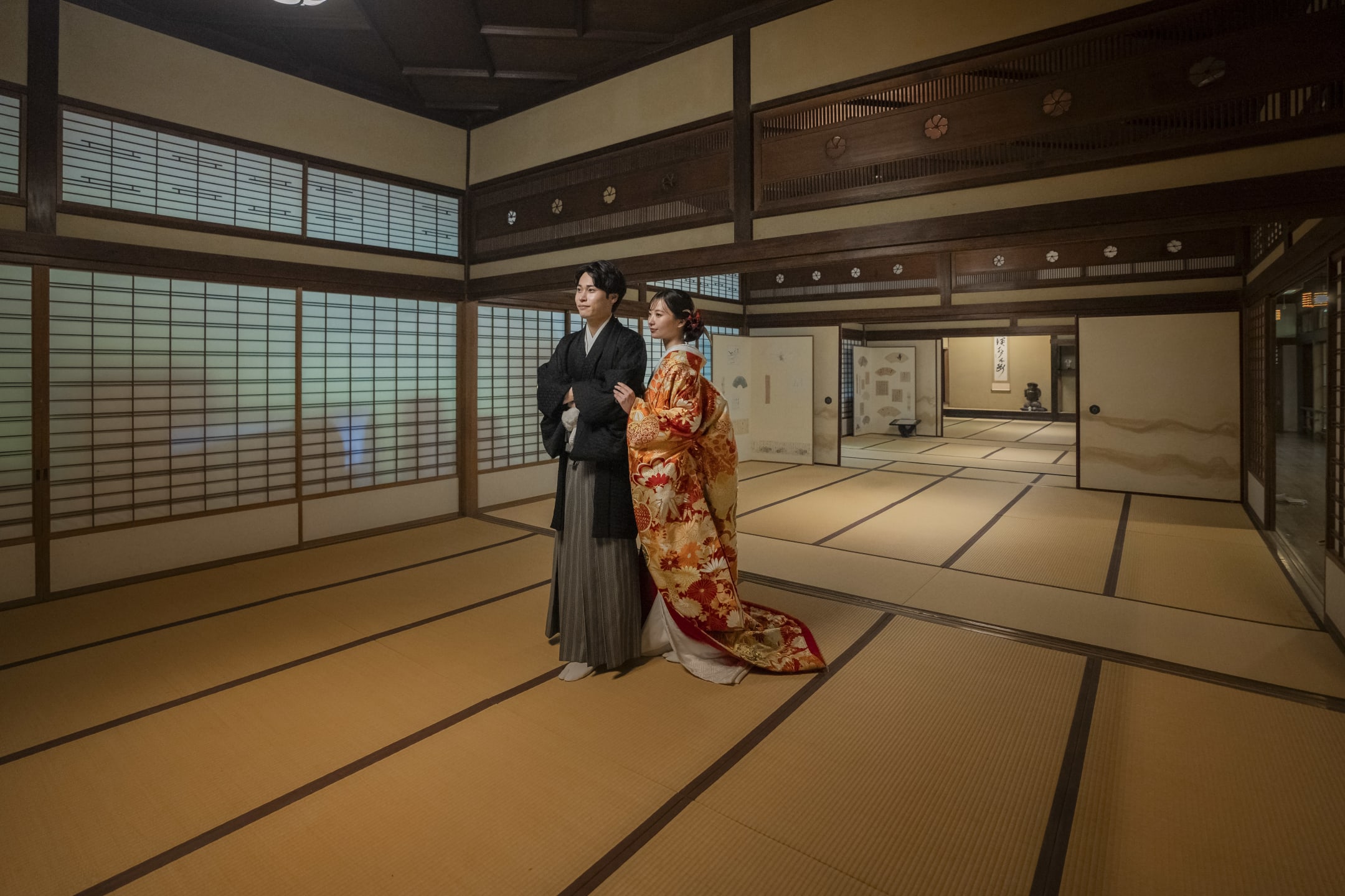 Gora Kadan features refined Japanese aesthetics and a beautifully manicured traditional garden. The luxurious setting creates a stately atmosphere that shines in formal pre-wedding photography, allowing for dramatic and sophisticated imagery.