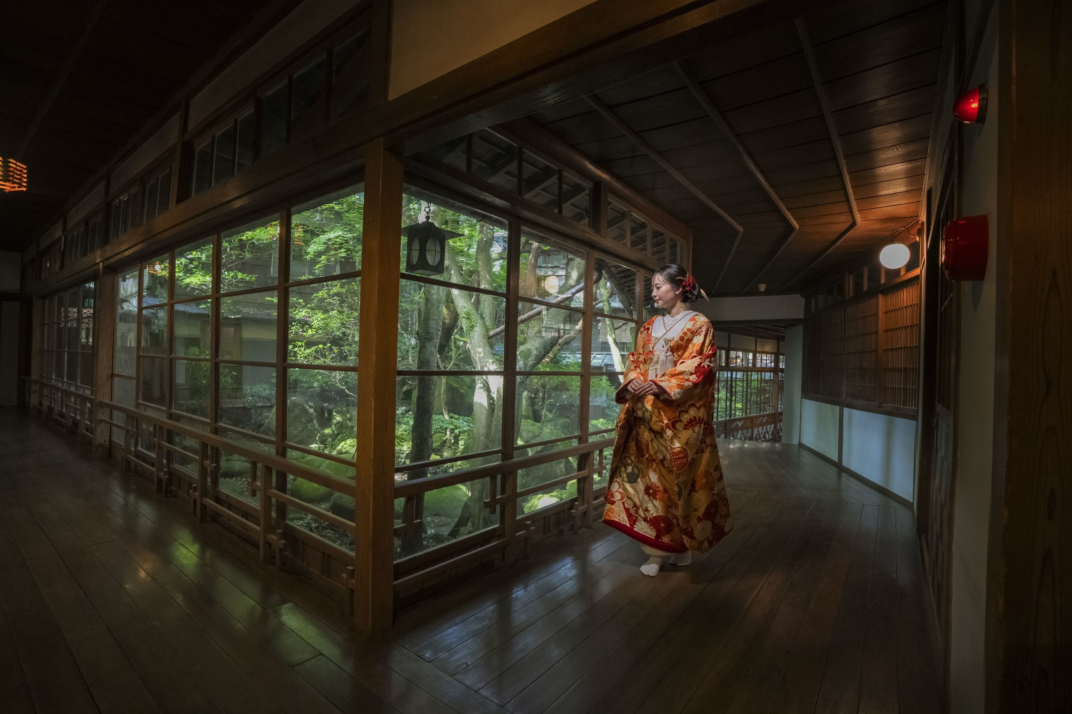Fukuzumirō is a historic traditional inn with classic wooden architecture and a serene Japanese garden. It offers a dignified setting for Japanese attire, enabling photography with a strong sense of heritage and time.