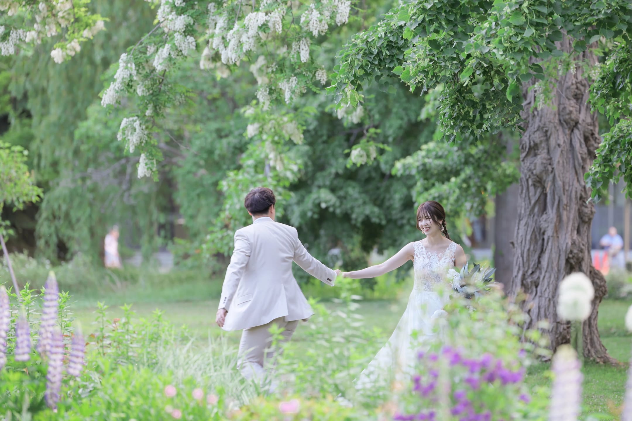 Fields of lavender, the iconic symbol of Hokkaido in summer, create a romantic setting with vibrant purple tones stretching across the landscape. Surrounded by floral fragrance and soft natural light, couples can capture refreshing, seasonally rich pre-wedding portraits.