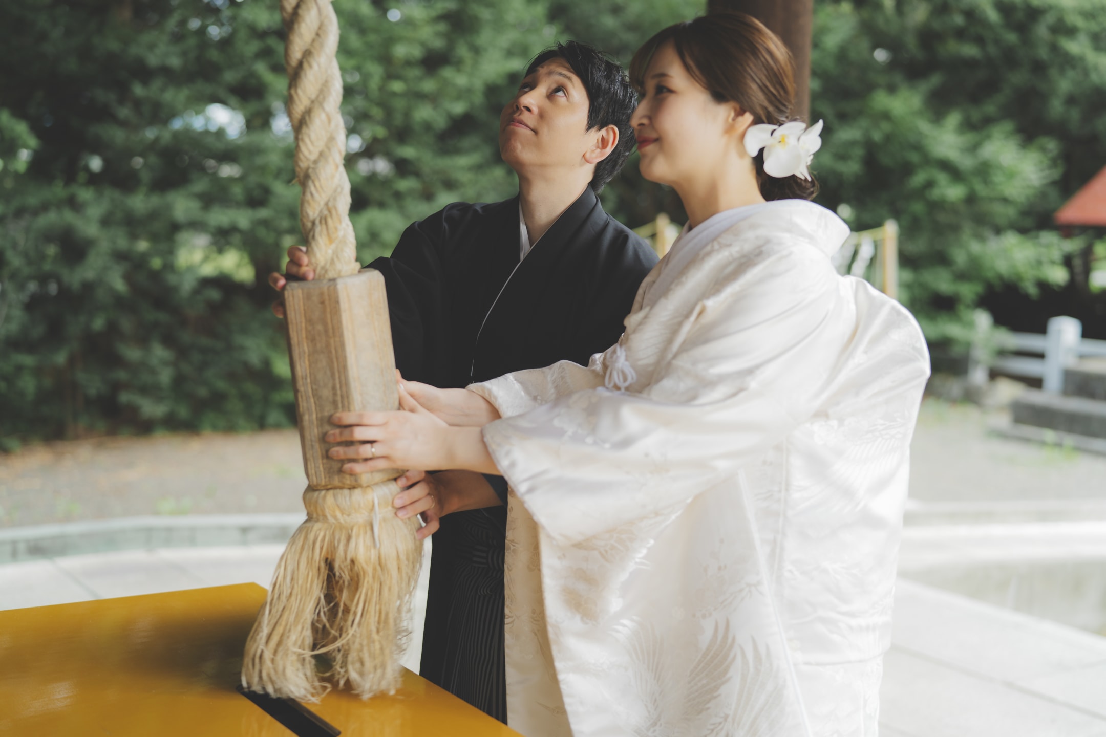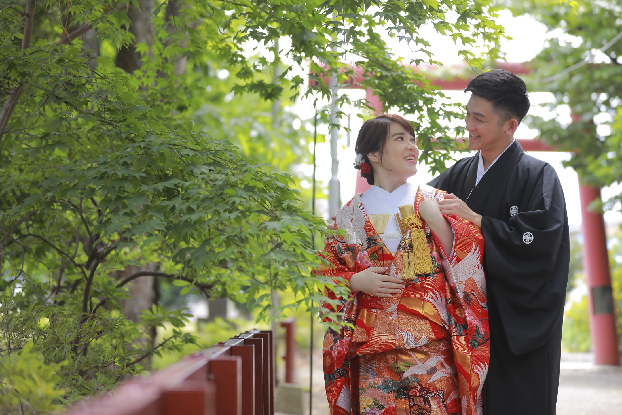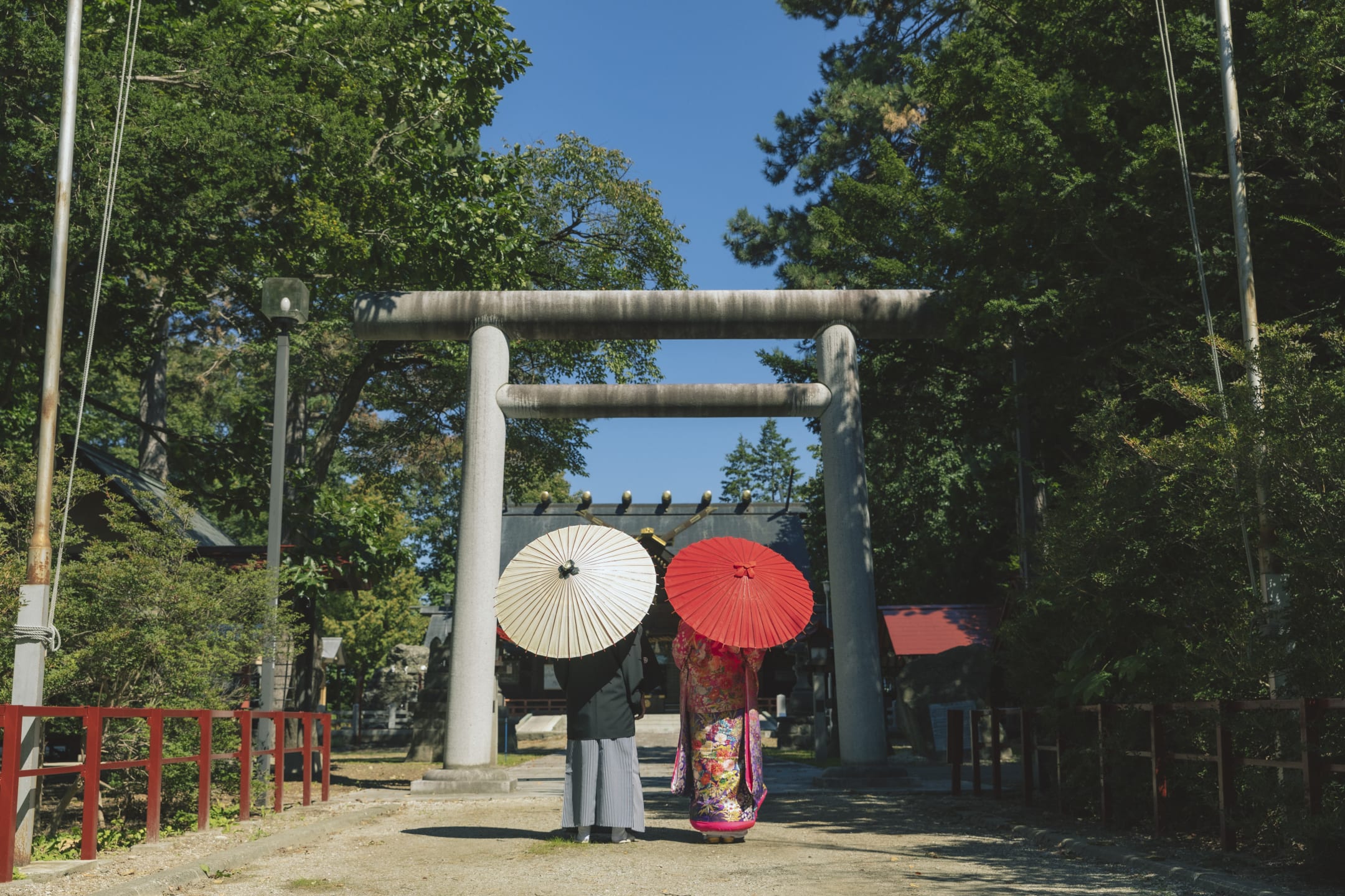 This historic shrine blends with surrounding nature, adding grace and tranquility to traditional or Japanese-style photography. The greenery-filled grounds create a serene atmosphere, enhancing the depth and sincerity of the portraits.