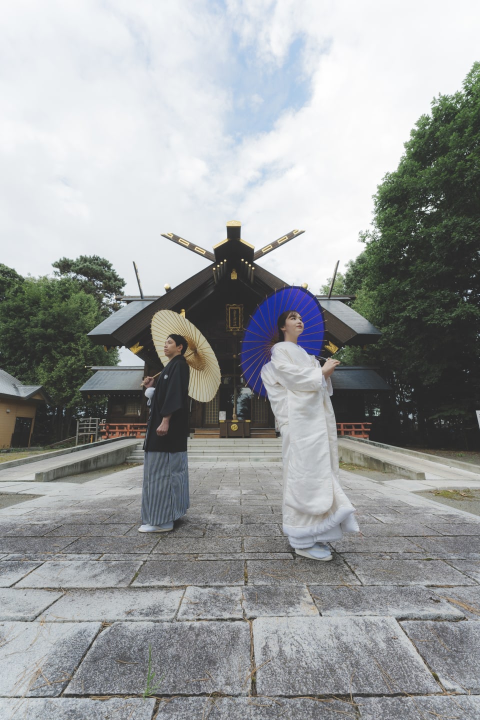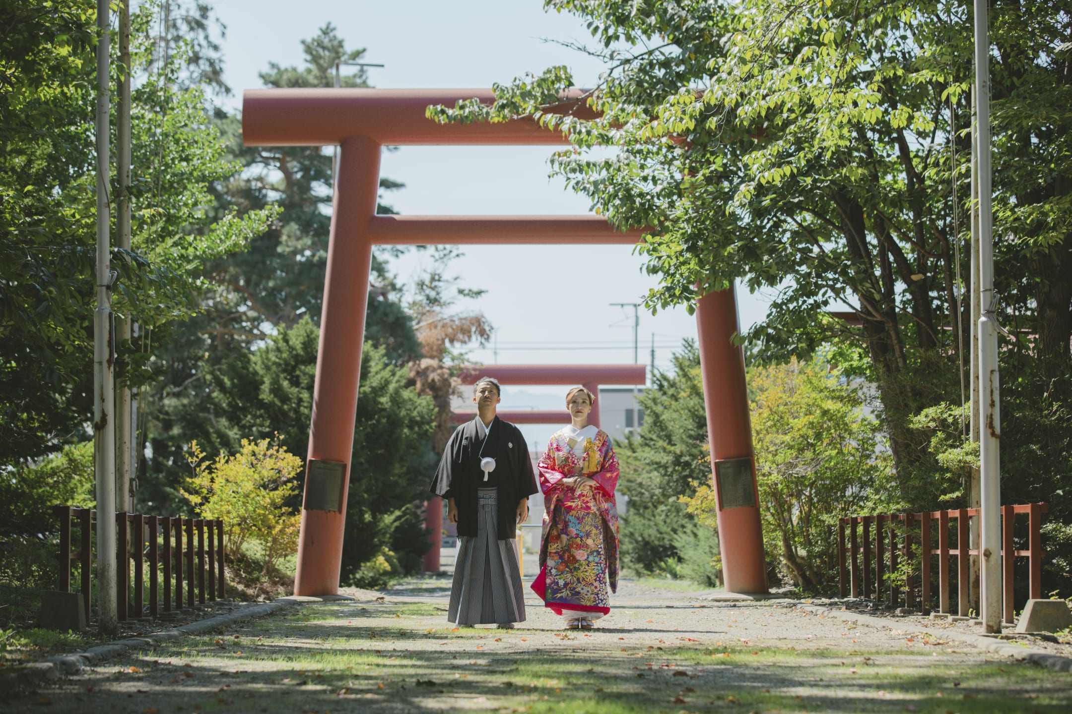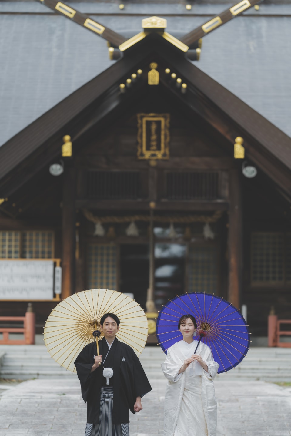 This historic shrine blends with surrounding nature, adding grace and tranquility to traditional or Japanese-style photography. The greenery-filled grounds create a serene atmosphere, enhancing the depth and sincerity of the portraits.