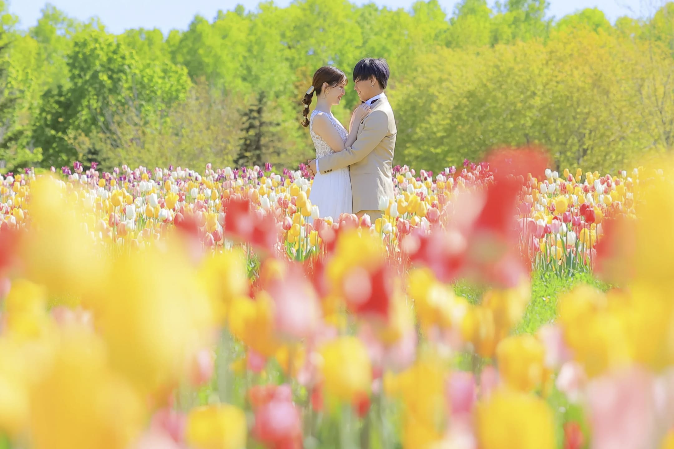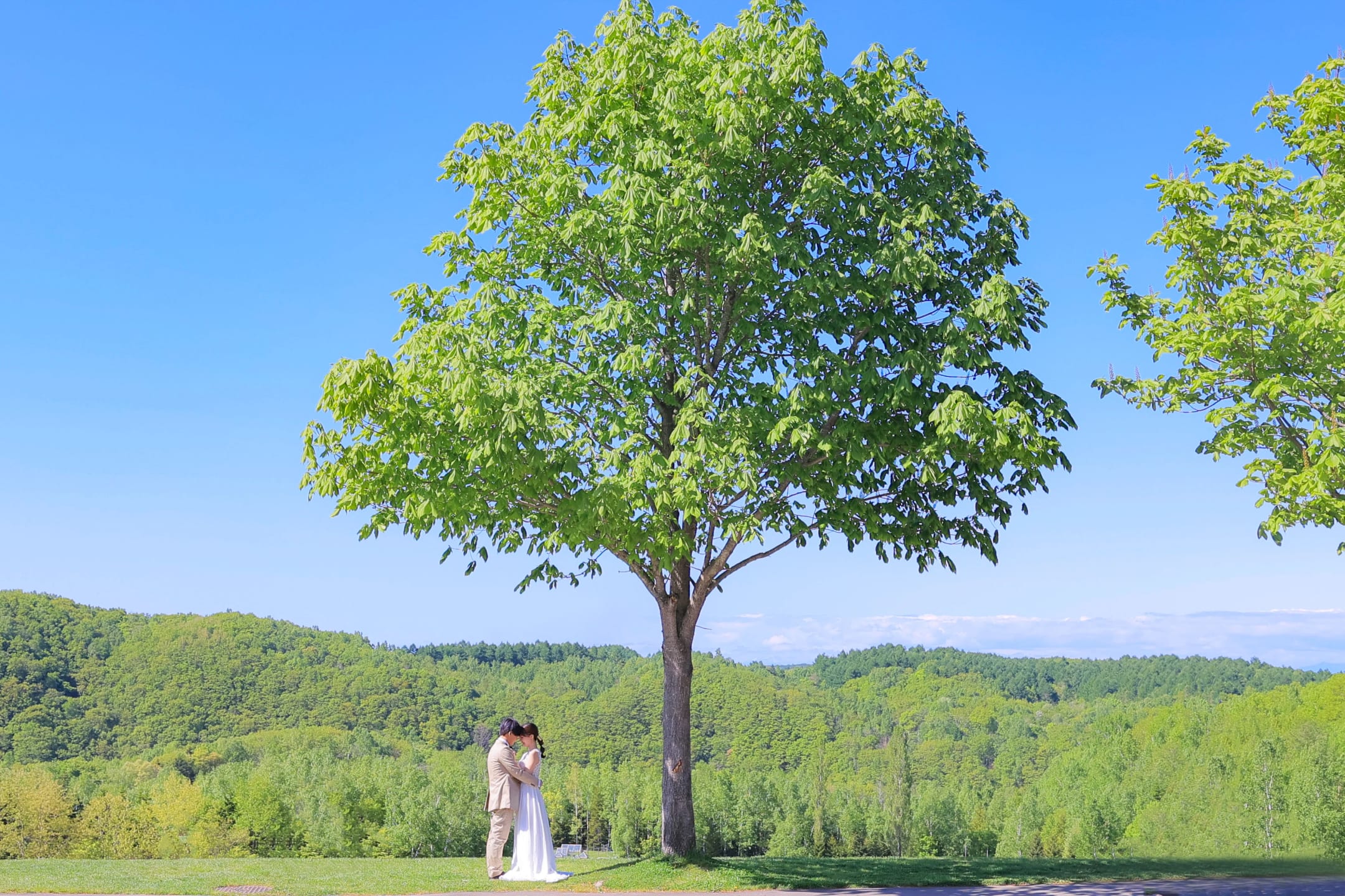 Fields of lavender, the iconic symbol of Hokkaido in summer, create a romantic setting with vibrant purple tones stretching across the landscape. Surrounded by floral fragrance and soft natural light, couples can capture refreshing, seasonally rich pre-wedding portraits.
