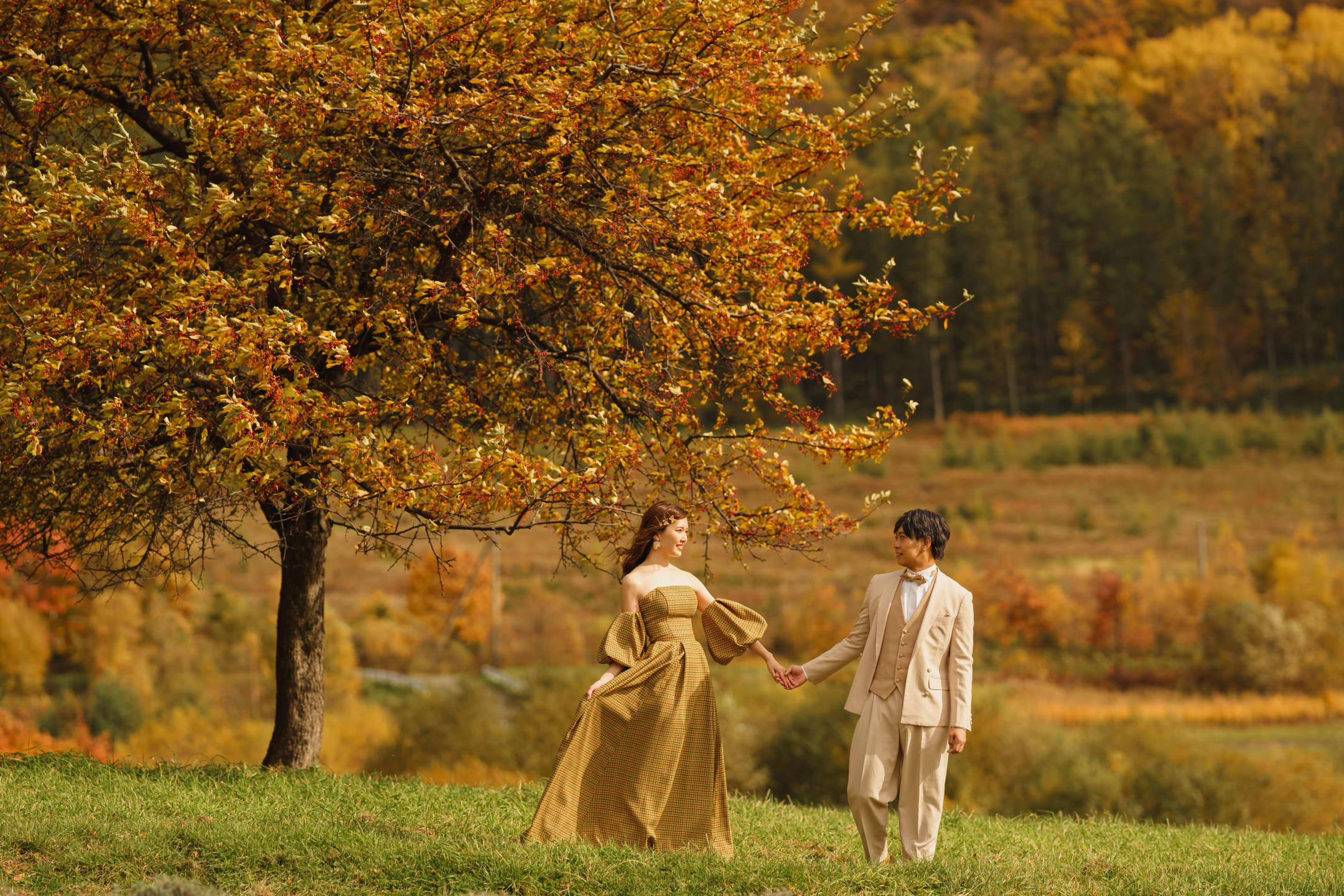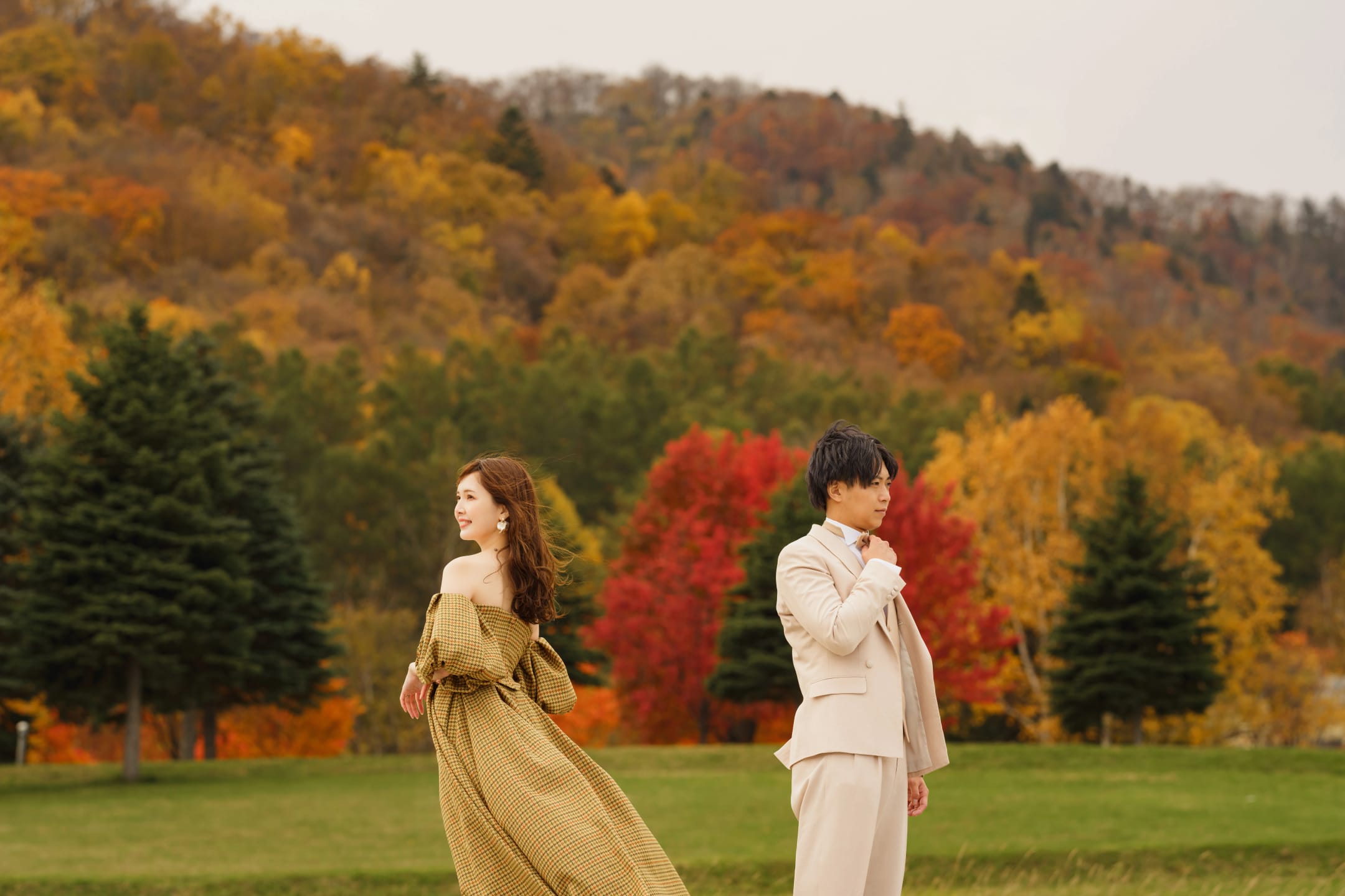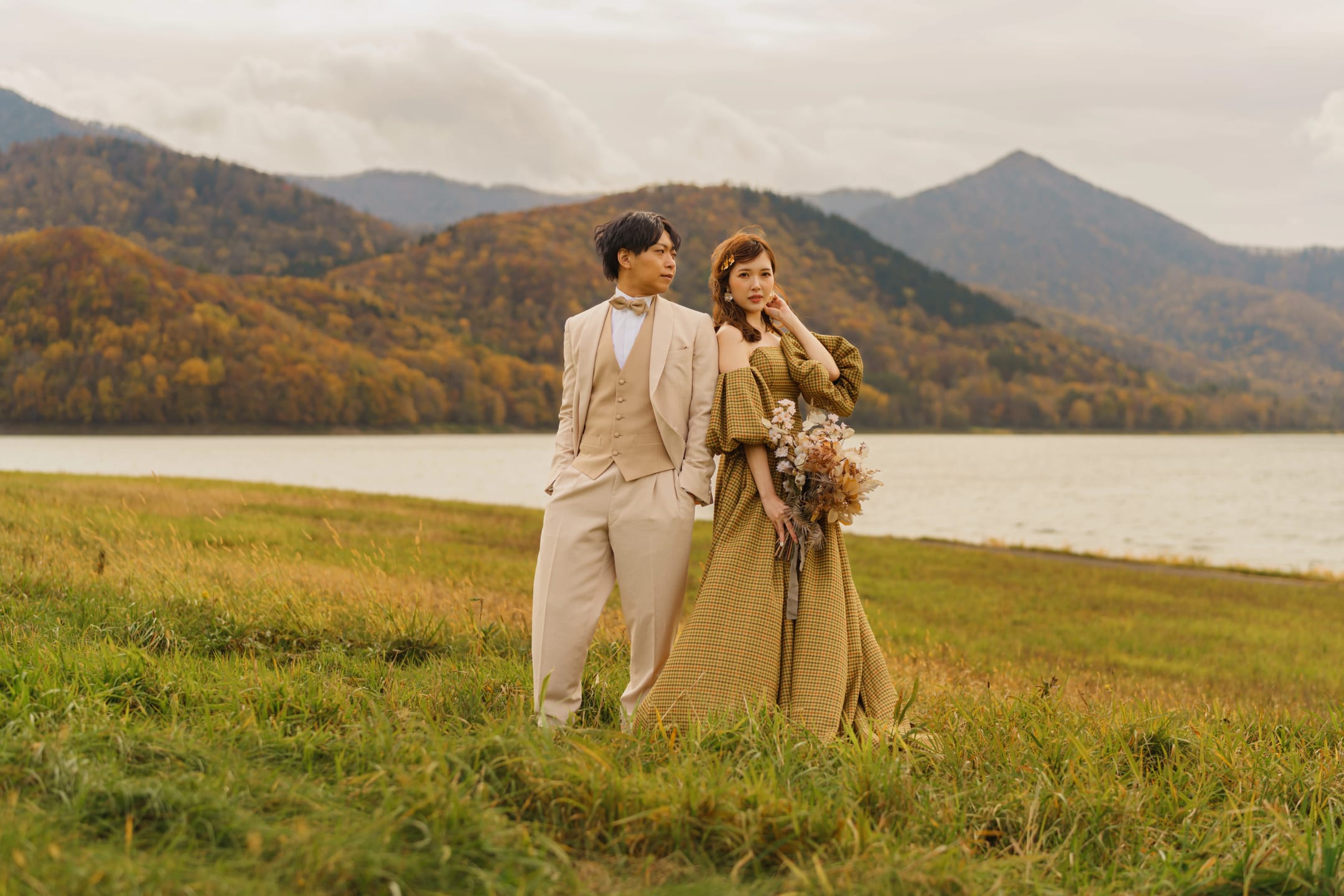 Fields of lavender, the iconic symbol of Hokkaido in summer, create a romantic setting with vibrant purple tones stretching across the landscape. Surrounded by floral fragrance and soft natural light, couples can capture refreshing, seasonally rich pre-wedding portraits.