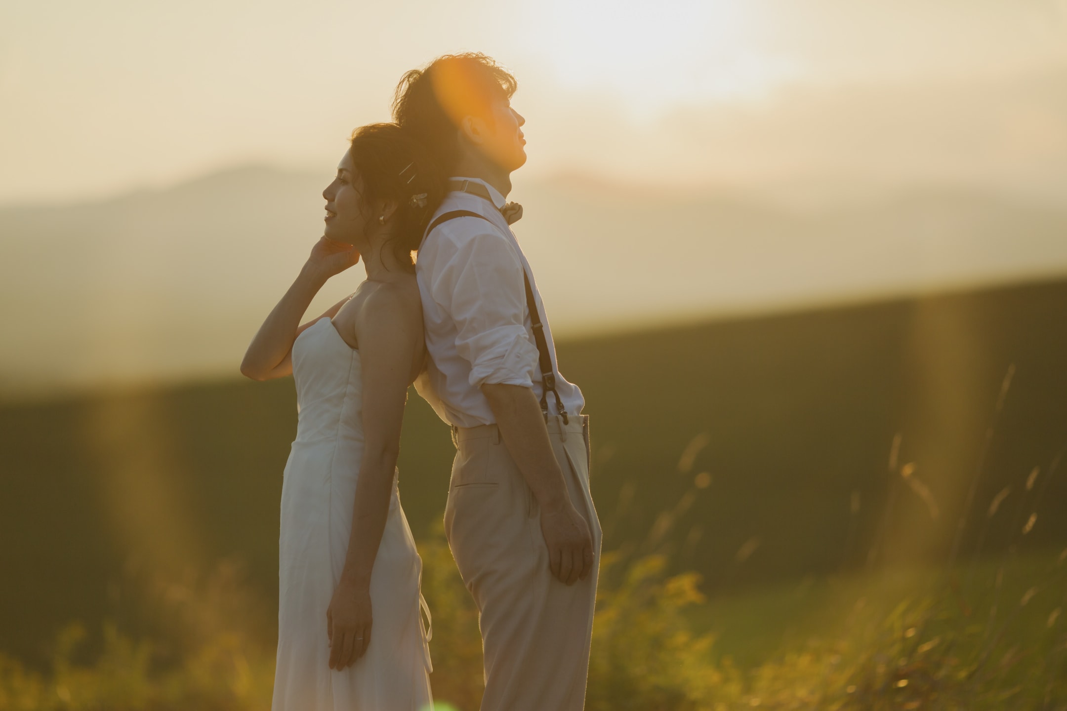 Fields of lavender, the iconic symbol of Hokkaido in summer, create a romantic setting with vibrant purple tones stretching across the landscape. Surrounded by floral fragrance and soft natural light, couples can capture refreshing, seasonally rich pre-wedding portraits.