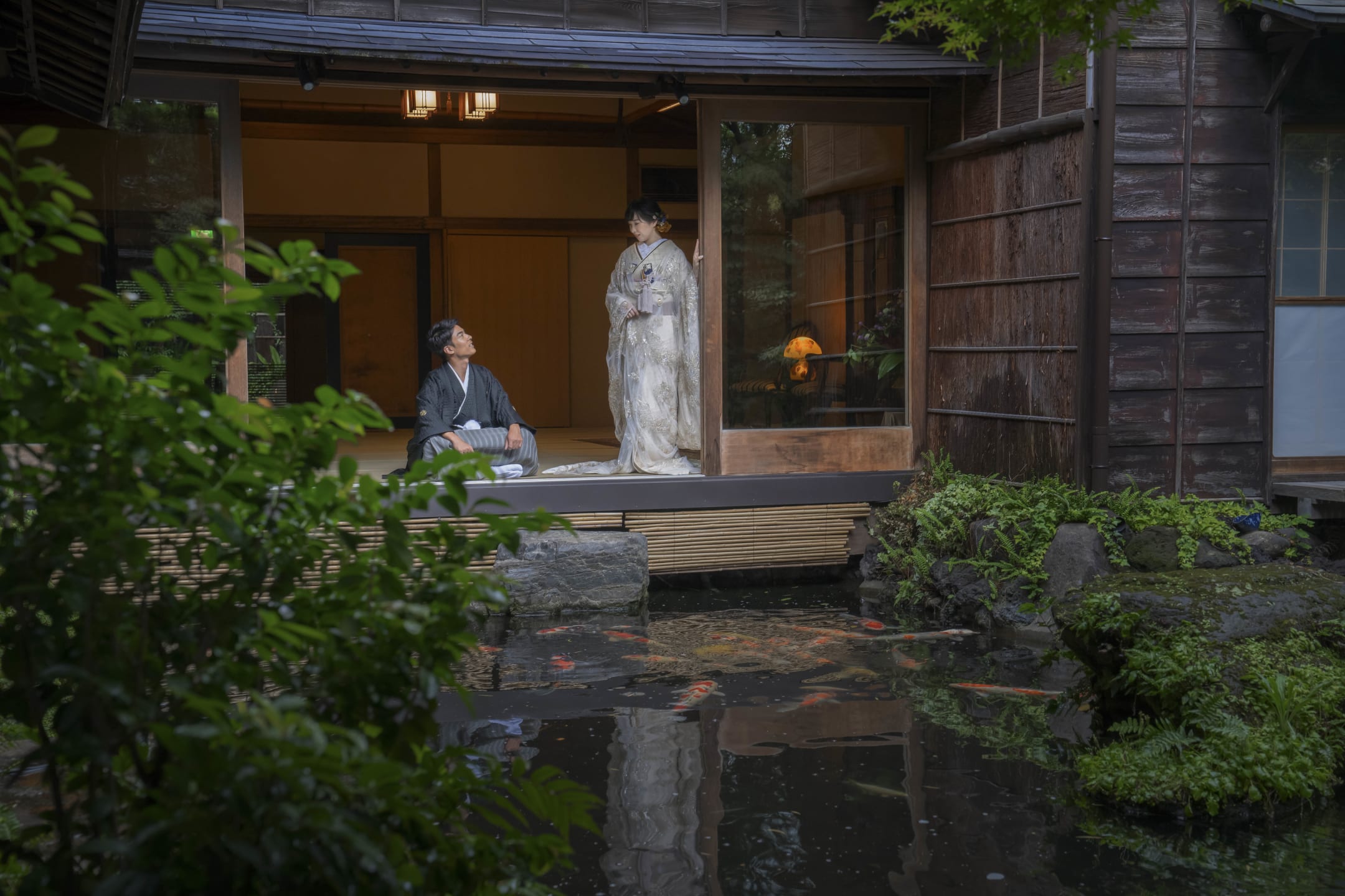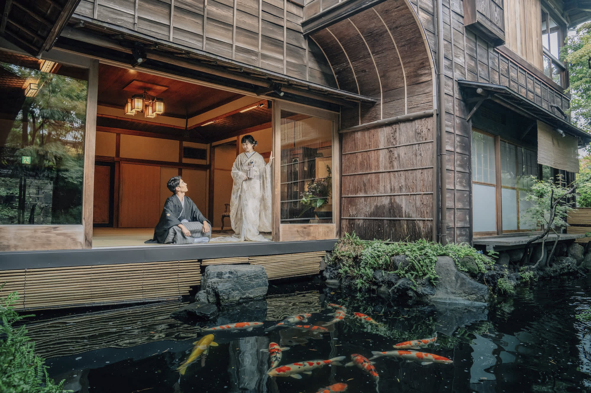 Tsukiji’s “Tsukiji Jisaku” offers a stately Japanese restaurant facade as a backdrop. Its refined and classic ambience provides stability and elegance, ideal for couples seeking a sophisticated and mature photo style.