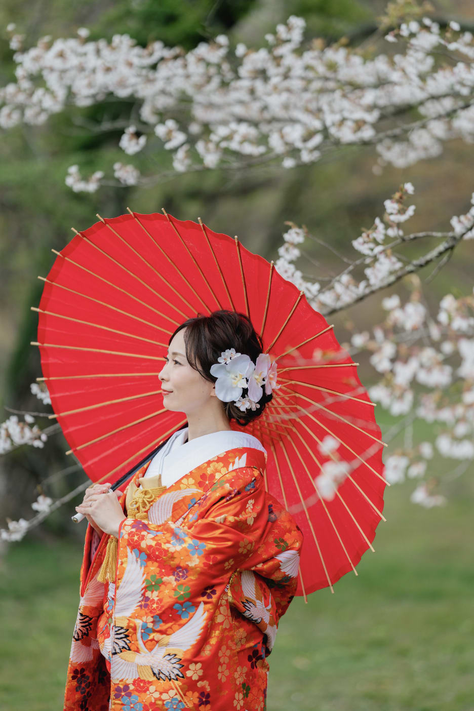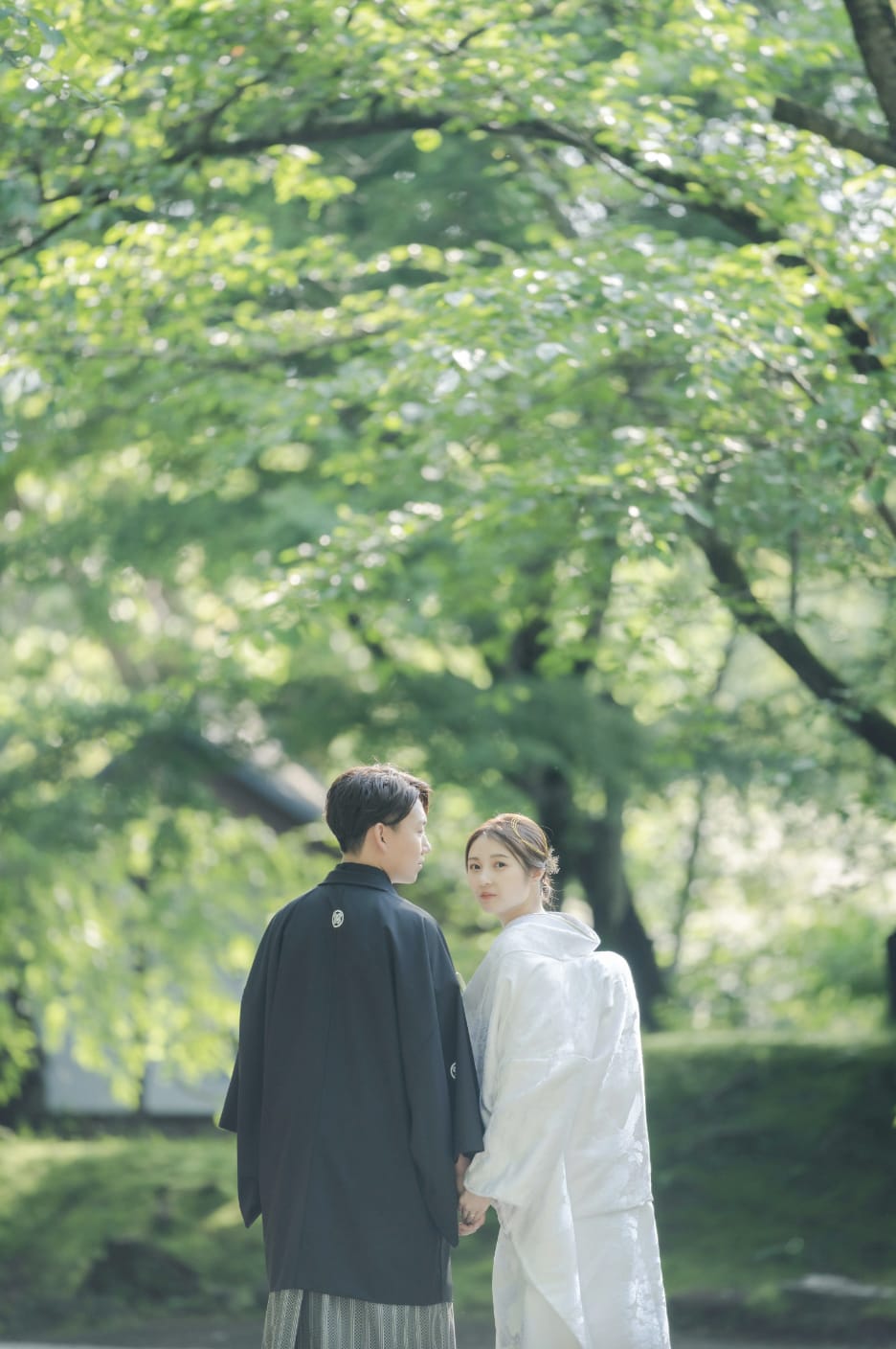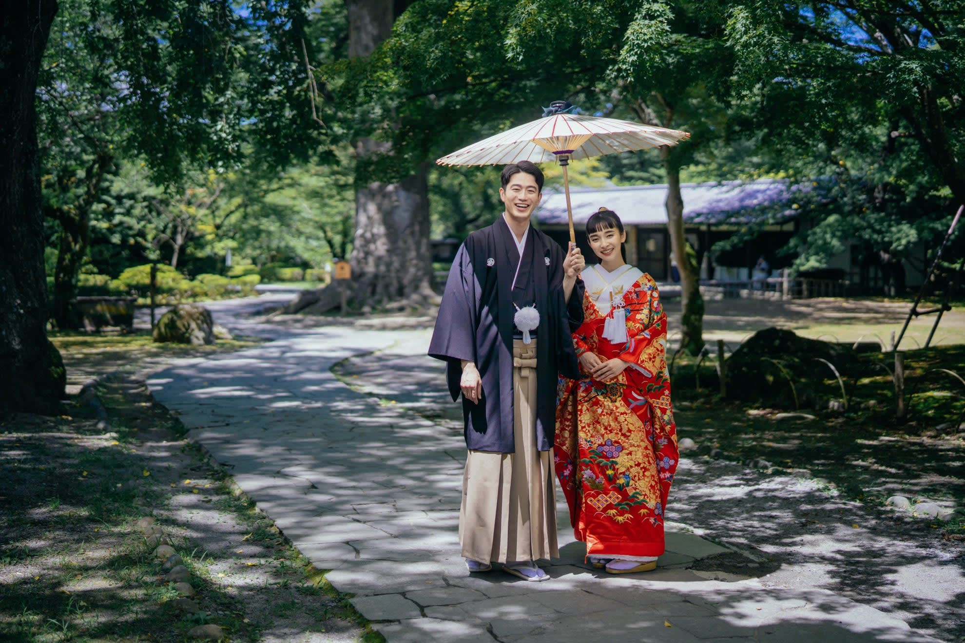 The Iizuna Mountain area offers panoramic views from elevated terrain. With mountain ranges and expansive skies in the background, it enables dynamic shots filled with grandeur—perfect for couples seeking impressive and dramatic imagery.