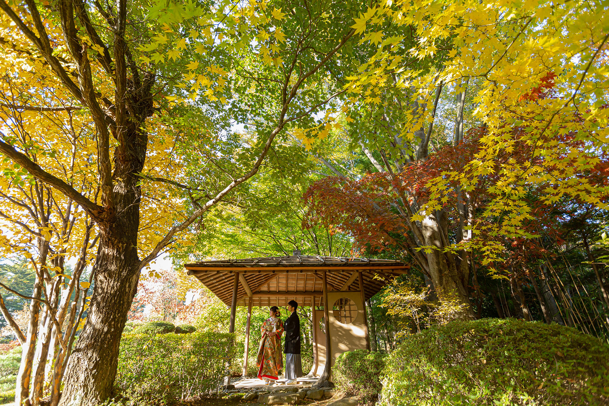 Karuizawa Taliesin features a lakeside landscape surrounded by lush greenery. With the lake providing beautiful reflections and expansive lawns offering an open atmosphere, it is an ideal location for natural and romantic pre-wedding photography that makes the most of soft natural light.