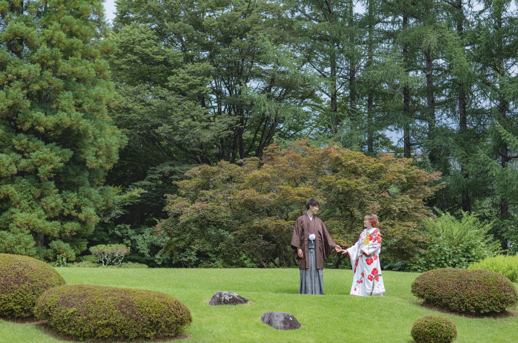 Karuizawa Taliesin features a lakeside landscape surrounded by lush greenery. With the lake providing beautiful reflections and expansive lawns offering an open atmosphere, it is an ideal location for natural and romantic pre-wedding photography that makes the most of soft natural light.