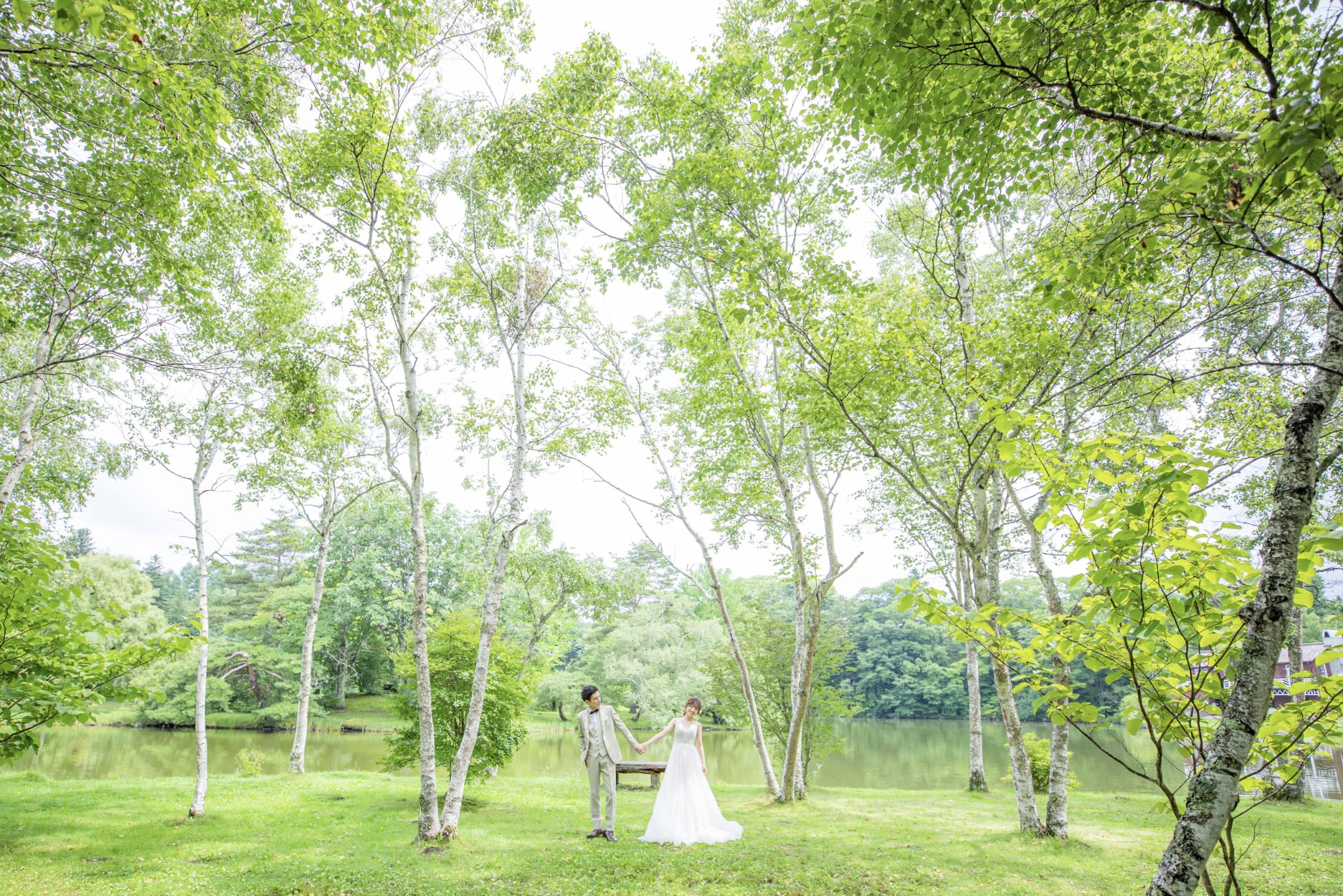 Karuizawa Taliesin features a lakeside landscape surrounded by lush greenery. With the lake providing beautiful reflections and expansive lawns offering an open atmosphere, it is an ideal location for natural and romantic pre-wedding photography that makes the most of soft natural light.