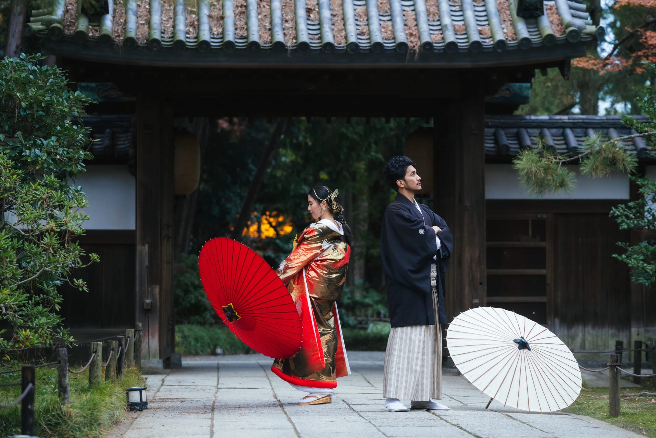 Experience pre-wedding photography at historic temples and shrines in Kamakura. Traditional architecture, stone paths, and seasonal nature create a beautiful setting for both Japanese and Western attire.