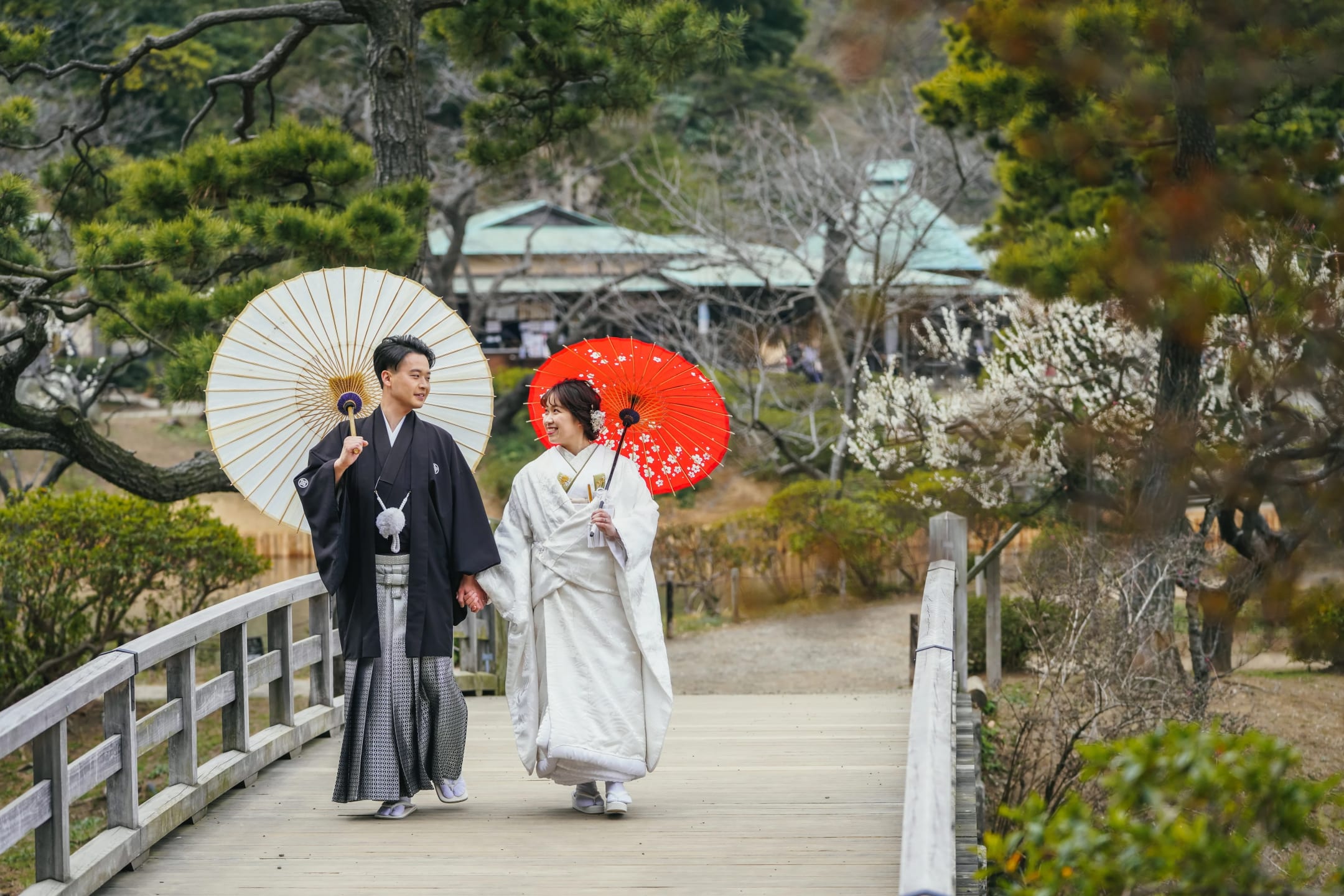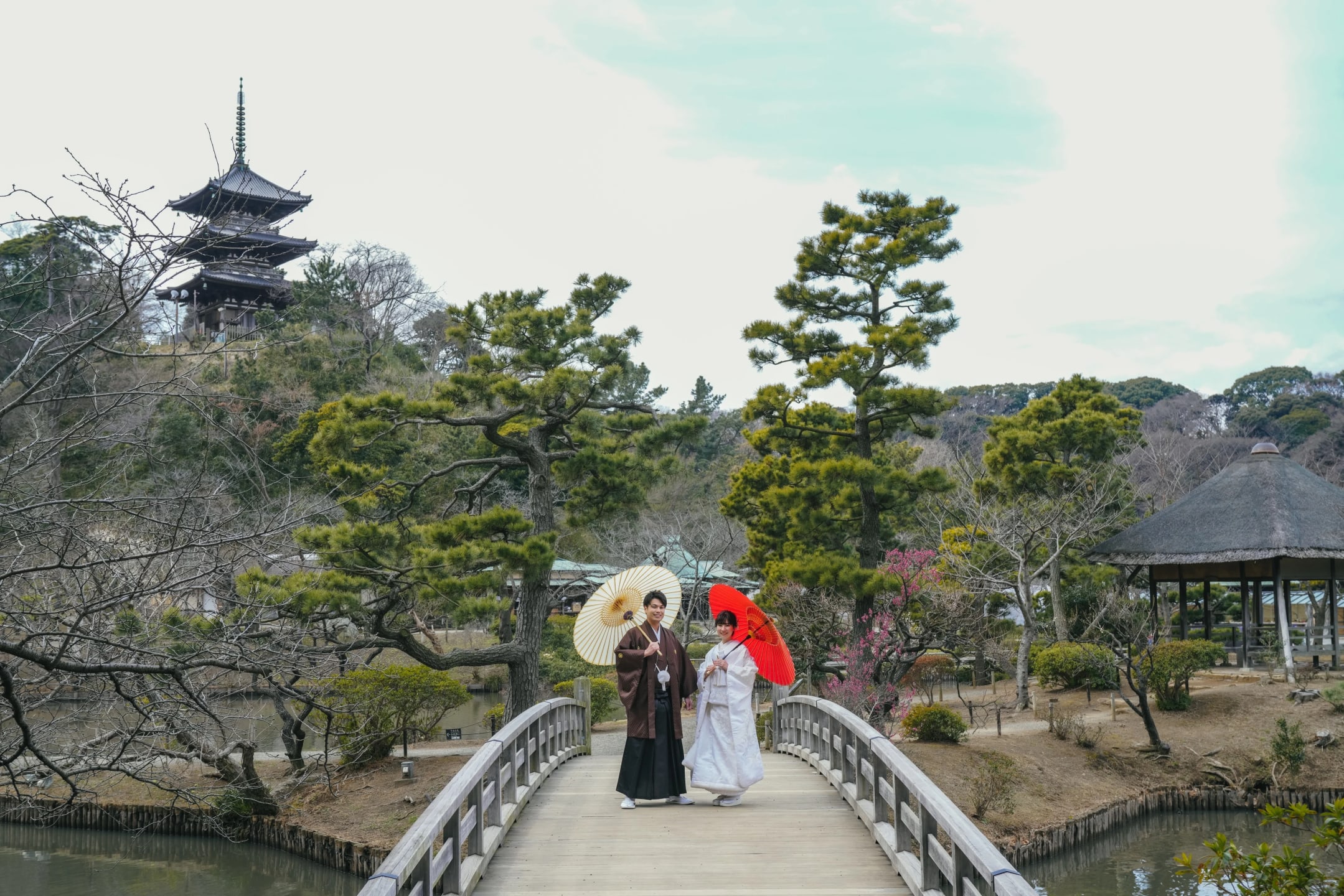 Sankei-en blends Japanese gardens with historic architecture. Its traditional pond and pine landscapes change with the seasons, supporting calm and elegant photography for both Japanese and Western attire.
