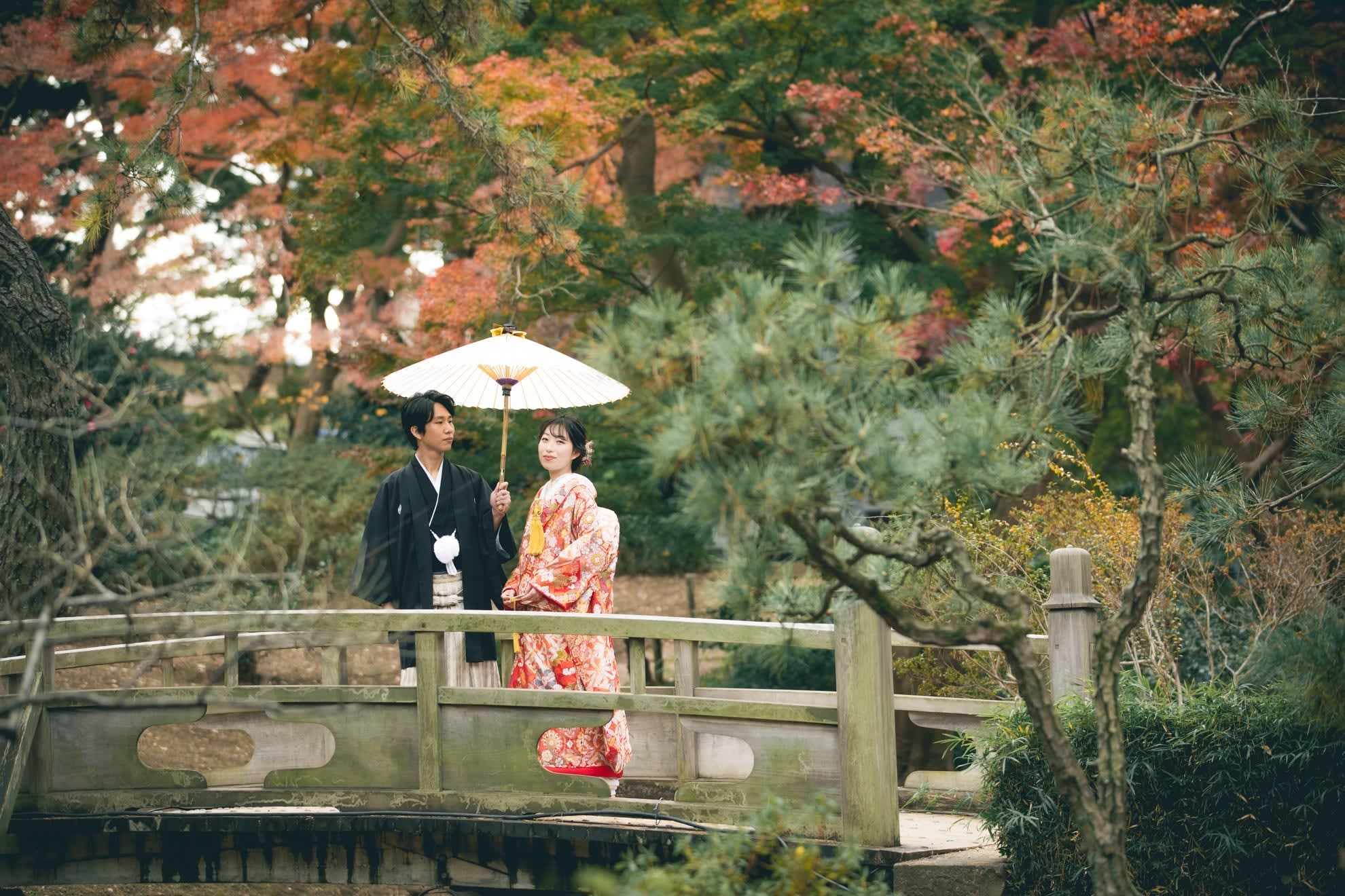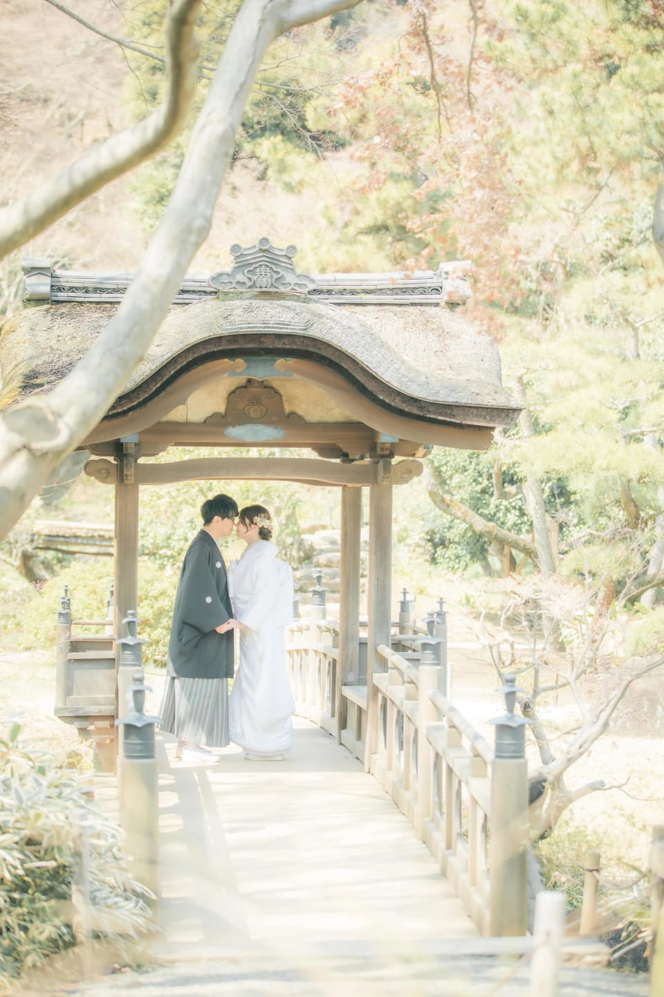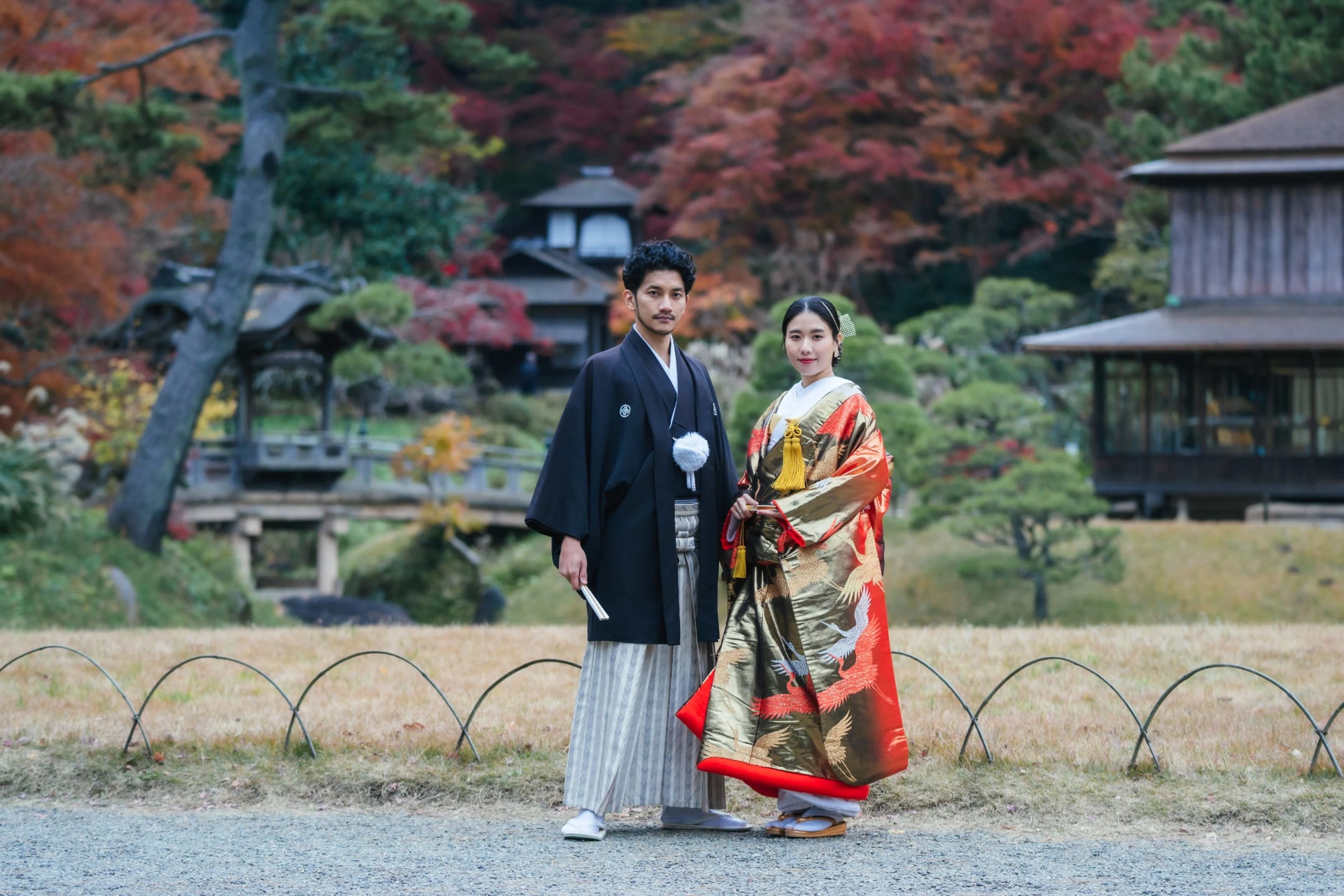Sankei-en blends Japanese gardens with historic architecture. Its traditional pond and pine landscapes change with the seasons, supporting calm and elegant photography for both Japanese and Western attire.