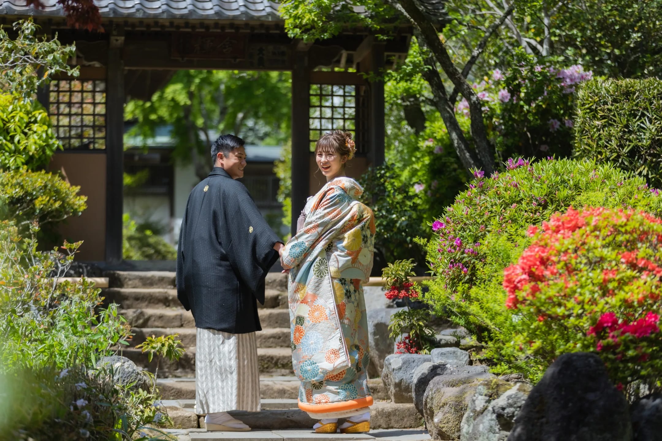 Experience pre-wedding photography at historic temples and shrines in Kamakura. Traditional architecture, stone paths, and seasonal nature create a beautiful setting for both Japanese and Western attire.