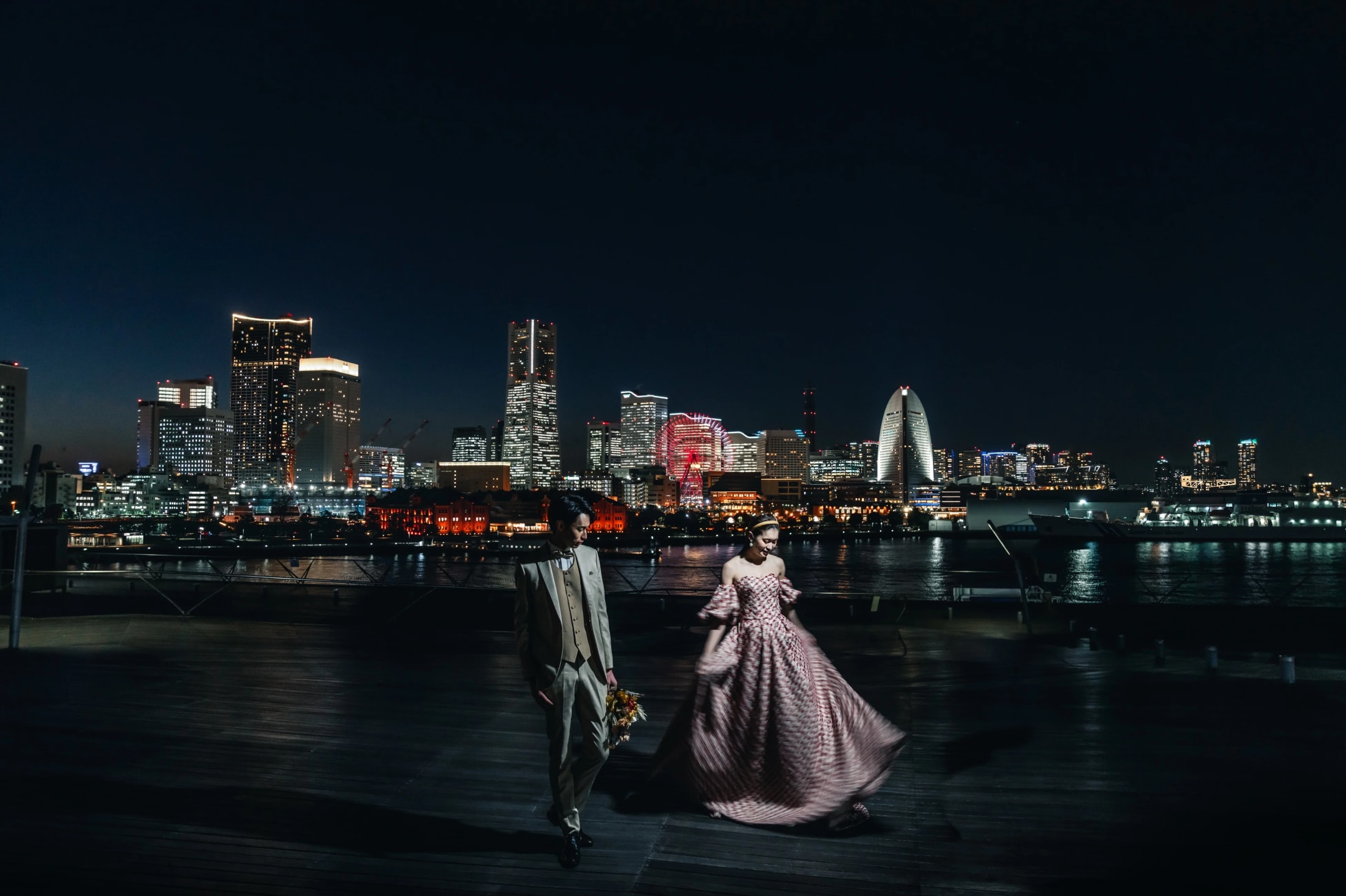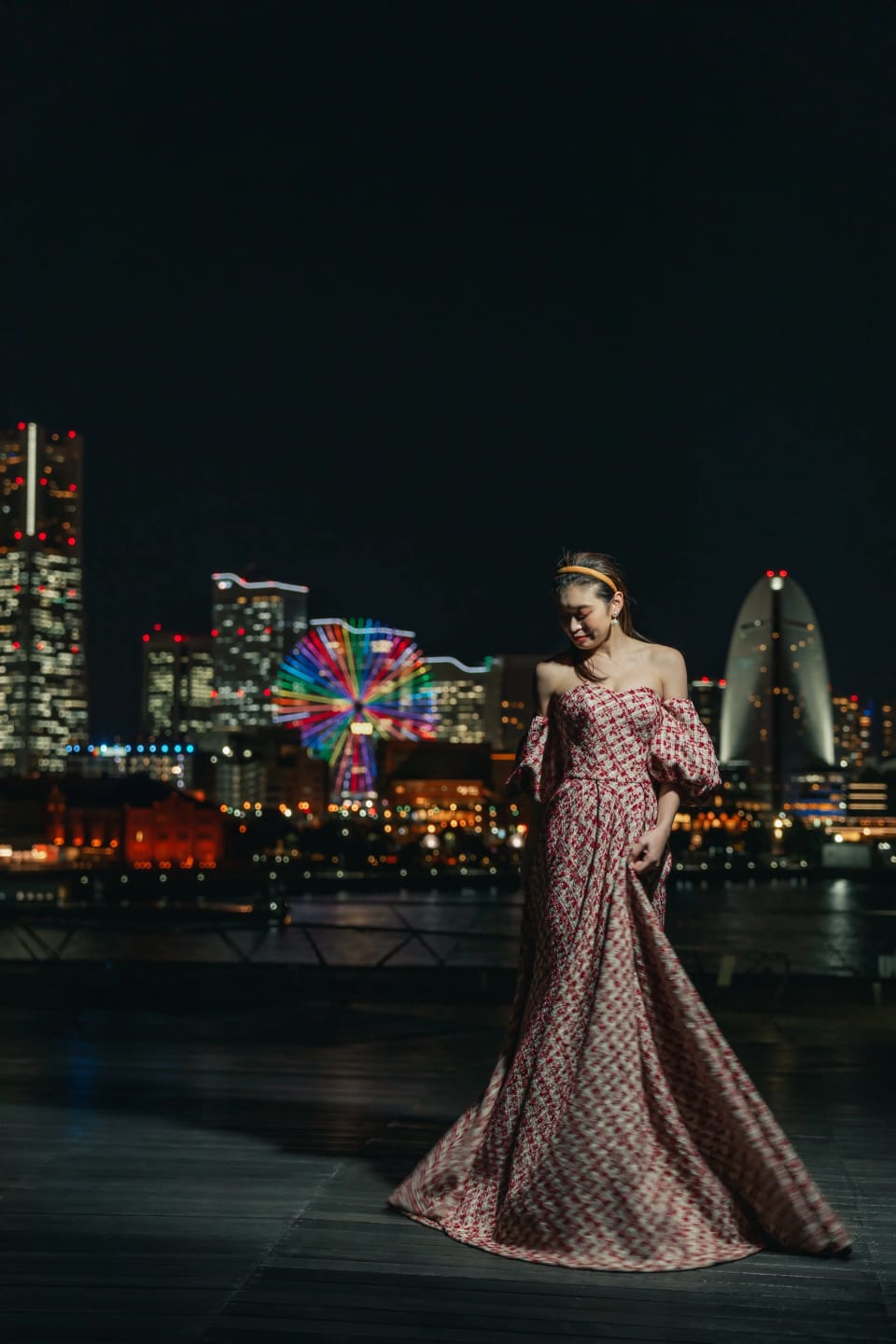 Ōsanbashi Pier is a symbolic location of Yokohama Port, offering ocean and city skyline views. Its open horizon allows for dynamic shots with sea breezes, sunset silhouettes, and nighttime scenes.