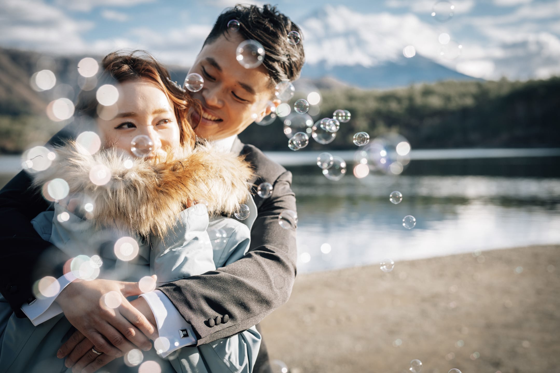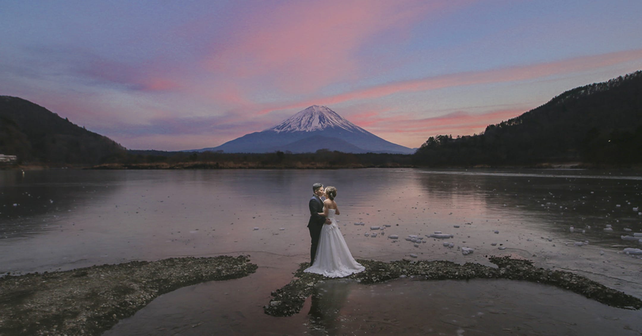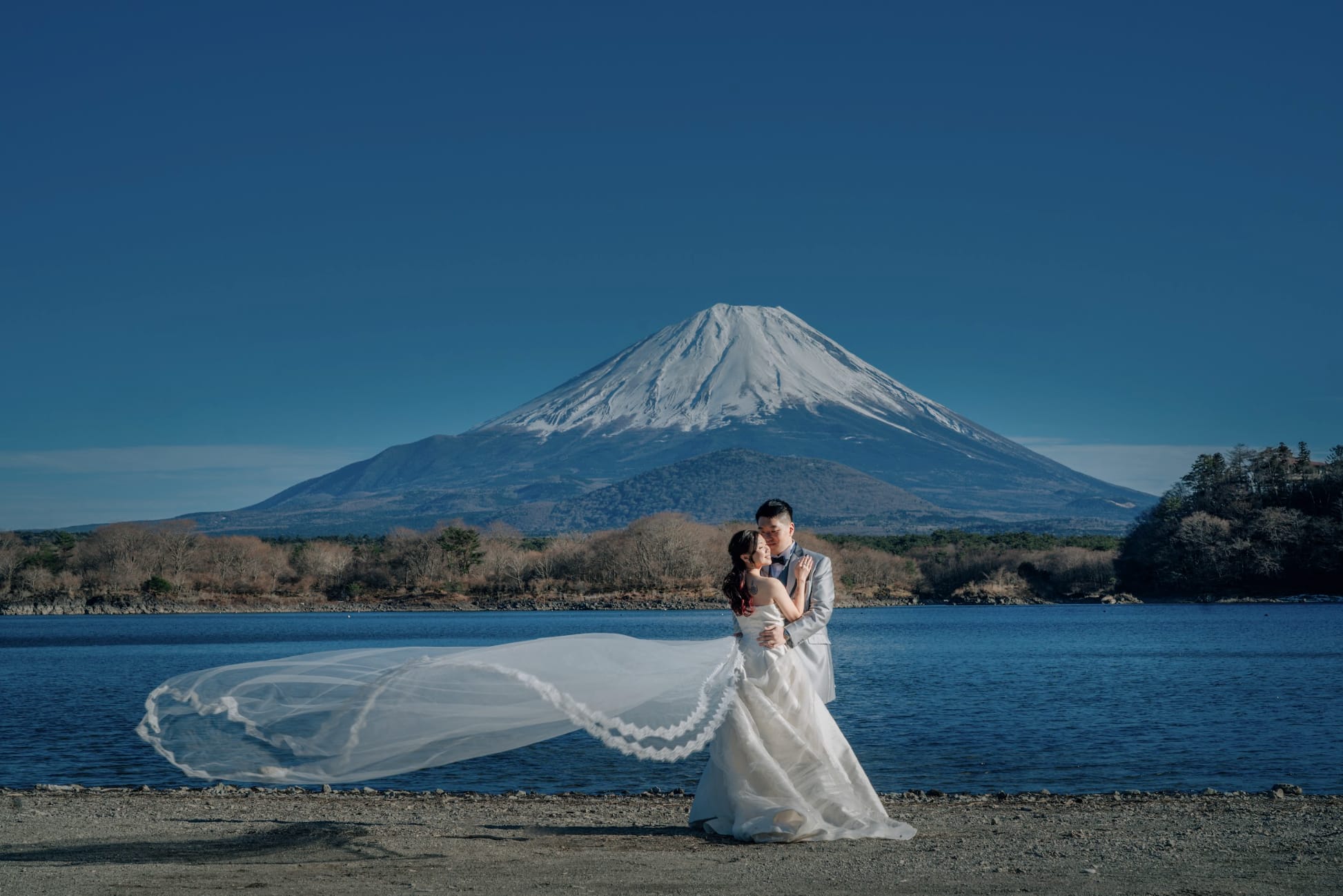 At the foot of Mt. Fuji, horseback riding scenes introduce motion and activity into pre-wedding photography. The vast landscape and Fuji as a backdrop produce dynamic, expressive images filled with natural energy.