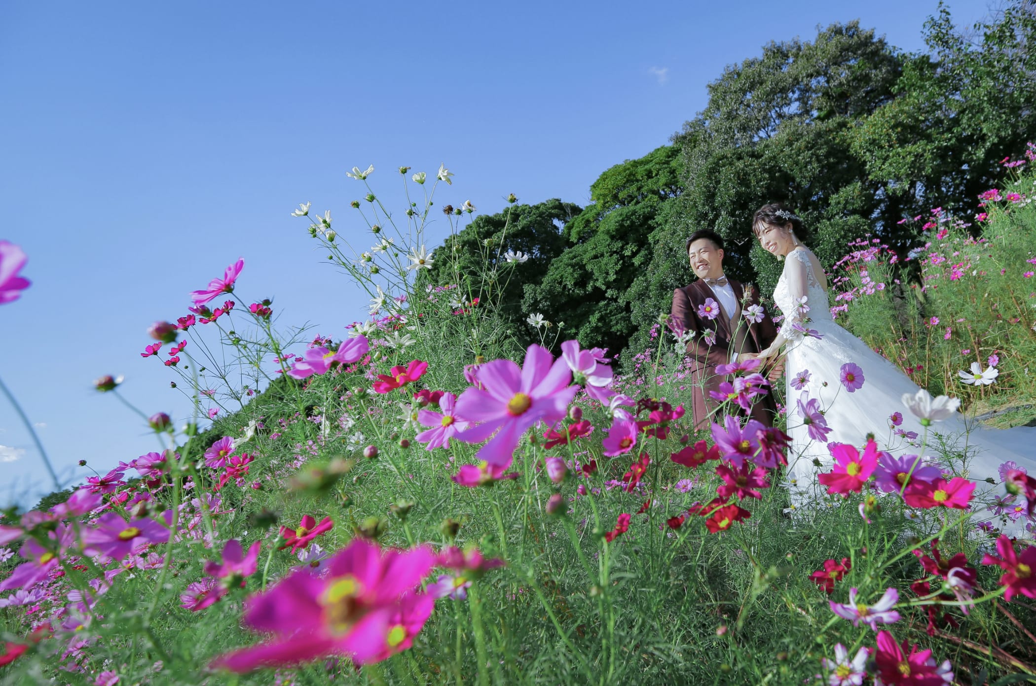Shonai Ryokuchi Park provides expansive green spaces and vibrant flowers. The relaxed environment supports natural shoots using abundant daylight and allows for diverse seasonal compositions.