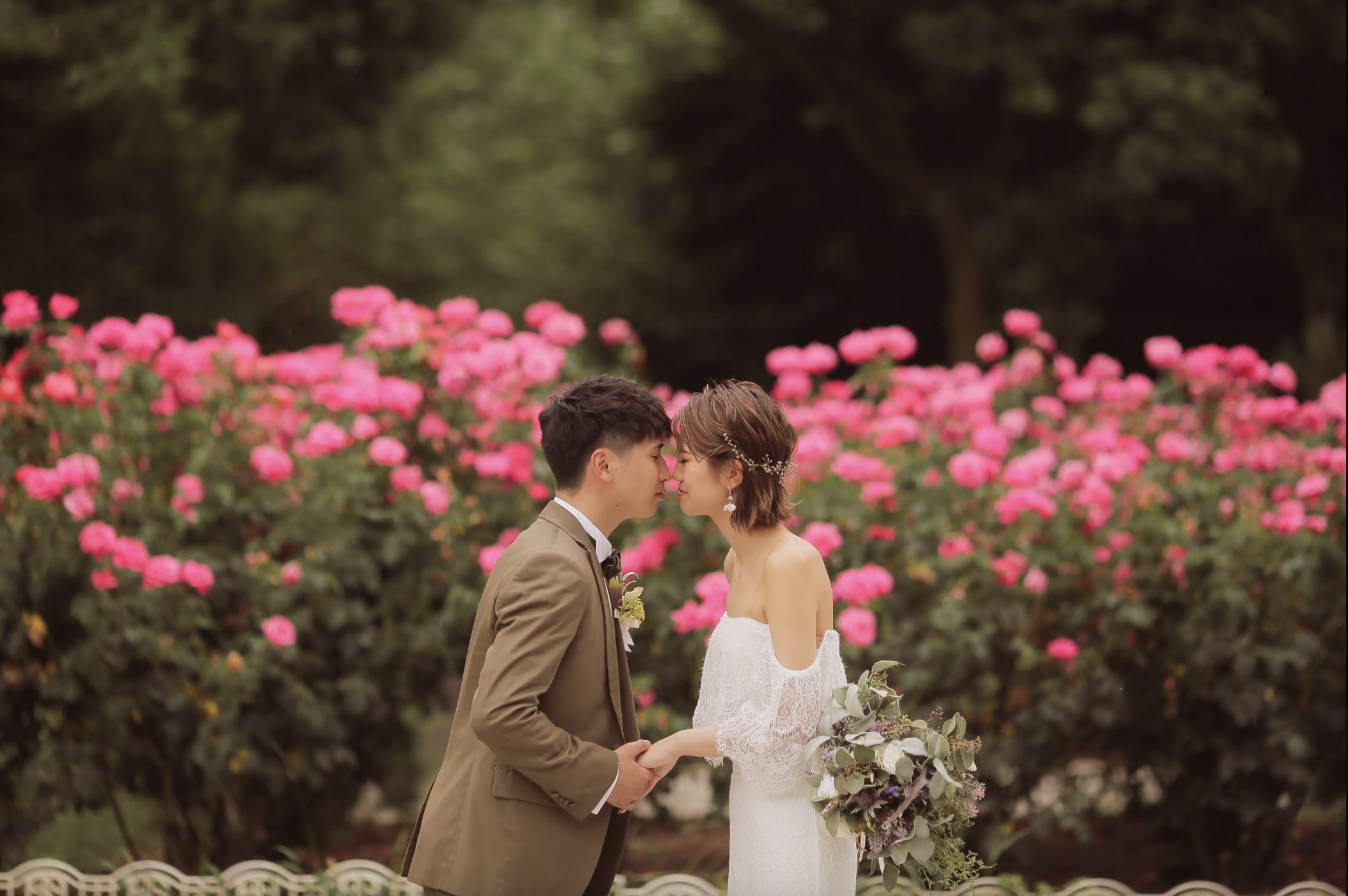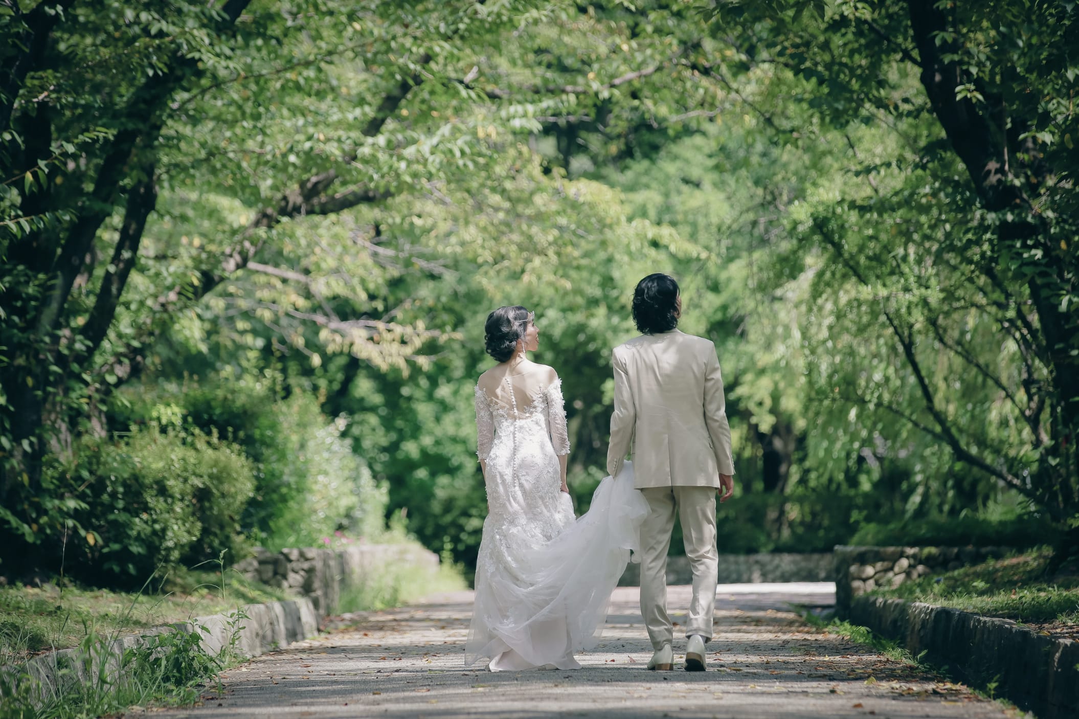 Tokugawaen is a prestigious Japanese garden representing Nagoya, featuring ponds, stone bridges, and seasonal plantings that create a serene backdrop. It complements both traditional and Western attire, allowing elegant pre-wedding photos with natural light.