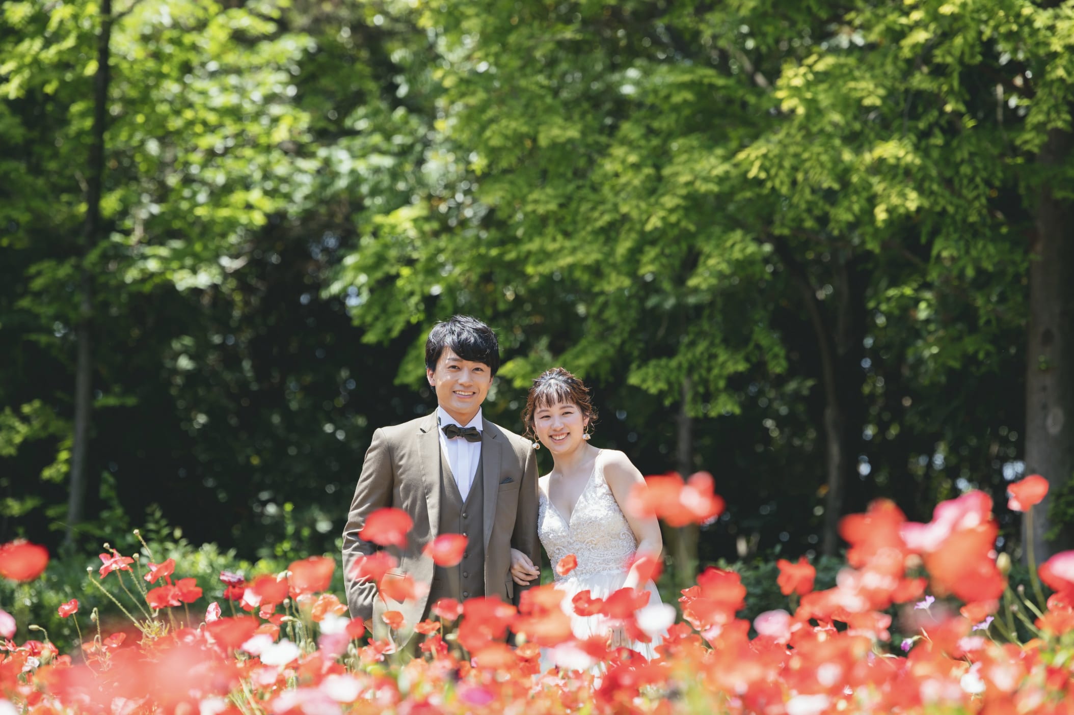 Nagoya Port combines ocean views and flower fields, creating a scenic backdrop where the openness of the sea and seasonal blooms enhance natural and festive pre-wedding images.