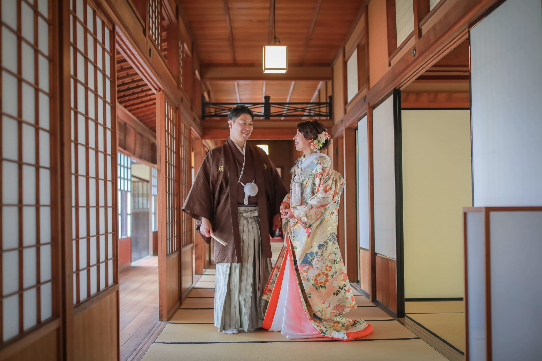 Tokugawaen is a prestigious Japanese garden representing Nagoya, featuring ponds, stone bridges, and seasonal plantings that create a serene backdrop. It complements both traditional and Western attire, allowing elegant pre-wedding photos with natural light.