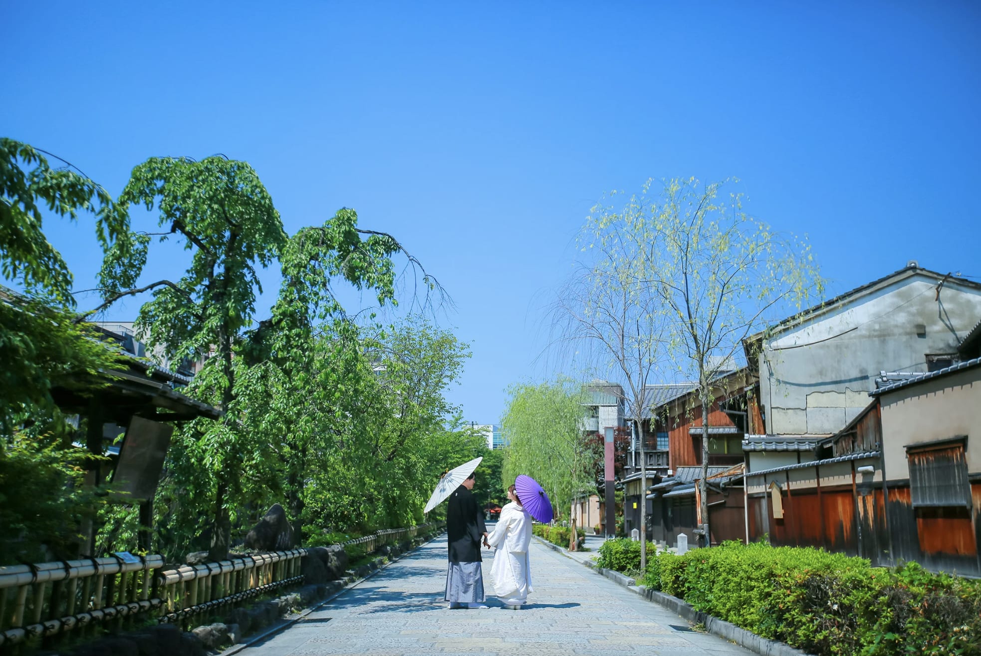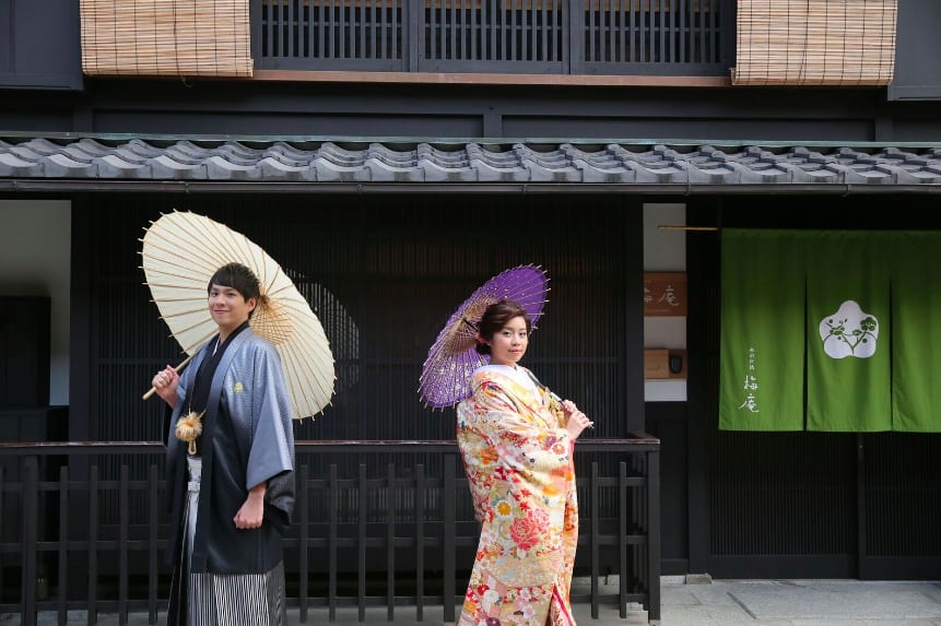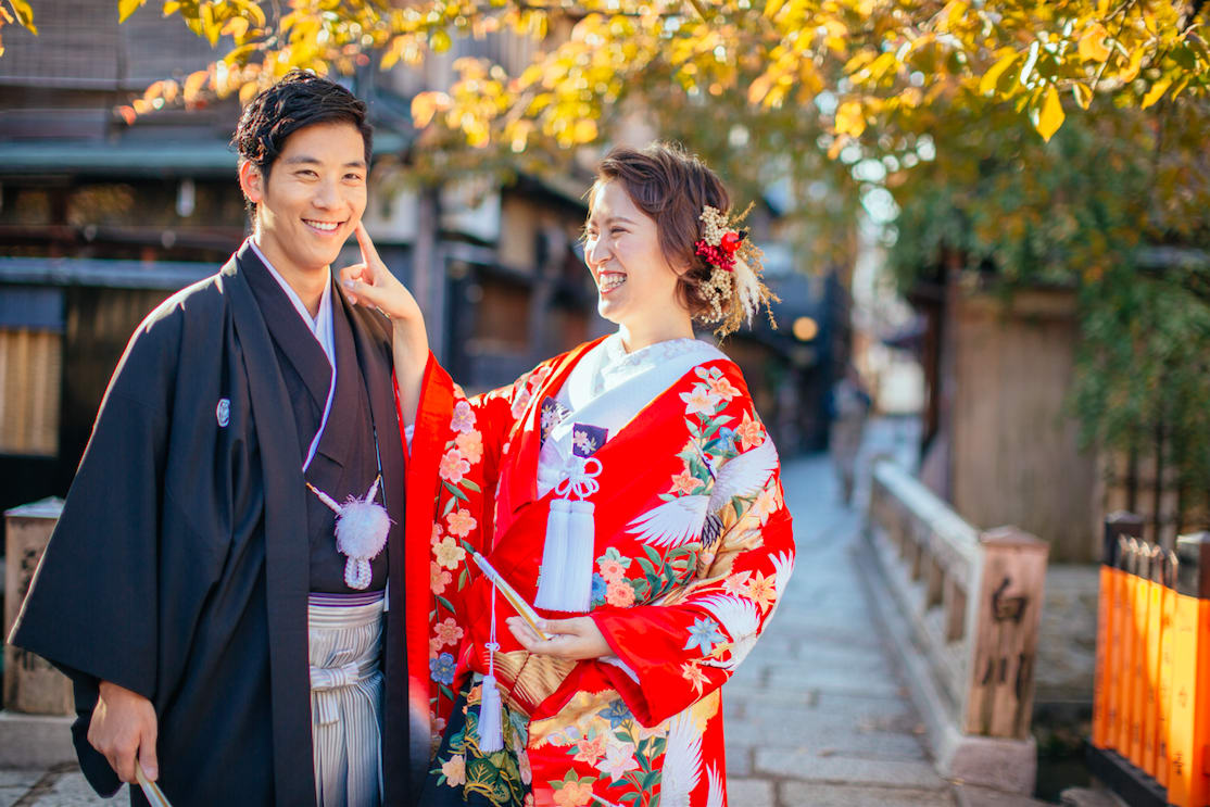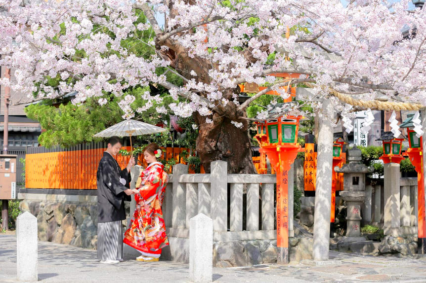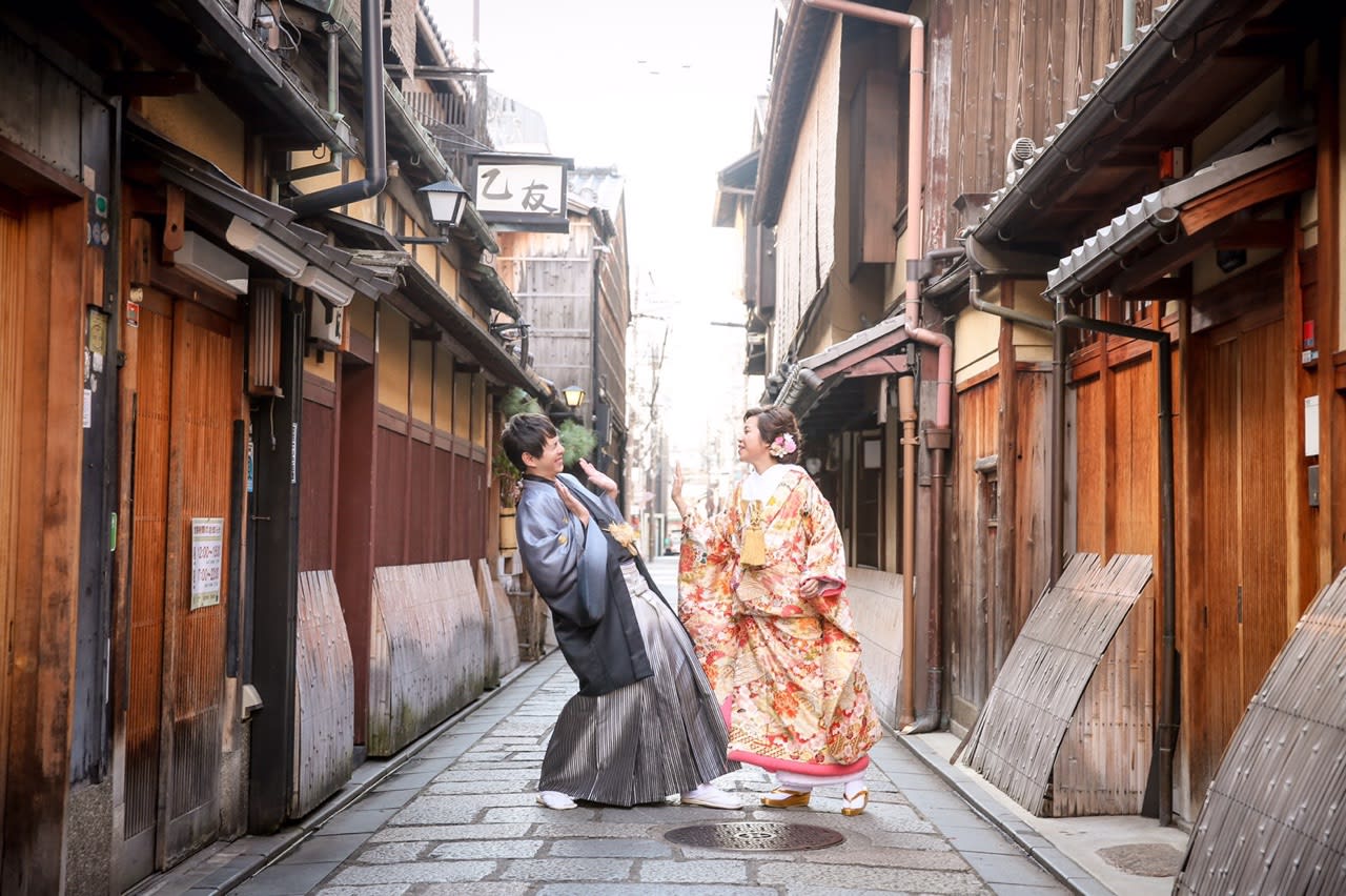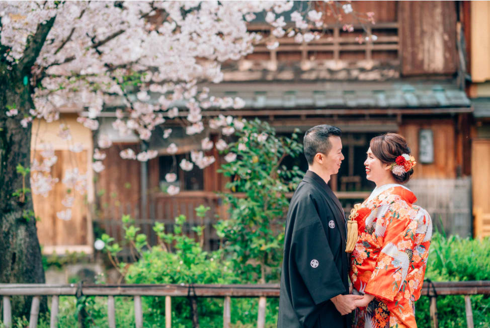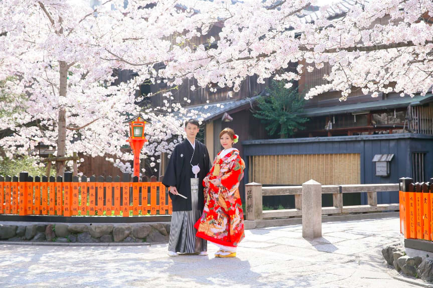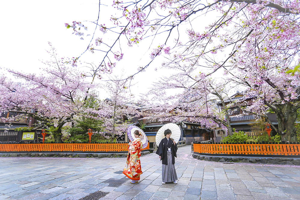 Gion is known for its traditional Kyoto atmosphere, with stone-paved alleys and preserved machiya townhouses. Both Japanese and Western attire suit the nostalgic charm of the area, and locations such as the Shirakawa River and Tatsumi Bridge offer elegant scenes enriched by seasonal colors.