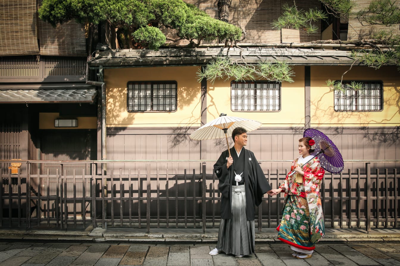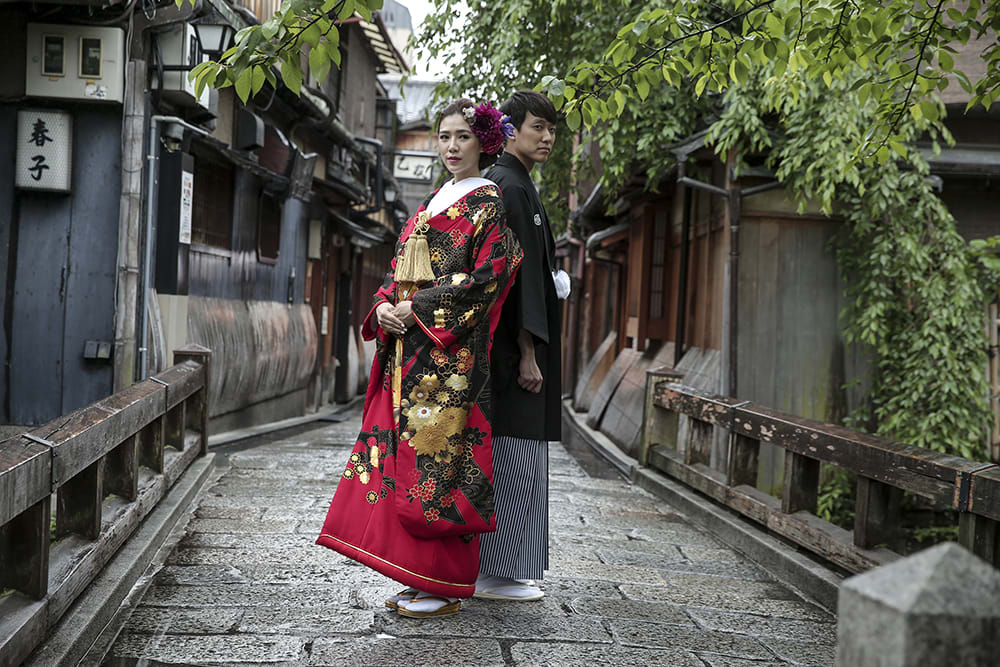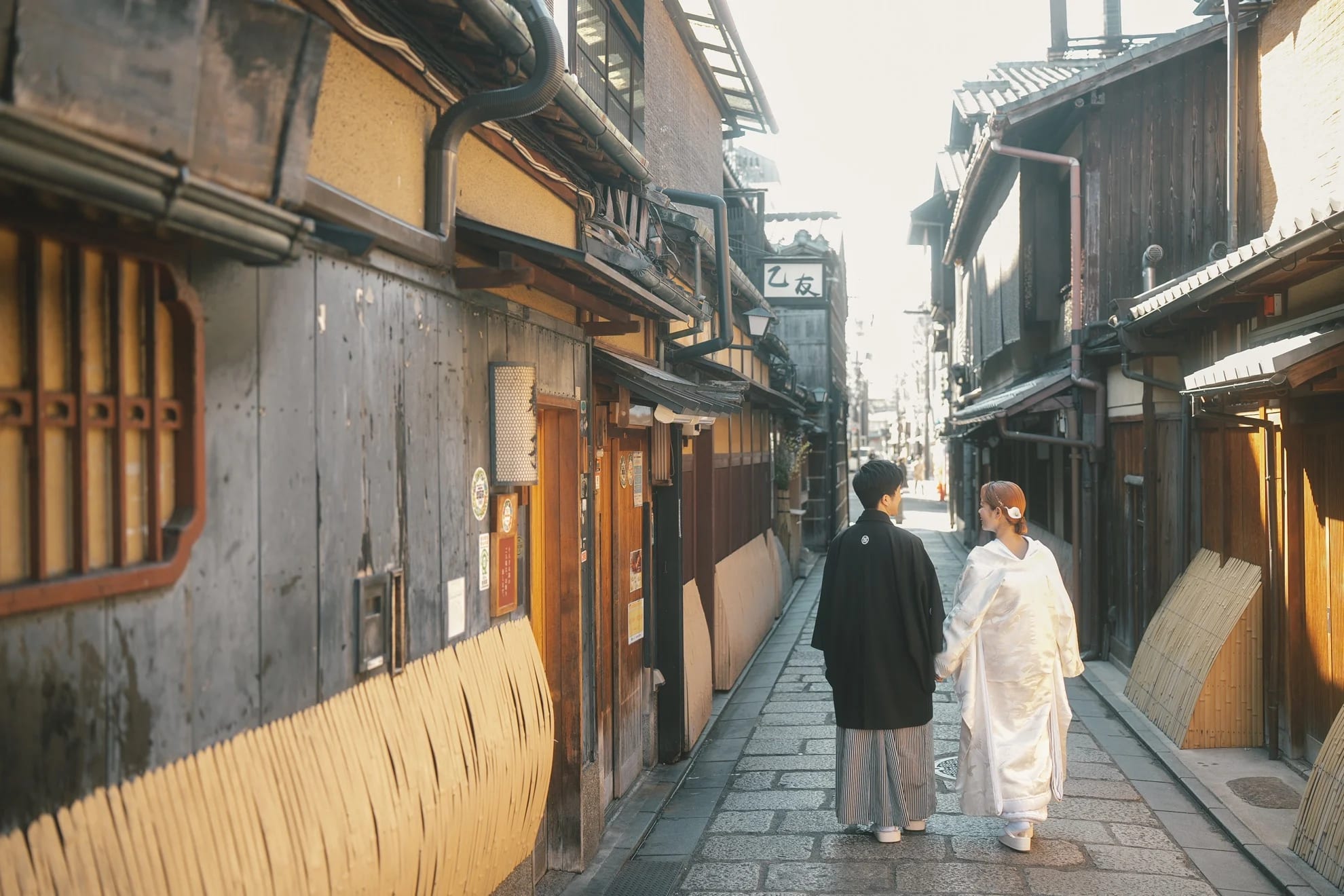 The Yasaka area is ideal for pre-wedding photography, featuring historic buildings and picturesque streets surrounding Yasaka Shrine. Backgrounds such as the Five-Storied Pagoda and stone paths highlight the depth of Japanese culture, enabling dramatic shots that make the most of natural light.