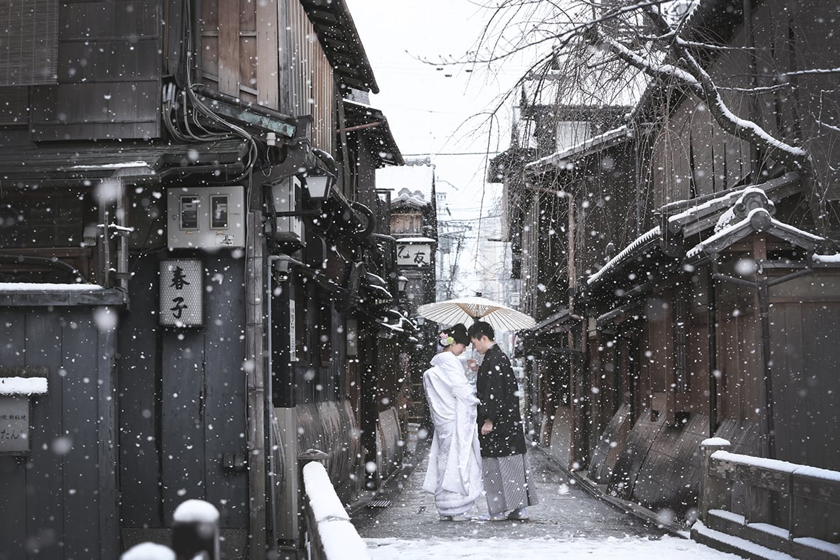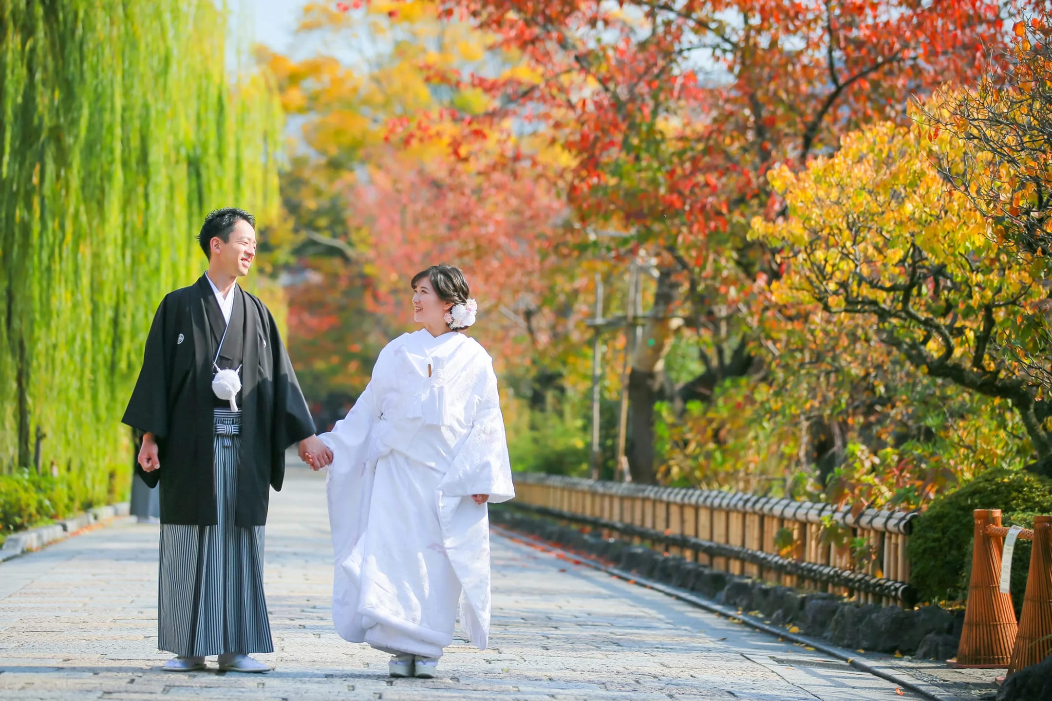 Gion is known for its traditional Kyoto atmosphere, with stone-paved alleys and preserved machiya townhouses. Both Japanese and Western attire suit the nostalgic charm of the area, and locations such as the Shirakawa River and Tatsumi Bridge offer elegant scenes enriched by seasonal colors.