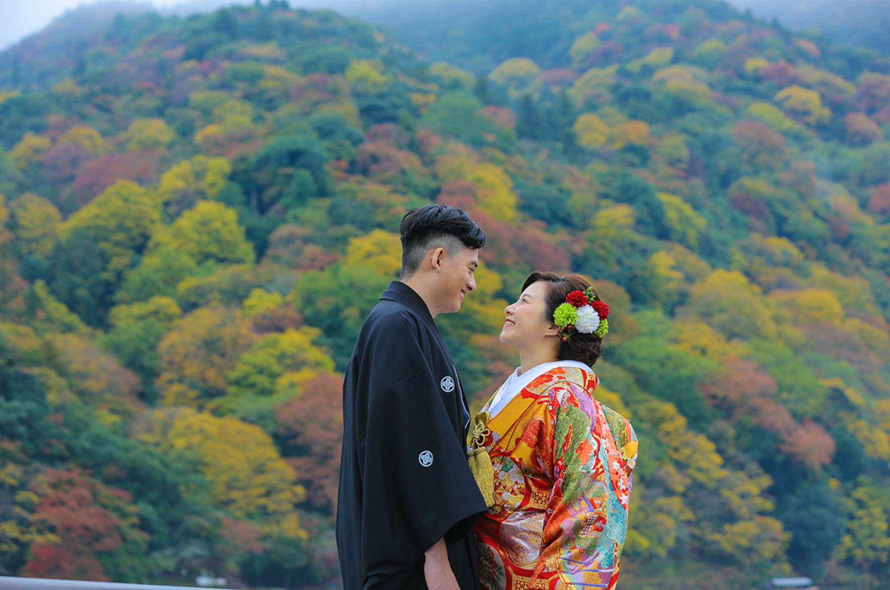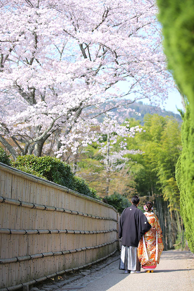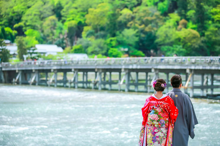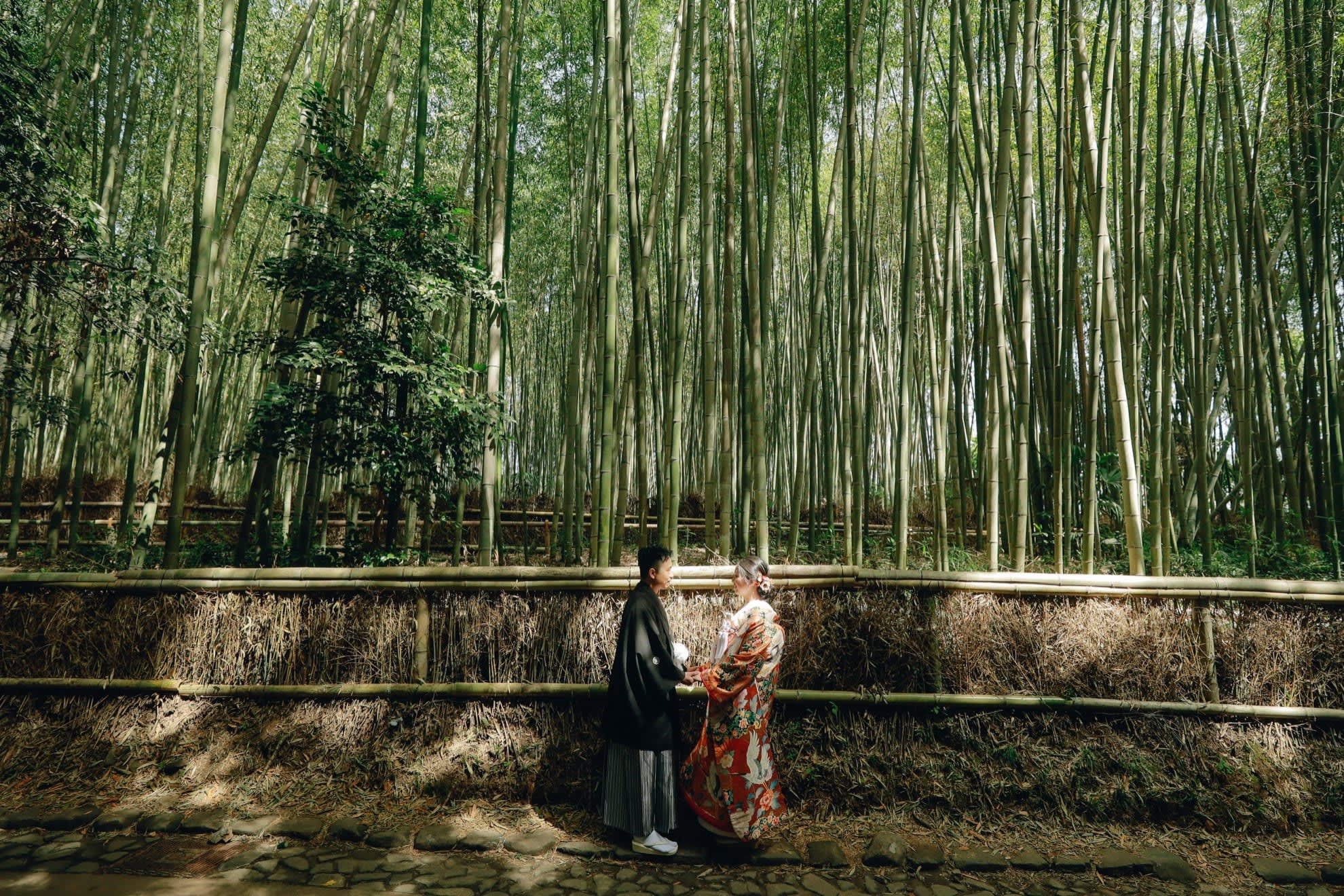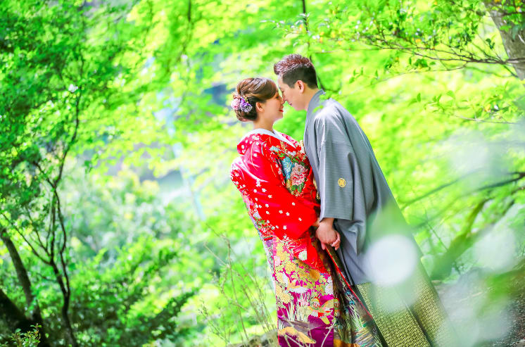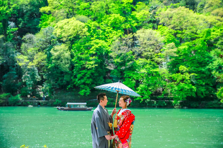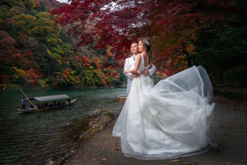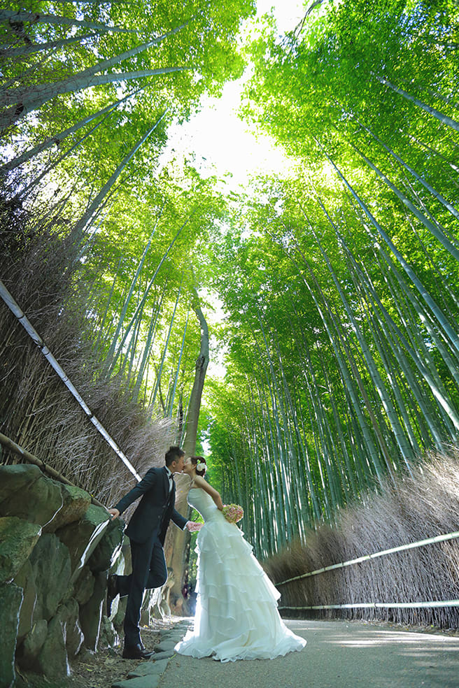 The Yasaka area is ideal for pre-wedding photography, featuring historic buildings and picturesque streets surrounding Yasaka Shrine. Backgrounds such as the Five-Storied Pagoda and stone paths highlight the depth of Japanese culture, enabling dramatic shots that make the most of natural light.