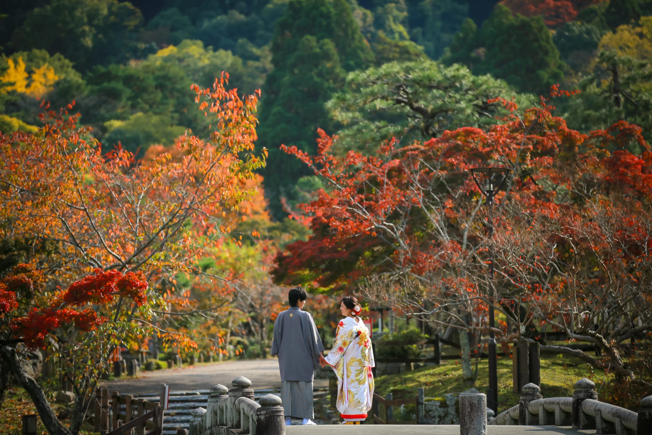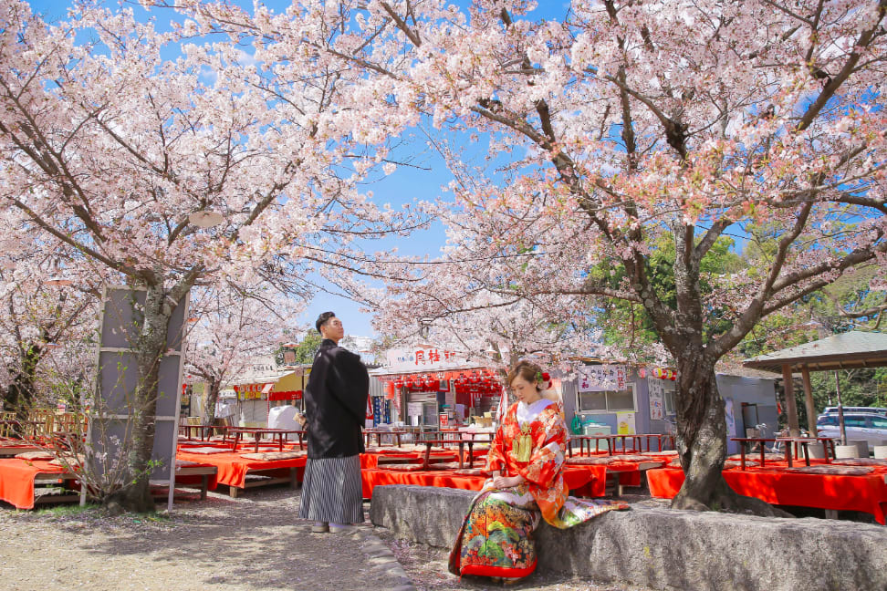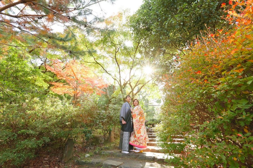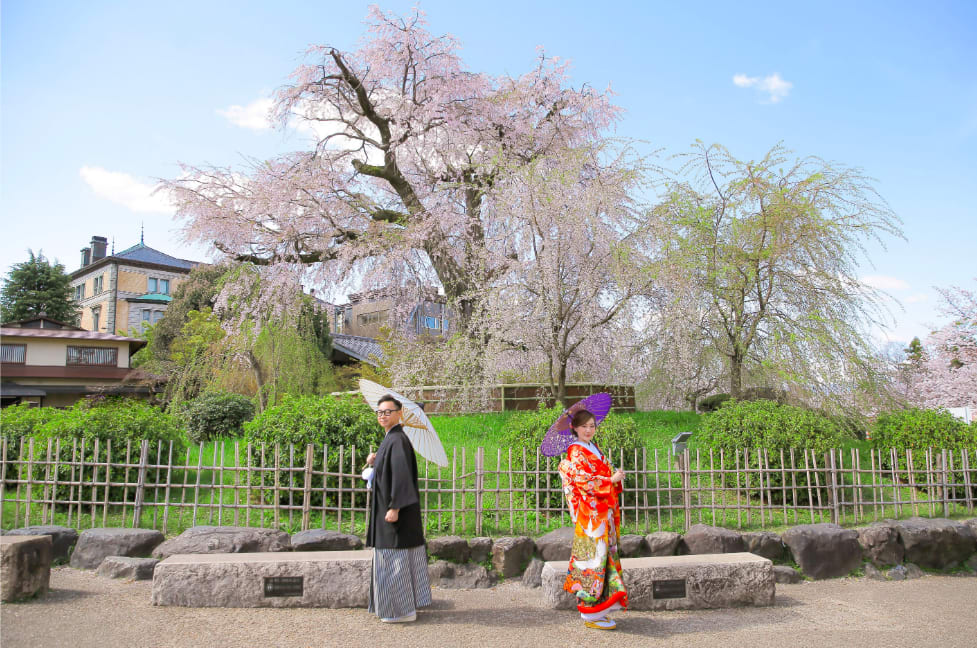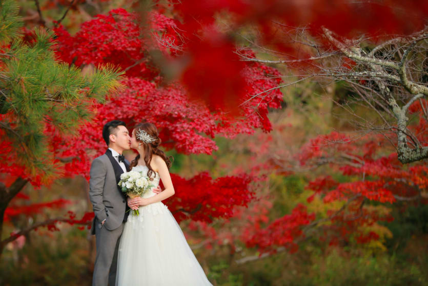 The Yasaka area is ideal for pre-wedding photography, featuring historic buildings and picturesque streets surrounding Yasaka Shrine. Backgrounds such as the Five-Storied Pagoda and stone paths highlight the depth of Japanese culture, enabling dramatic shots that make the most of natural light.