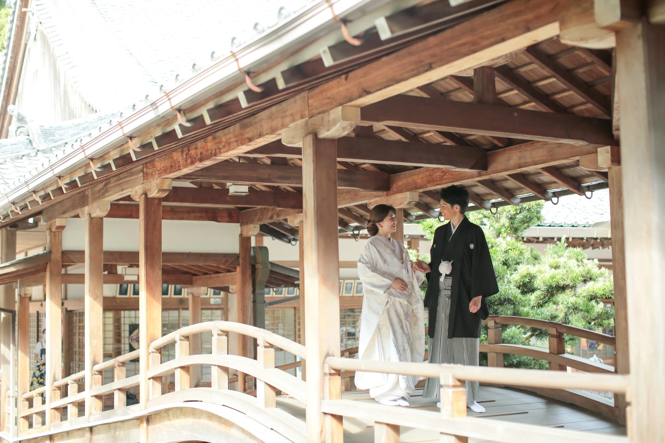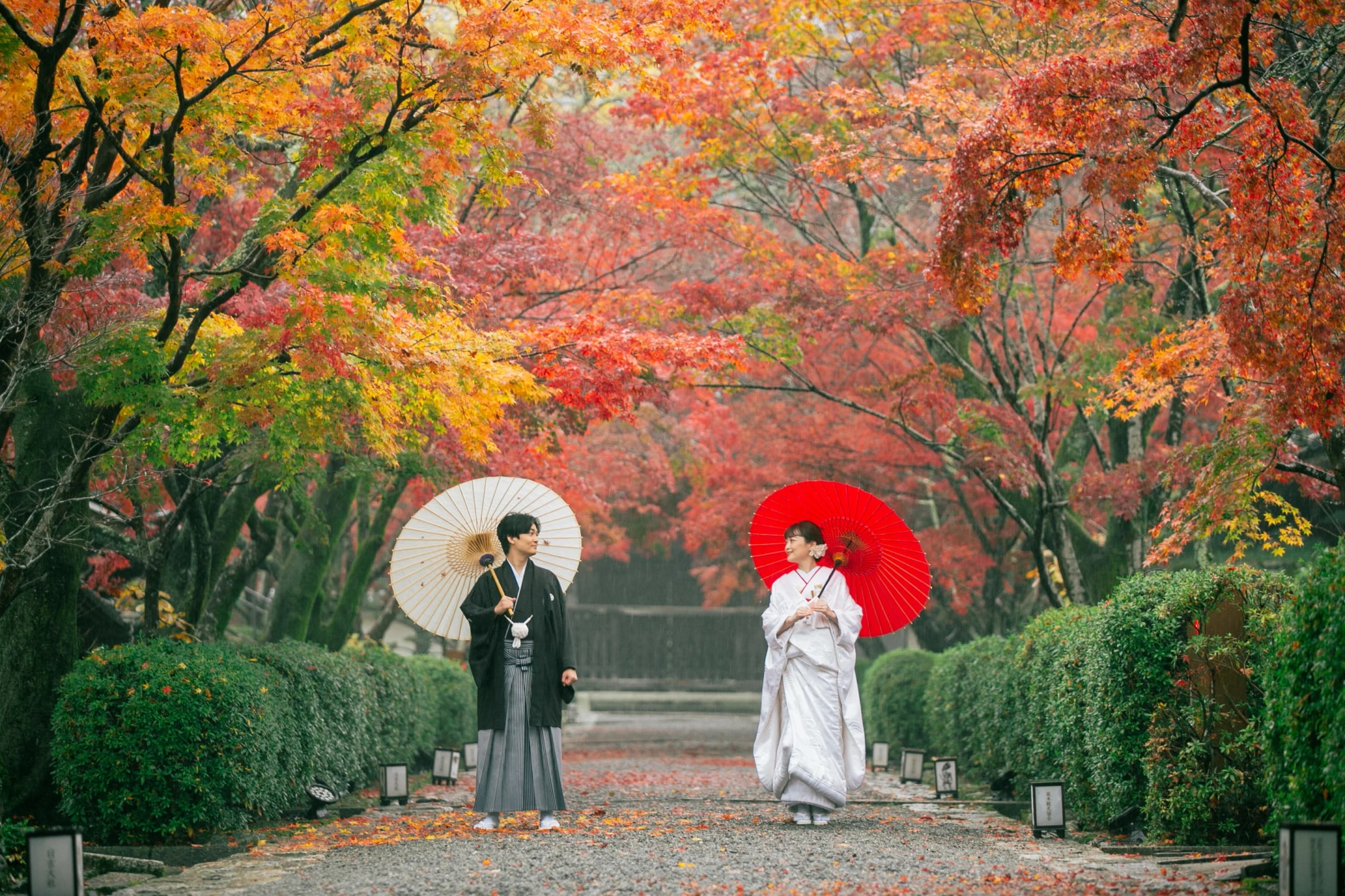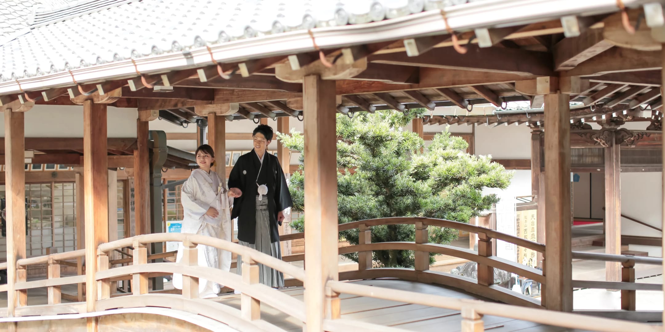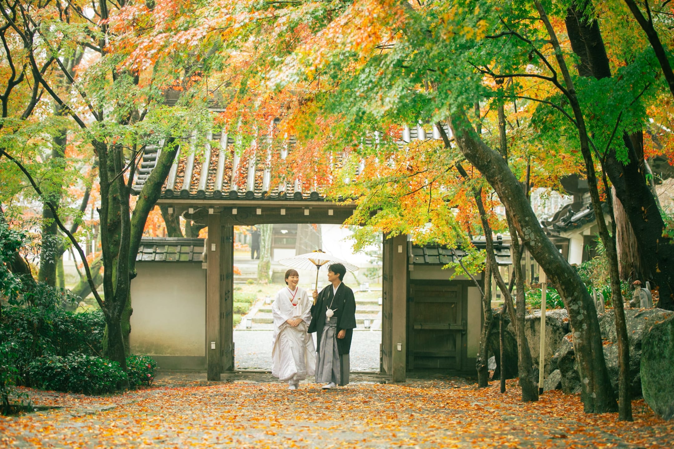 Saikyo-ji offers a quiet environment with historical trees and a calm temple atmosphere. Its strong affinity with Japanese attire enables simple and refined pre-wedding compositions.