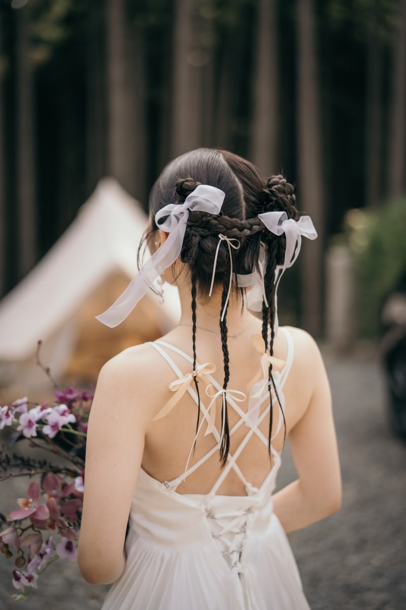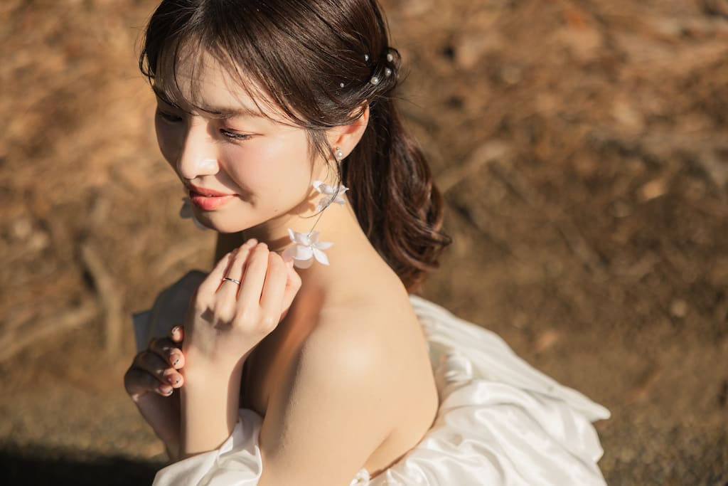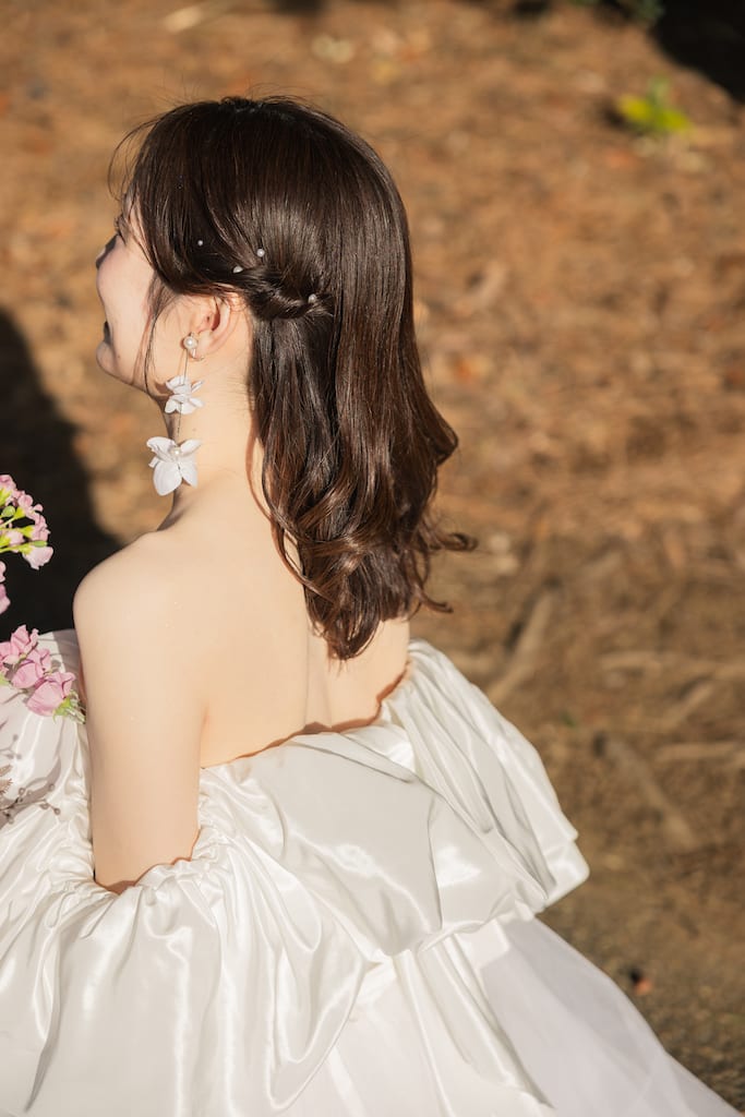 いくつになっても、一生に一度の瞬間を懐かしんでもらいたいから 新婦様に寄り添って、”自分らしさ”を大切にしたご提案を心掛けています🕊️ 衣装合わせから当日まで、楽しい時間を一緒に過ごしていただけたら嬉しいです🙌 美容師として7年の経験を積み、ブライダルの世界に飛び込みたくさんの花嫁さまを担当してきました👰♀️💐 明るく親しみやすい性格なので、どんなことでも気軽にご相談ください。 お二人の特別な思い出のお手伝いができるのを楽しみにしています。 お支度から楽しくリラックスしていきましょ〜 ※生花を使用したアレンジもご相談ください