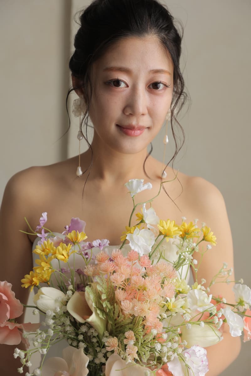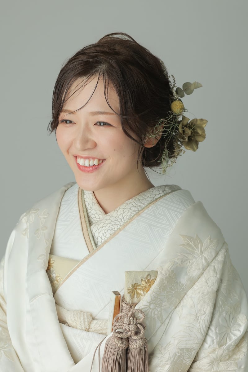 ブライダルの世界で、ヘアメイク着付けの 仕事について、10年以上になります。 メイクは、フワッとと柔らかい雰囲気を目指してます。 数多くの花嫁様を担当させて頂いた経験から、 その方の輪郭や髪質の特徴を生かしての "似合わせ" をすることも大切にしています。 シンプルな中にも、華やかさを兼ね備えたスタイルが好きです✨ お二人にあったイメージや、雰囲気を提案させてください! 安心してなんでもご相談頂けたら嬉しいです。