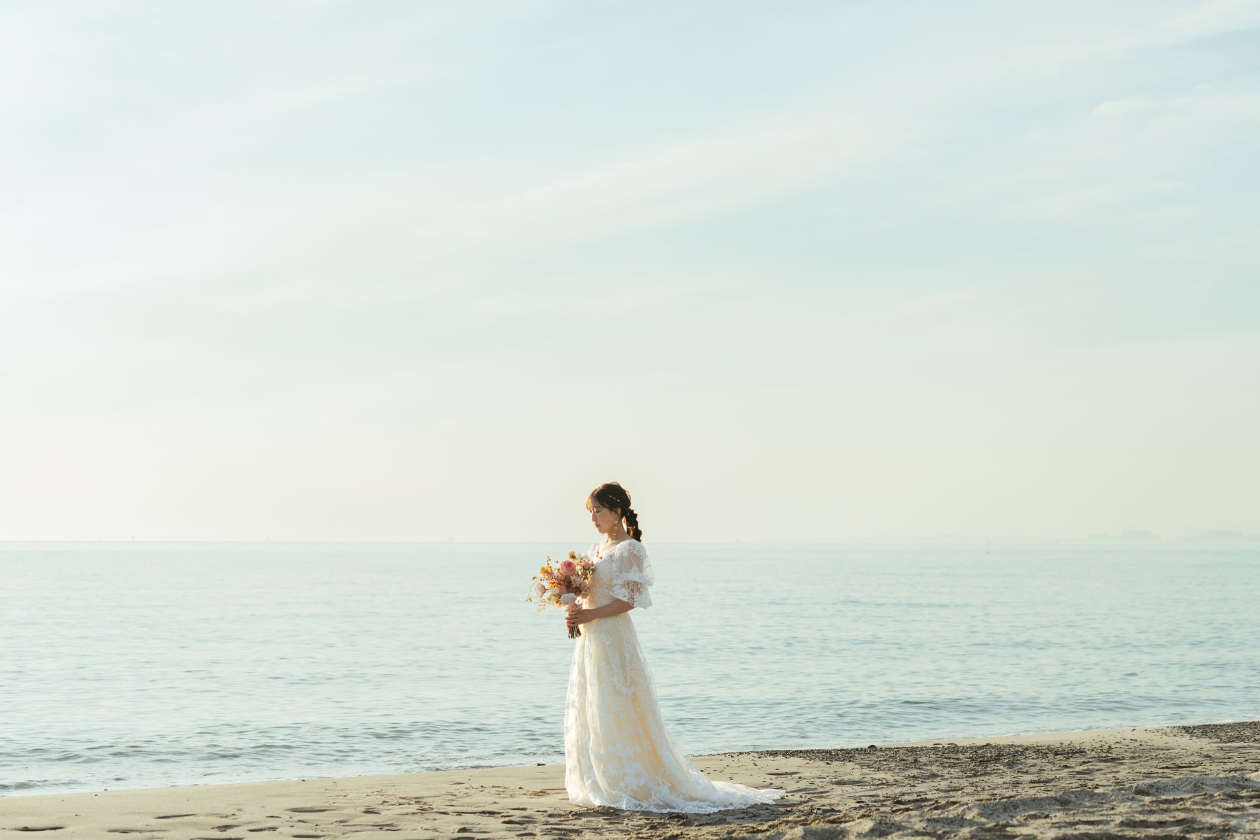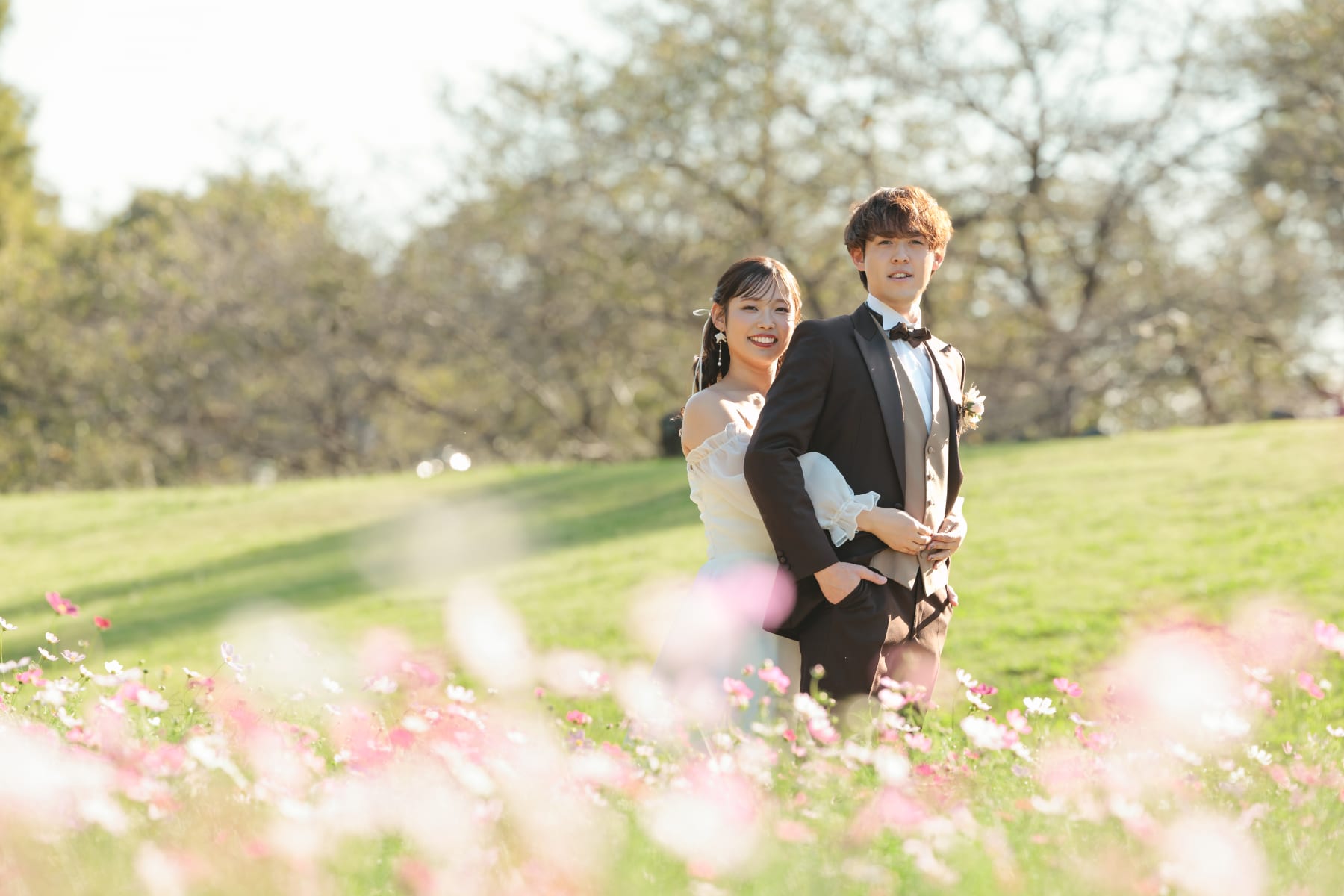 どこかあたたかみのある写真が好きです。 そして、そのあたたかさは、 おふたりの空気や距離感から自然に生まれるものだと思っています。 透明感のあるやわらかな光の中で、 いまのおふたりがそのままで美しい、 そう感じられる瞬間を大切に撮影しています。 笑顔のときも、ふと落ち着いた表情になるときも、 少し緊張してしまうその瞬間でさえ、 おふたりらしさが静かにあふれていると感じています。 手の重ね方や歩くテンポ、 視線がふと合うタイミング—— そんな何気ない仕草のひとつひとつに、 ふたりが積み重ねてきた時間や、言葉にしない想いが 静かに滲んでいると感じています。 撮影の日、おふたりが落ち着いていられるような空気をつくりながら、 その場に流れる光や風景にそっと寄り添ってシャッターを切ります。 生まれた一枚一枚が、 おふたりのこれからをやわらかく後押しできるような、 そんな写真になれば嬉しいです。